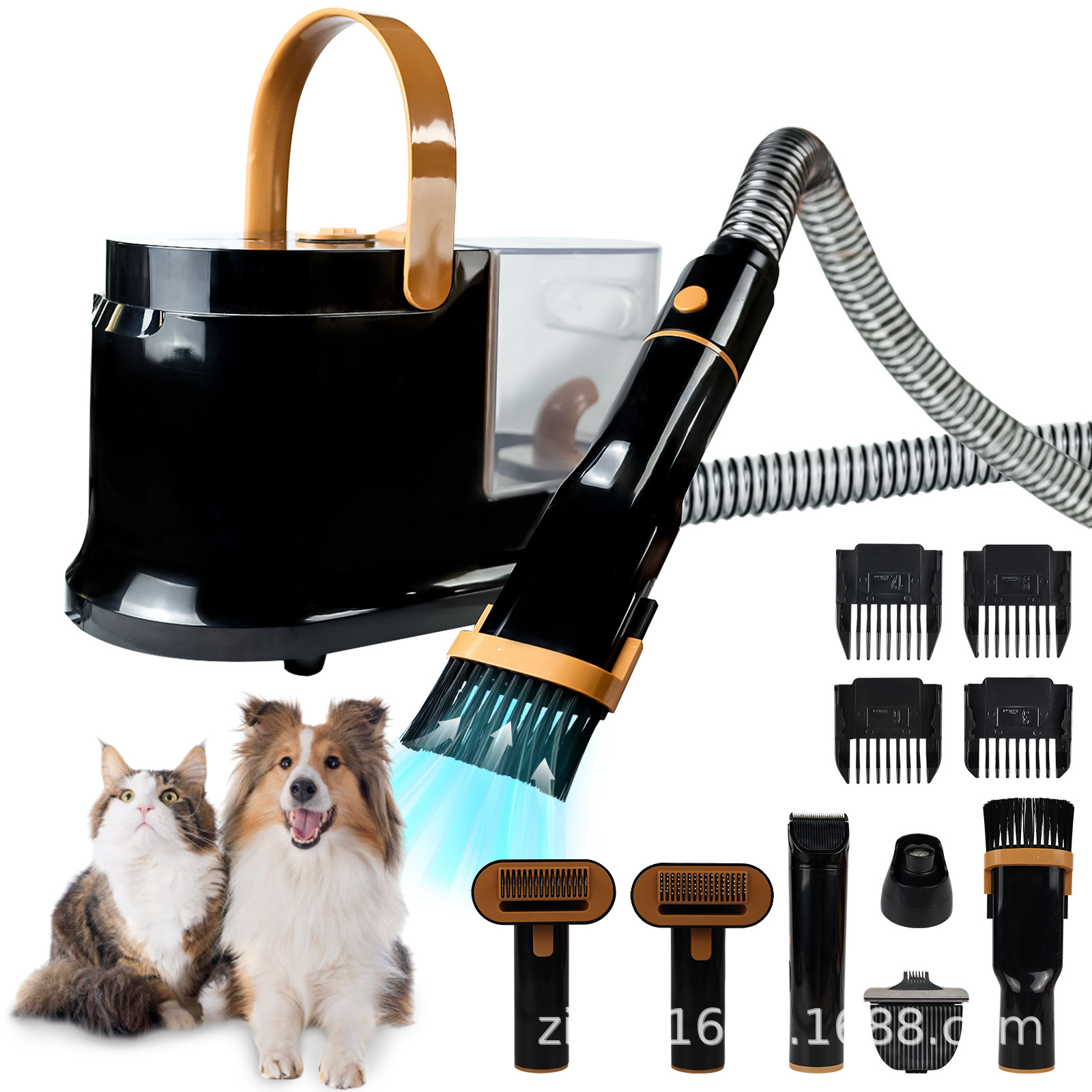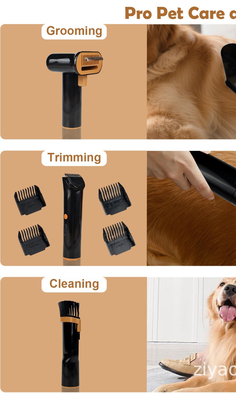 配件:电推剪*1+4个限位梳(3/6/9/12mm) 小推剪,磨甲器,按摩梳*1+开打薄梳*1, 扁吸*1,软管*1+主机电源线*1+ 推剪电源线*1+说明书*1