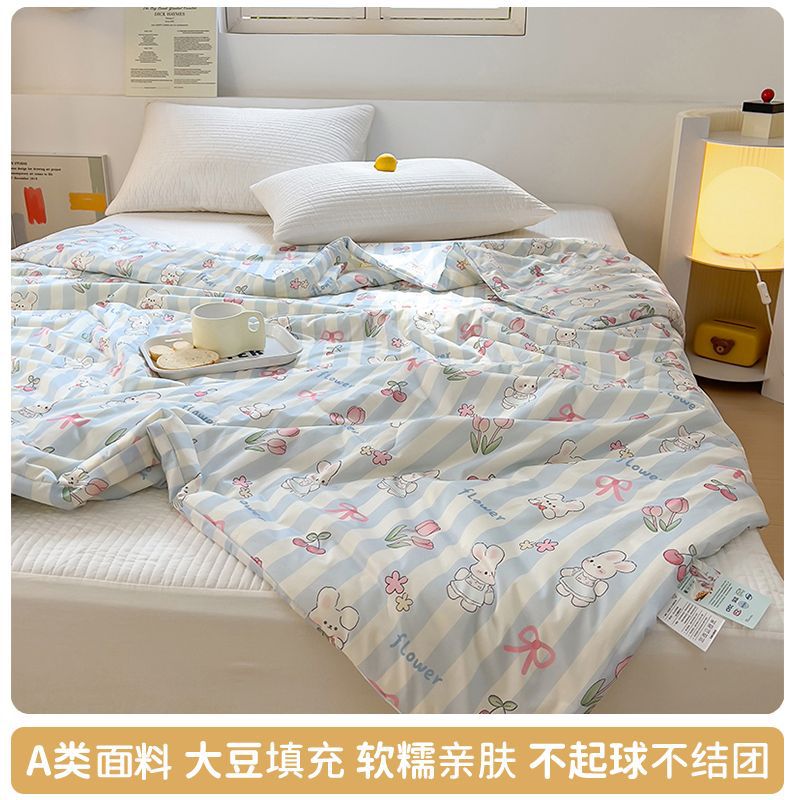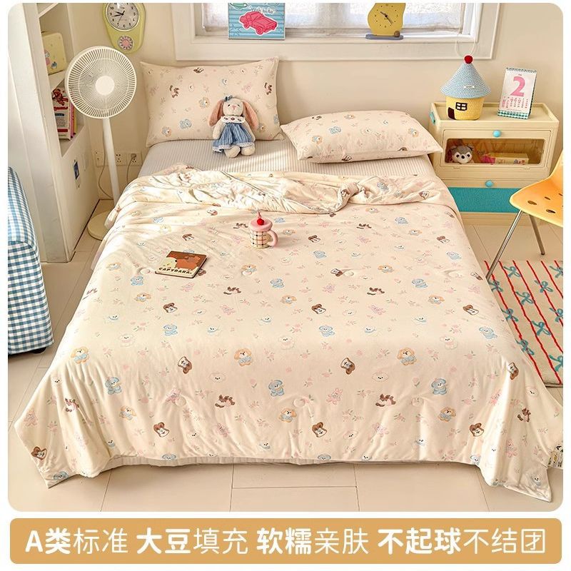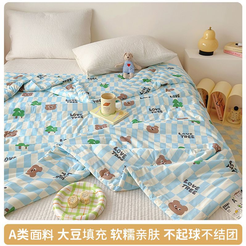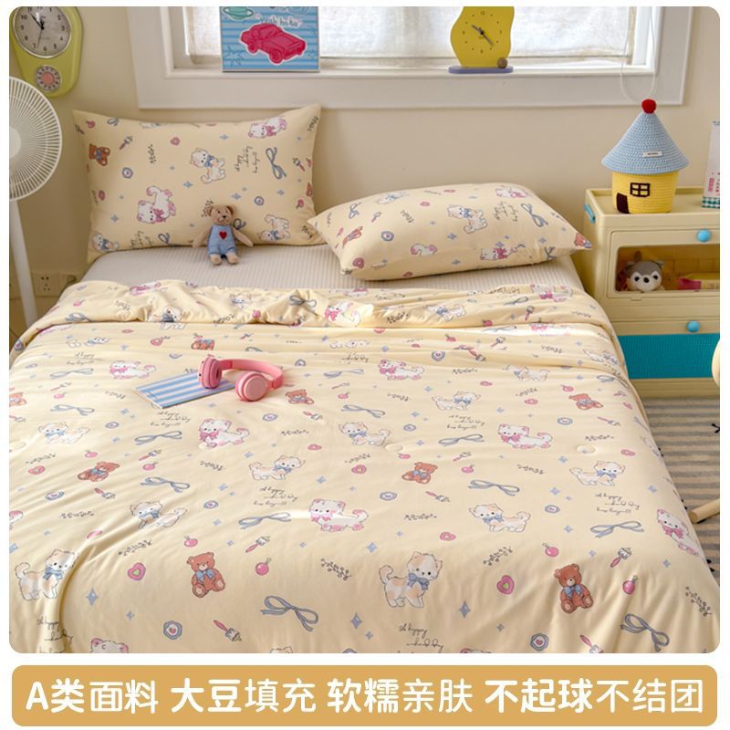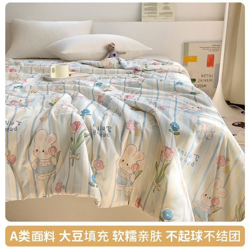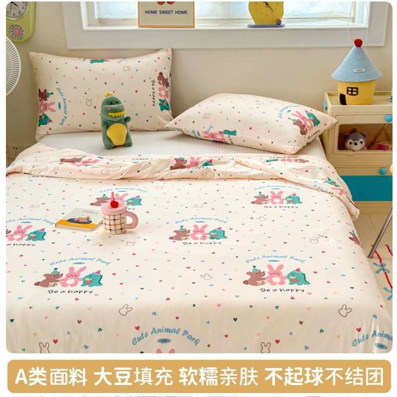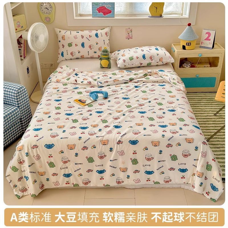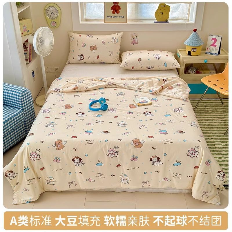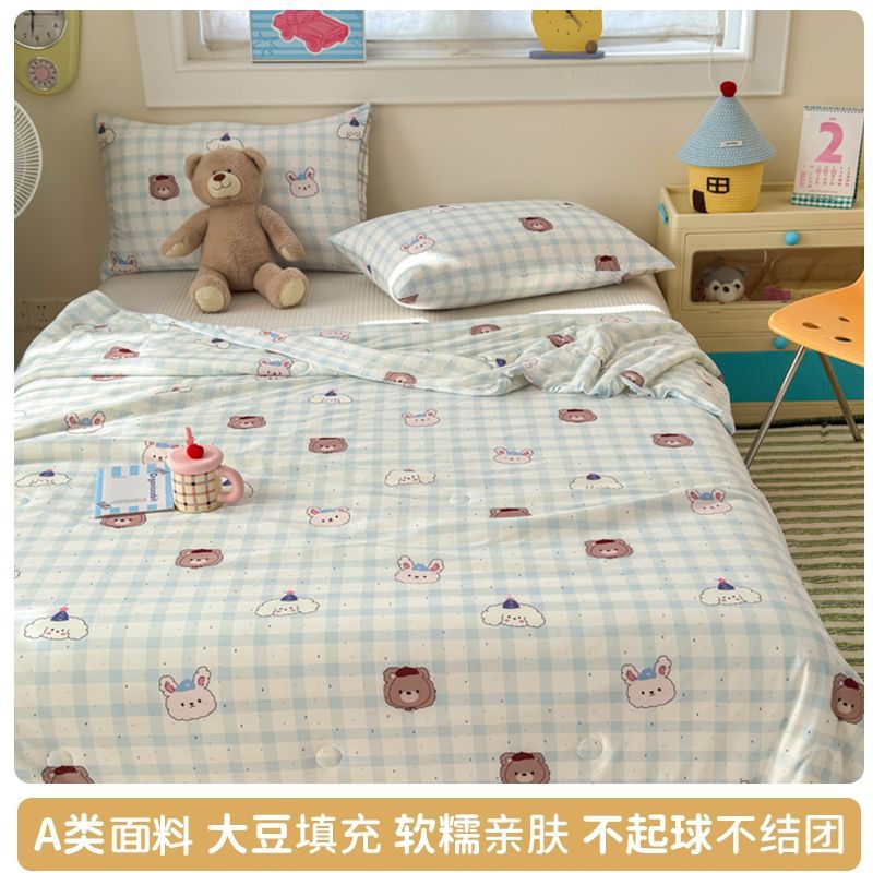 만화 콩 여름 시원한 이불 2025 새로운 여름 얇은 이불 에어컨 이불 학생 싱글 이불 코어 기계 세탁 가능
