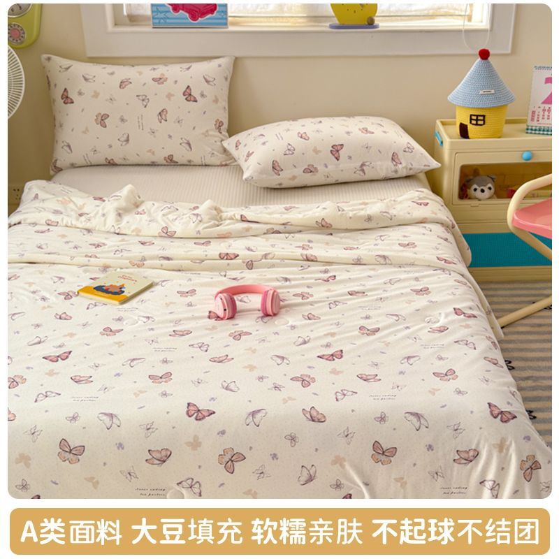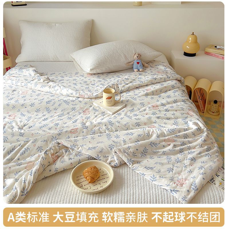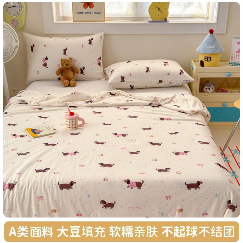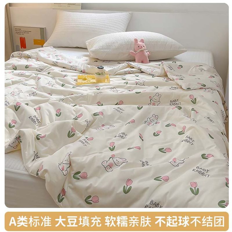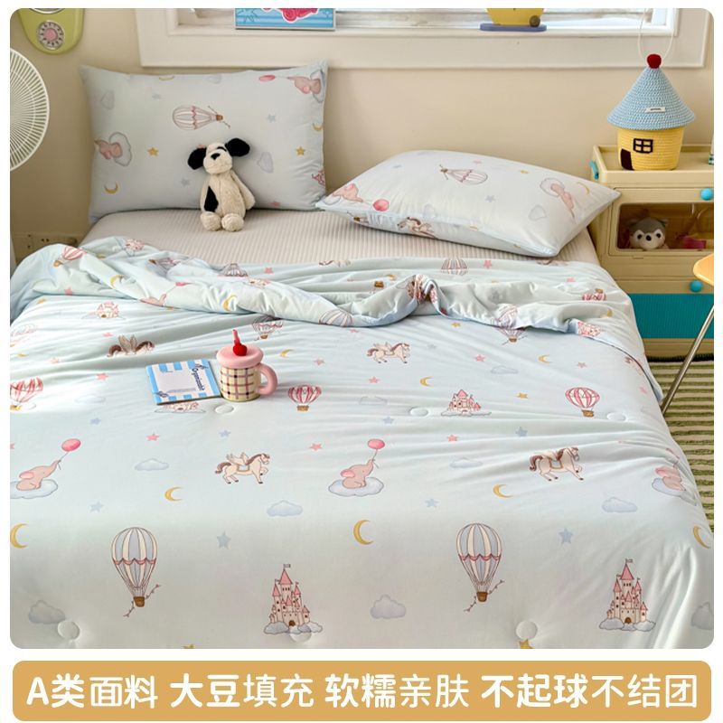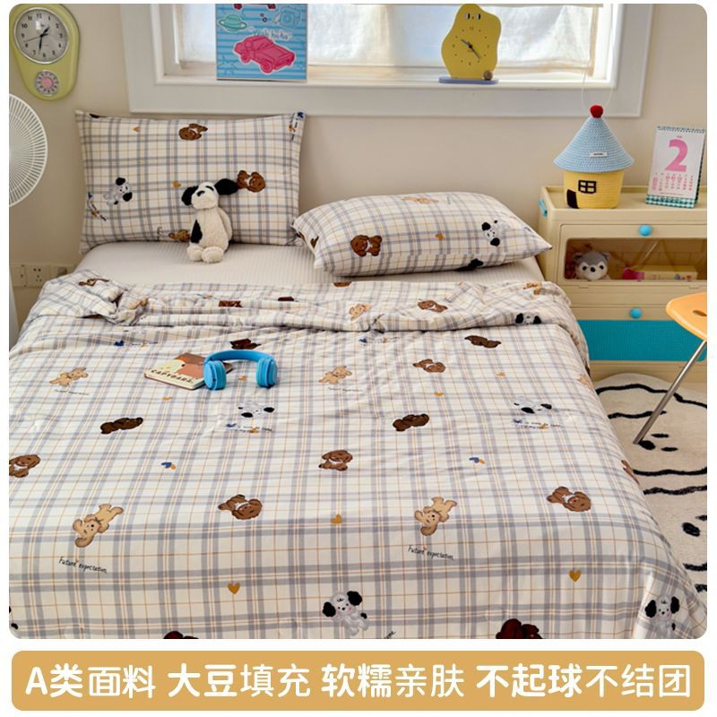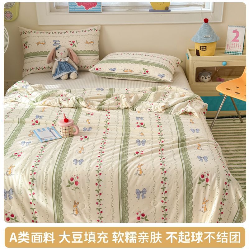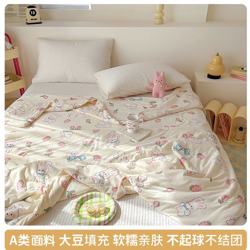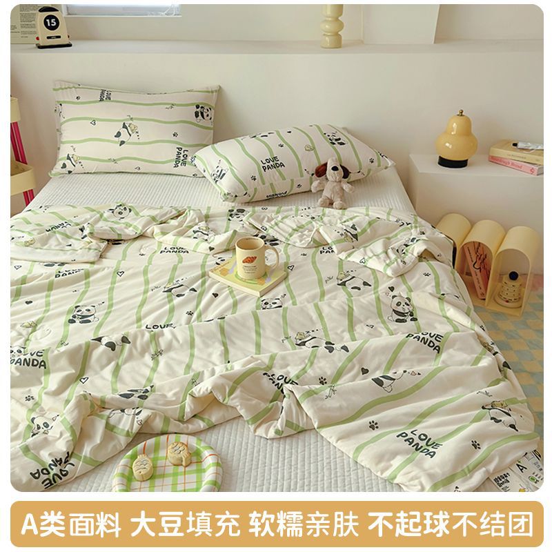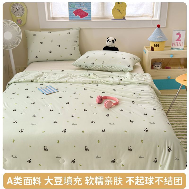 만화 콩 여름 시원한 이불 2025 새로운 여름 얇은 이불 에어컨 이불 학생 싱글 이불 코어 기계 세탁 가능