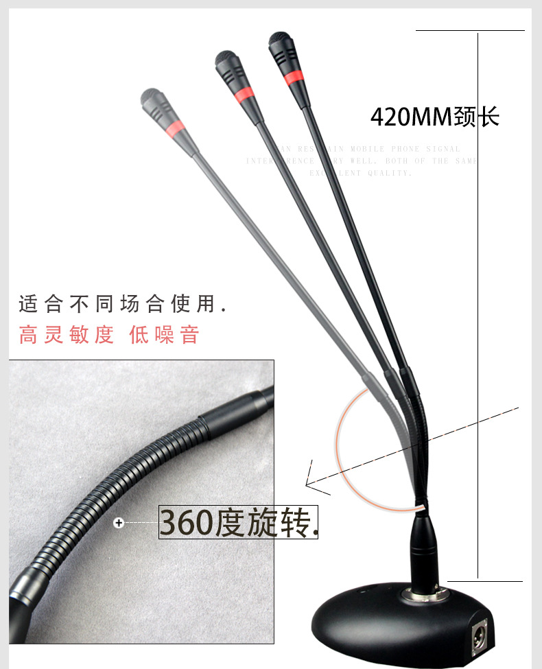 580 전문 회의 마이크 구즈넥 콘덴서 마이크 데스크탑 48V 유선 마이크 학교 강의실 방송실