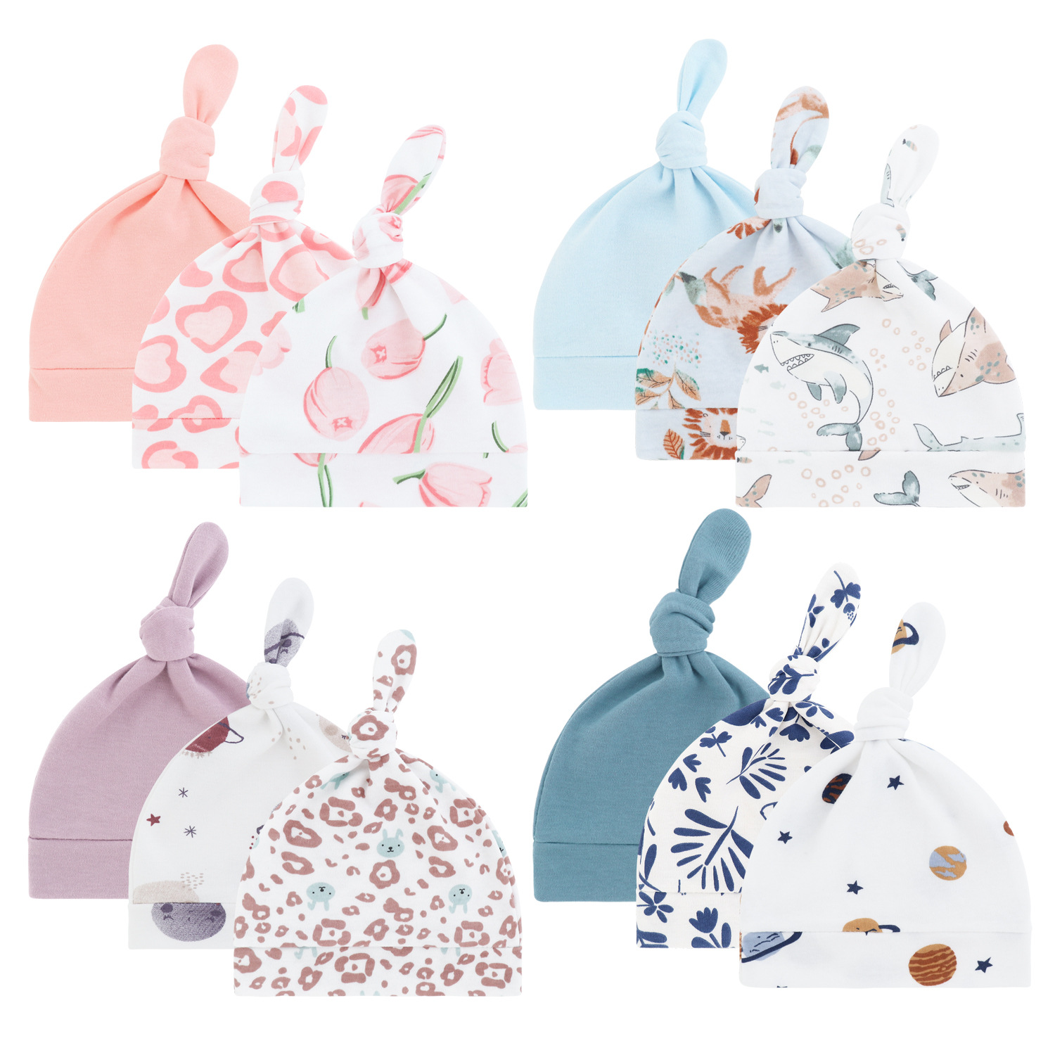 국경 간 신생아 순면 태아 모자 만화 아기 귀여운 매듭 모자 꼬리 모자 남성과 여성 어린이 모자 세트스토어 가기