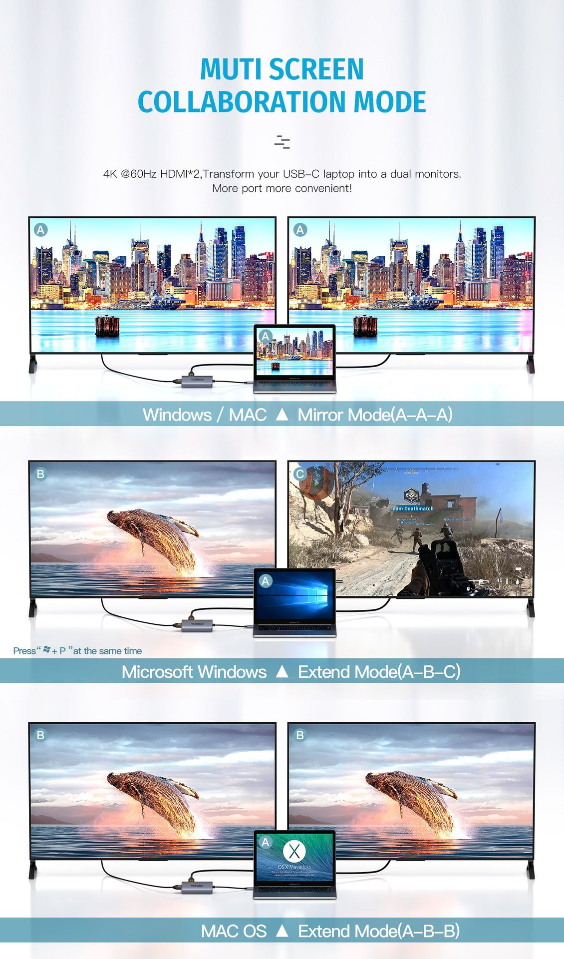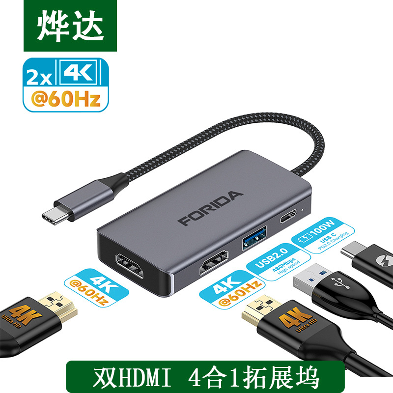 뜨거운 판매 국경 간 유형-c-듀얼 hdmi 4-in-one 확장 도크 PD100w 허브 공장 직접 판매스토어 가기