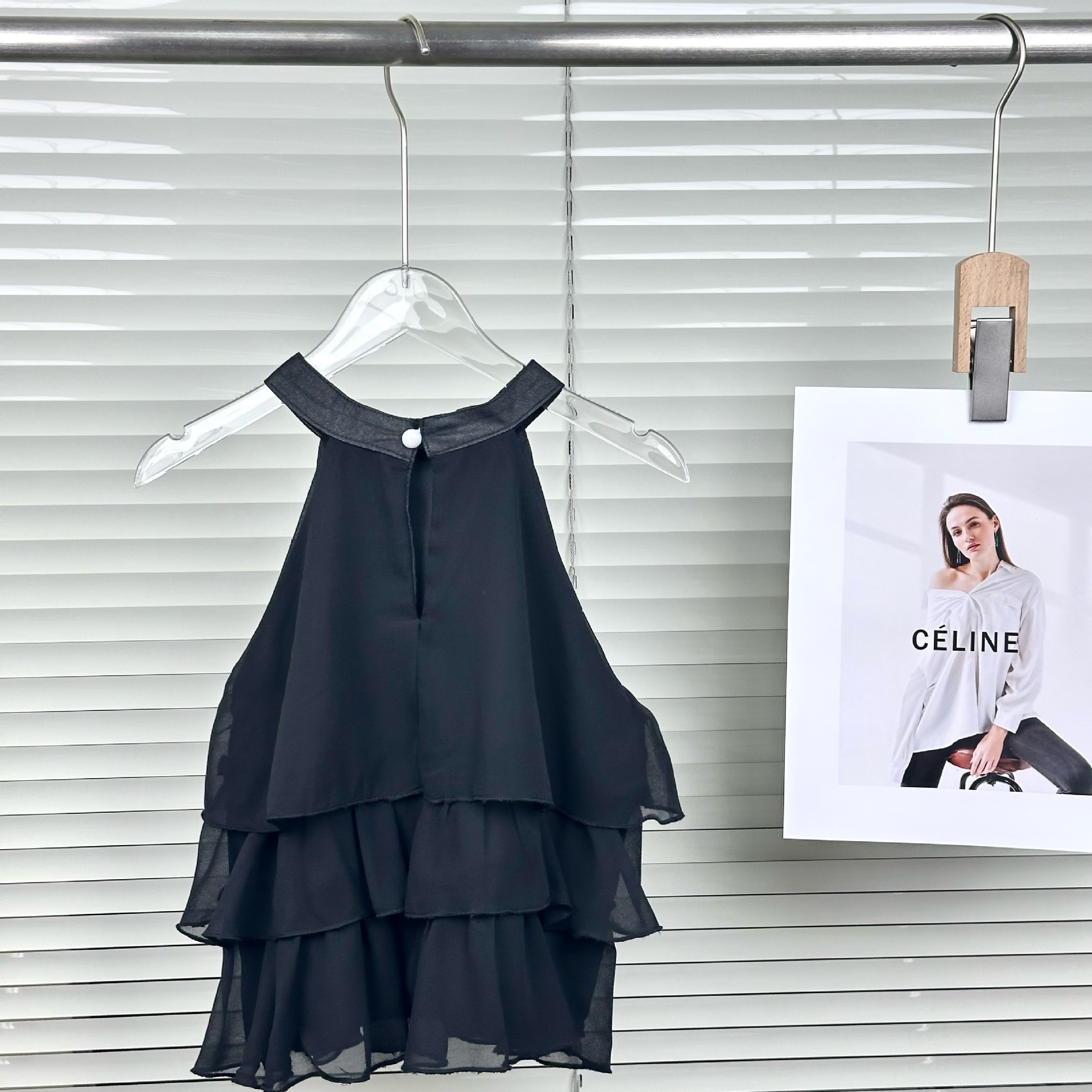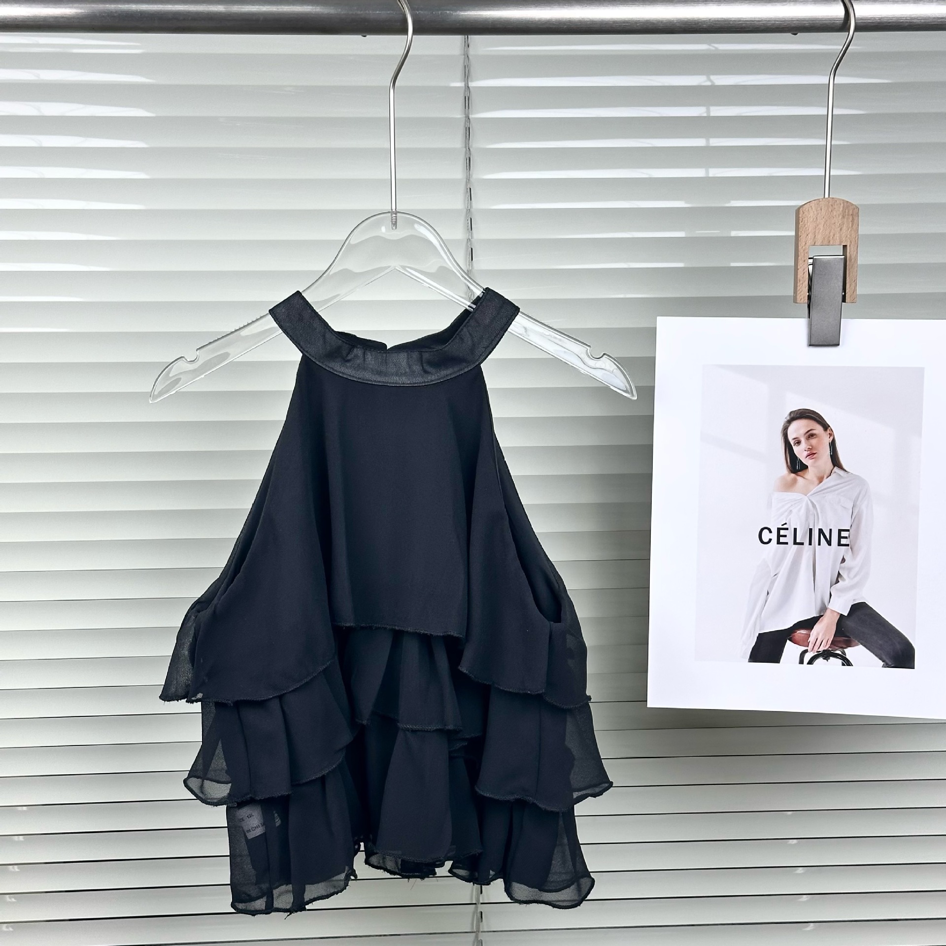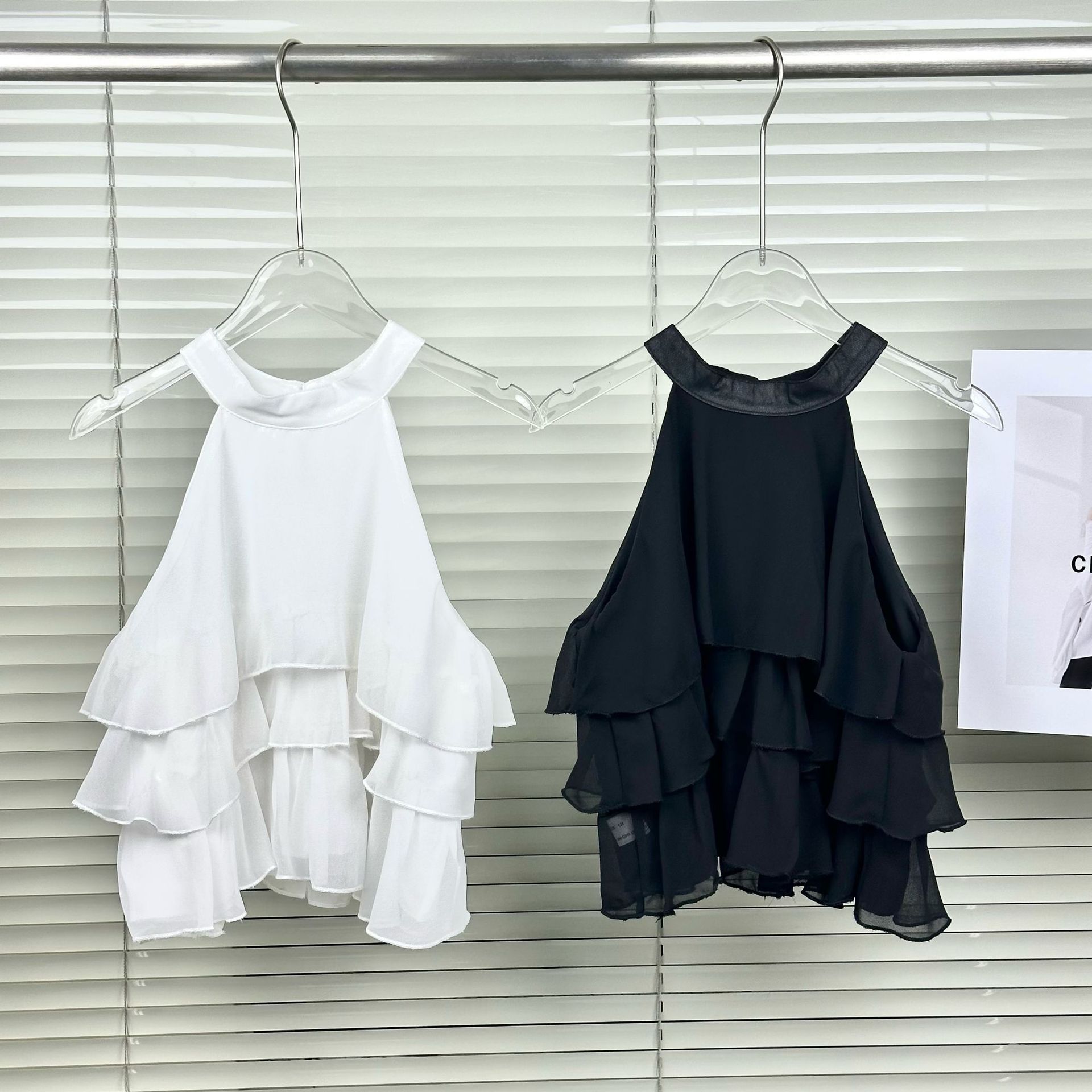 여자 여름 새로운 홀터넥 드레스 2025 한국어 버전 새로운 쉬폰 작은 향기로운 스타일 홀터넥 쉬폰 조끼 멜빵