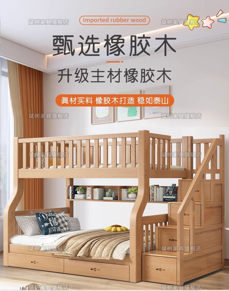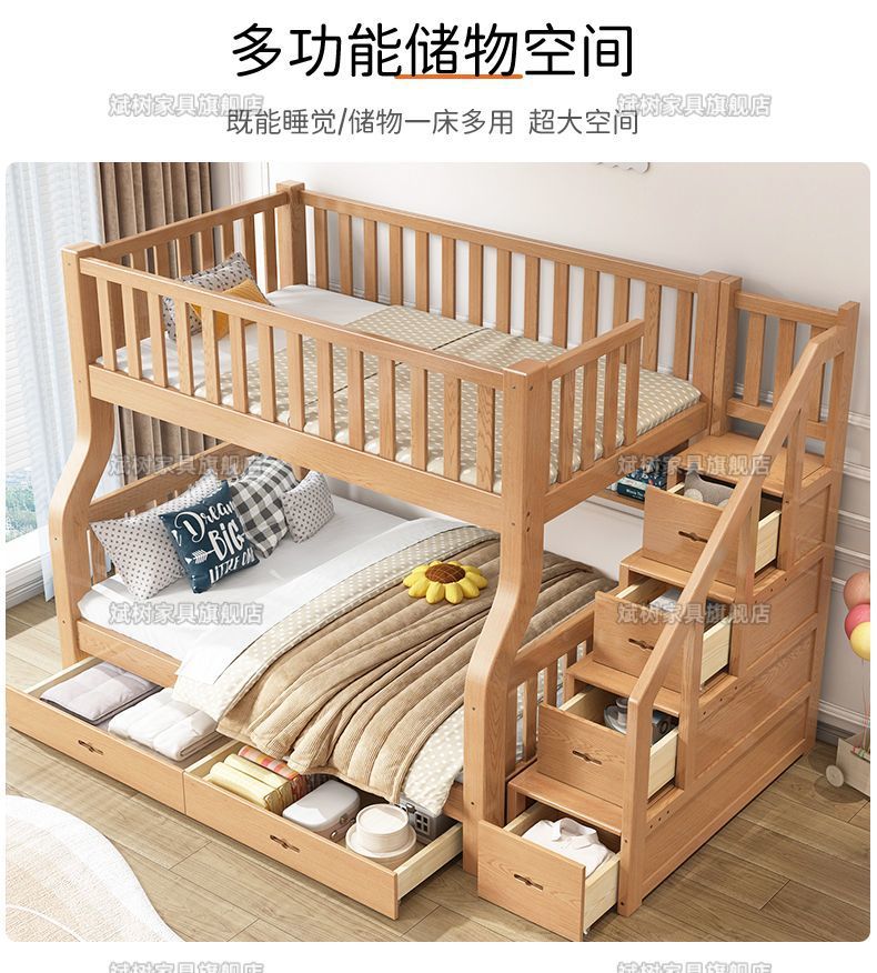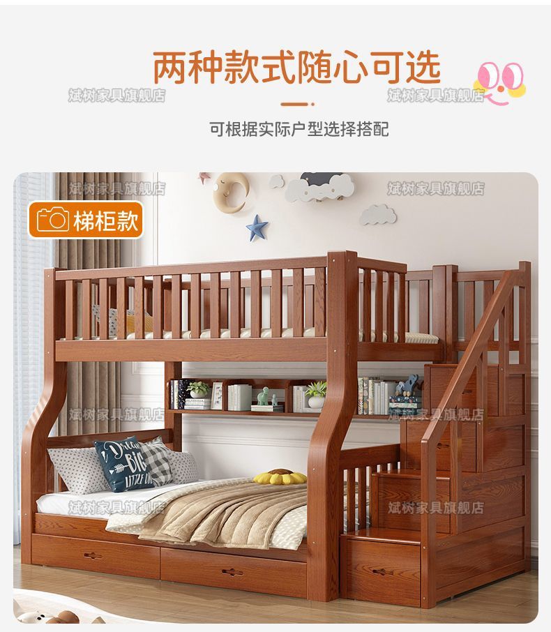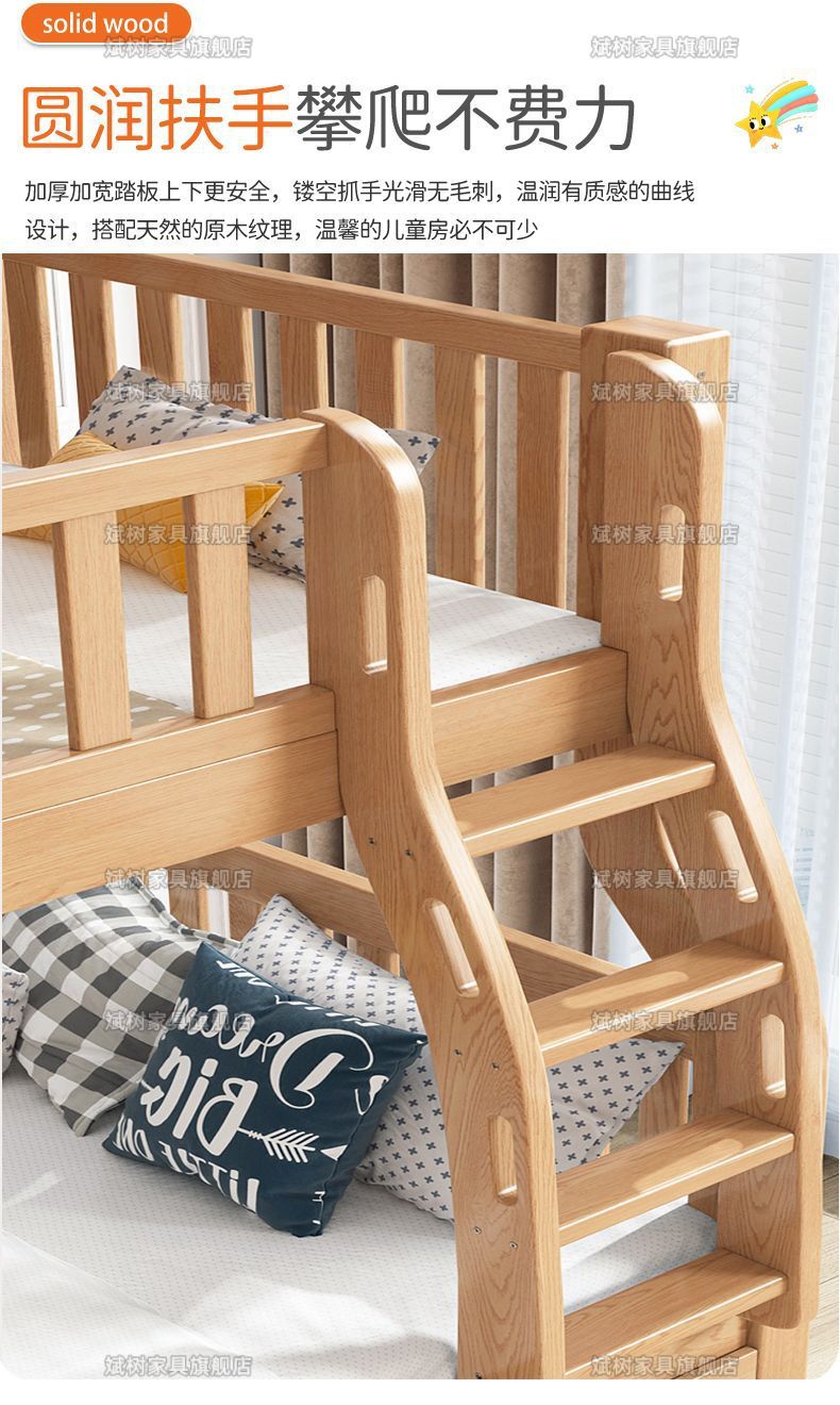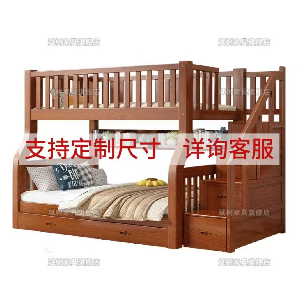 두꺼운 원목 이층침대, 이층침대, 2층 성인침대, 높낮이침대, 이층침대, 두껍고 두꺼운