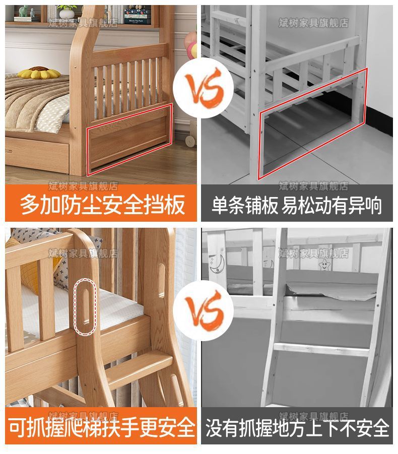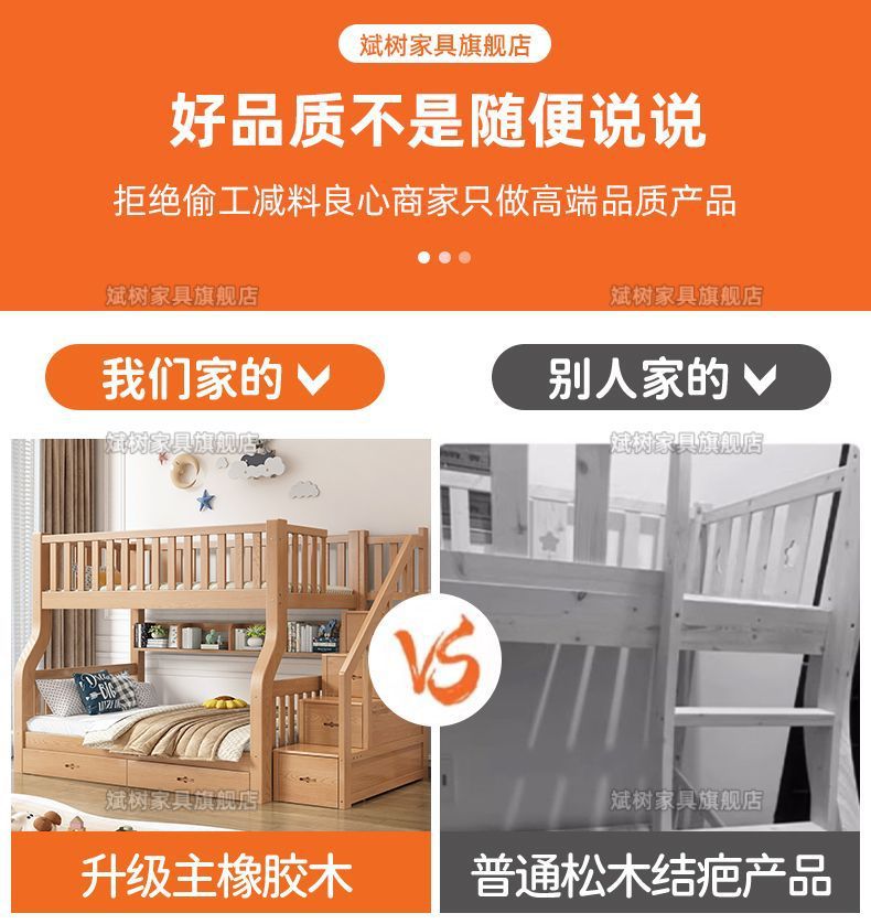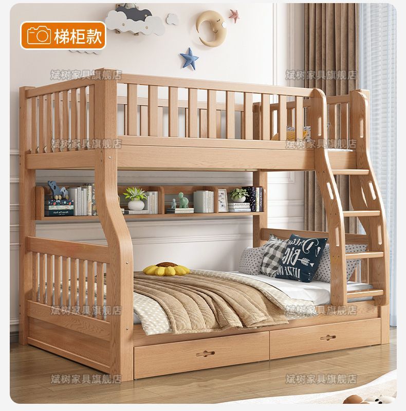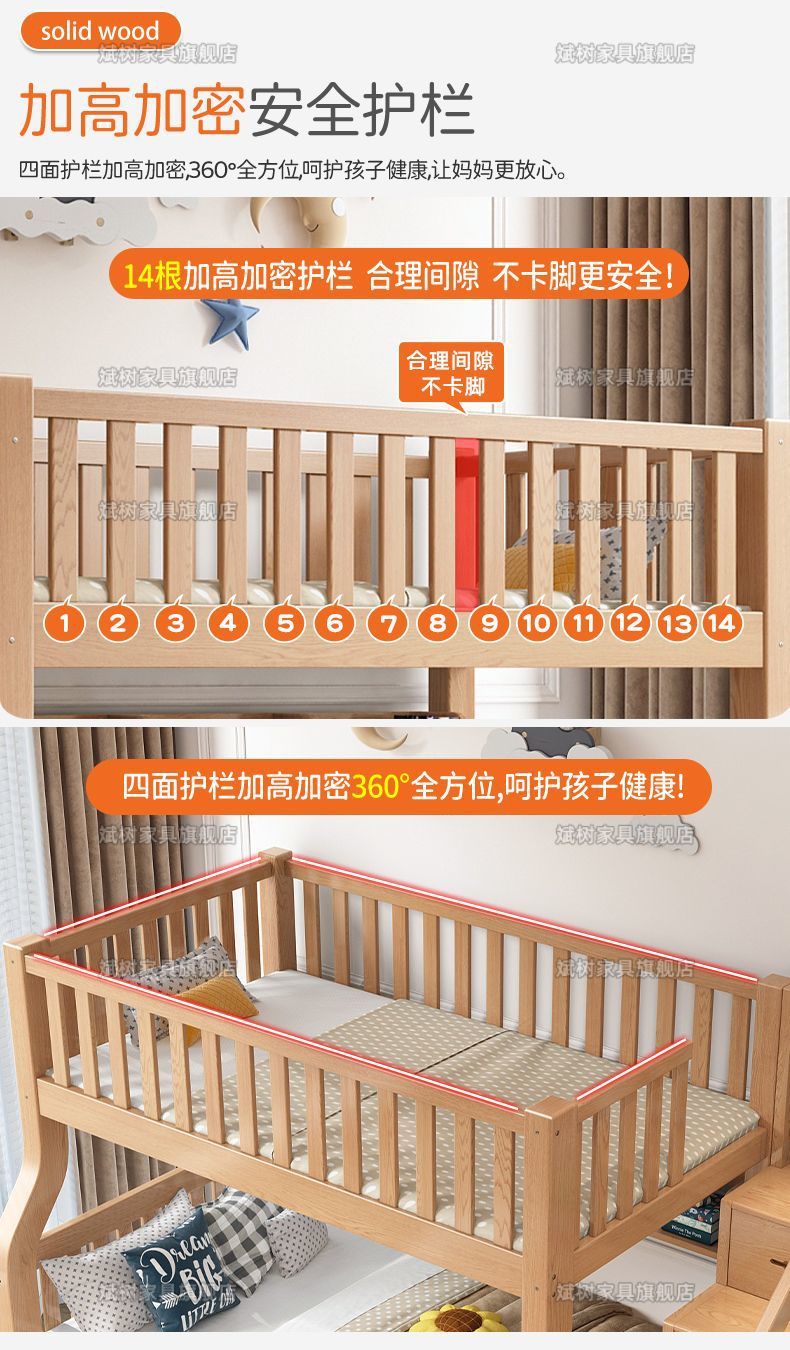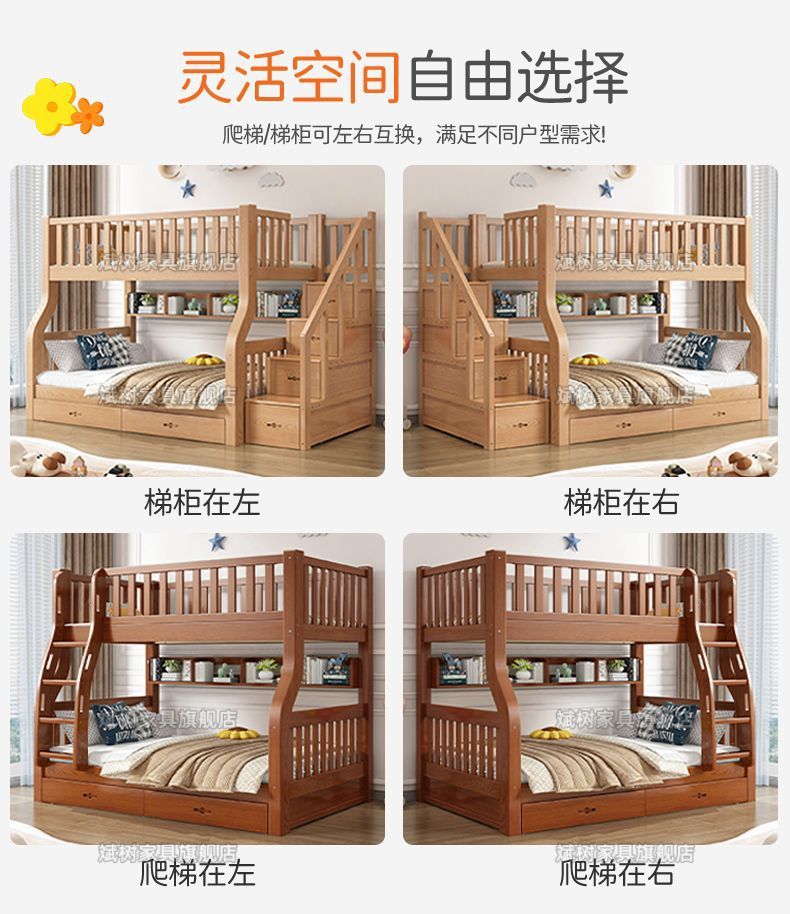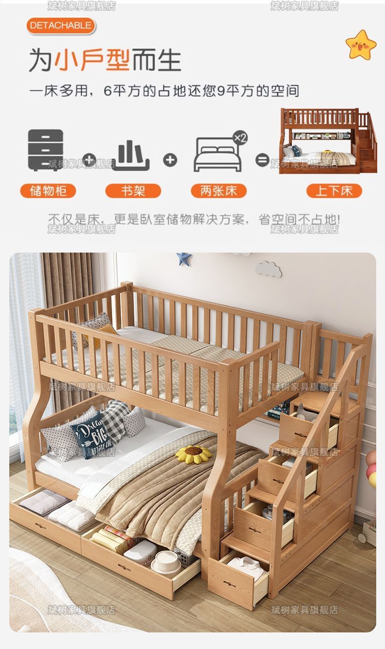 두꺼운 원목 이층침대, 이층침대, 2층 성인침대, 높낮이침대, 이층침대, 두껍고 두꺼운