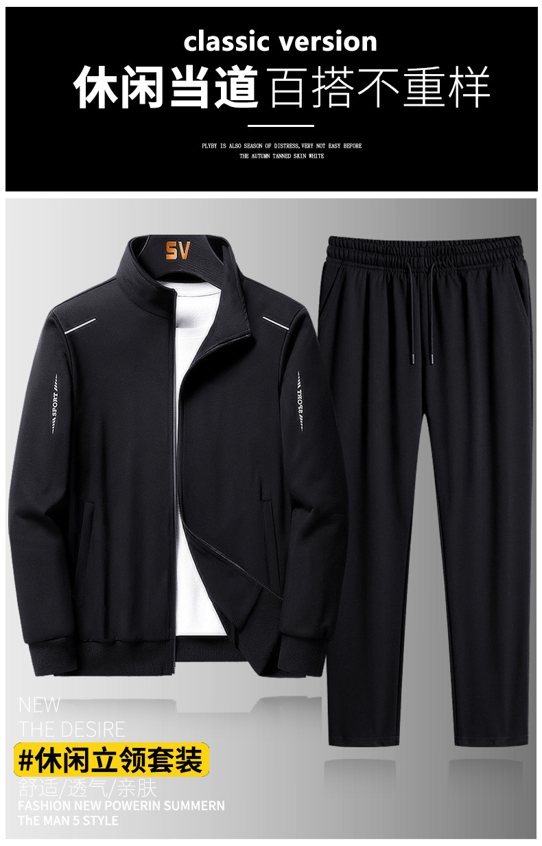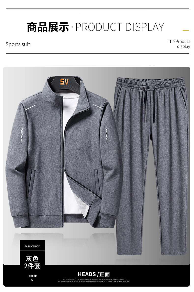 새로운 투피스 세트 새로운 남성 스포츠 정장 솔리드 컬러 스웨트 스탠드 칼라 남성 봄, 가을 긴팔 카디건 슈트스토어 가기