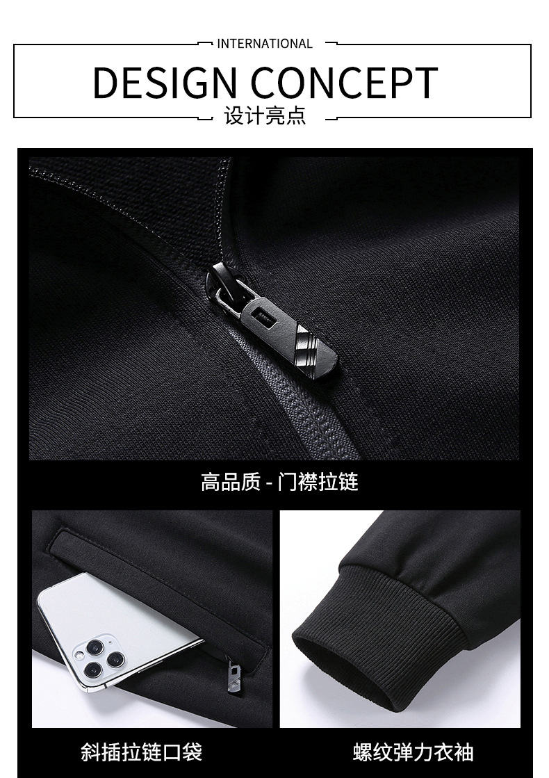 새로운 투피스 세트 새로운 남성 스포츠 정장 솔리드 컬러 스웨트 스탠드 칼라 남성 봄, 가을 긴팔 카디건 슈트