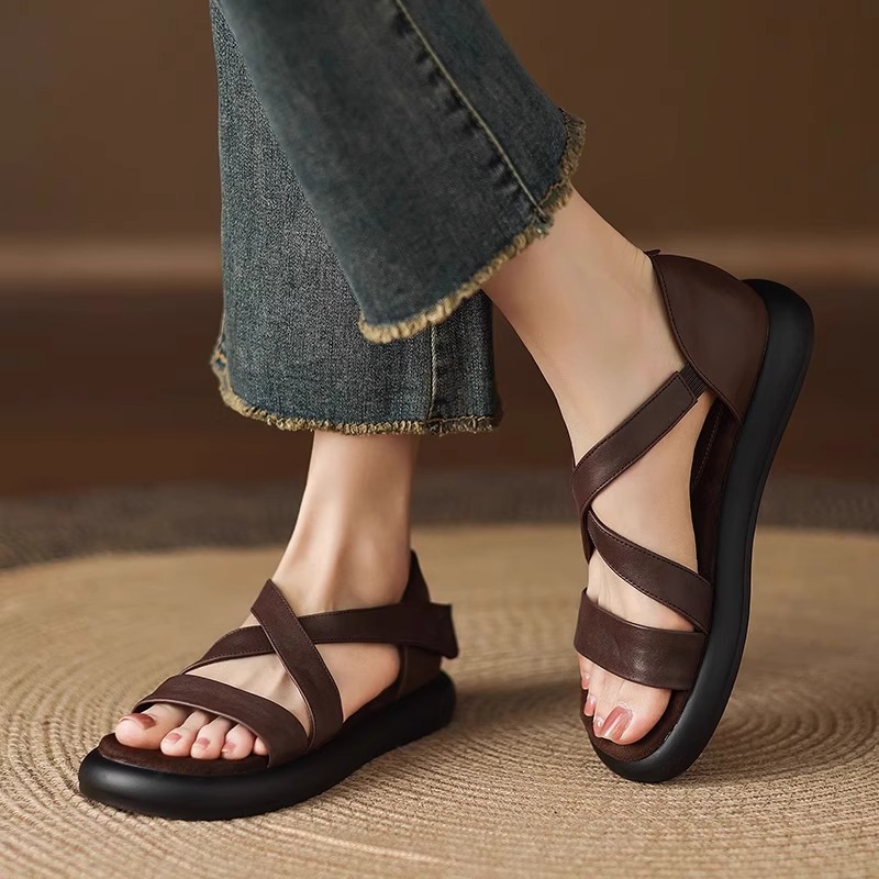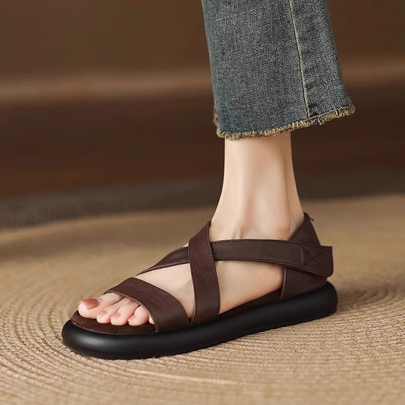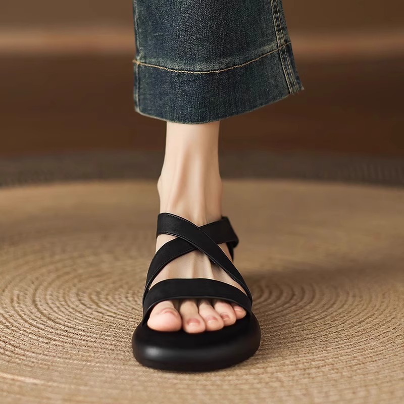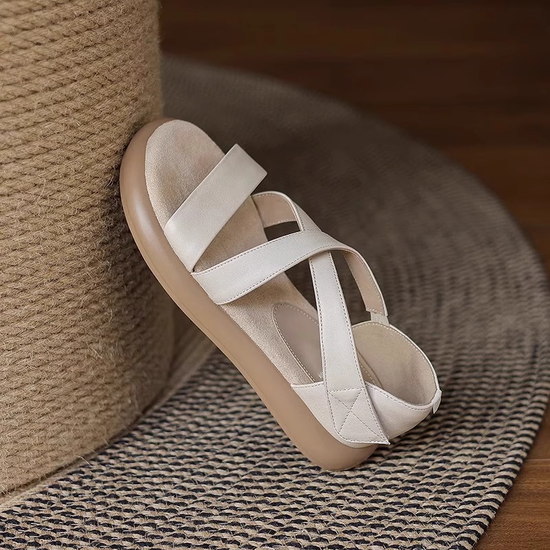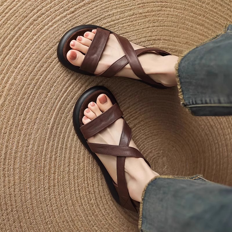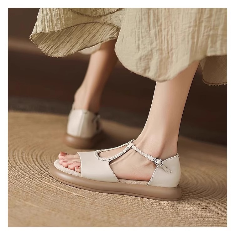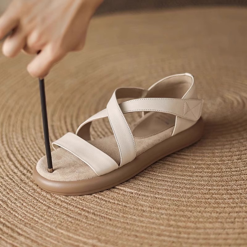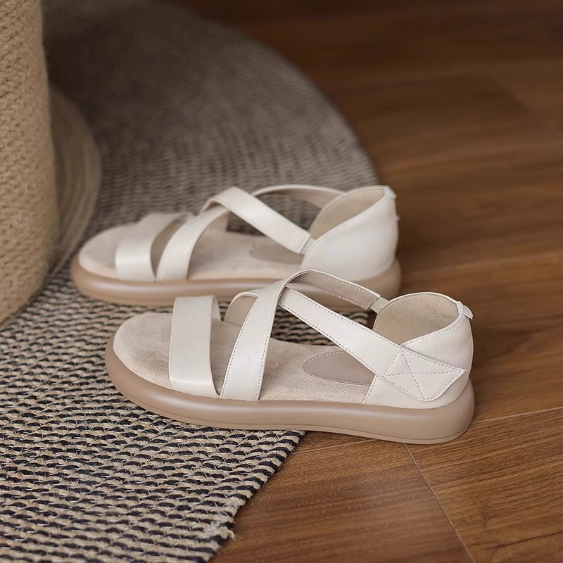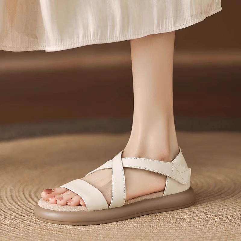 매우 부드러운 천연가죽~ 두꺼운 밑창의 여성용 샌들, 2026년 여름 신상, 스커트와 함께 입기 좋은, 다용도로 활용 가능하고, 아름답고 발이 피곤하지 않은 로마 샌들
