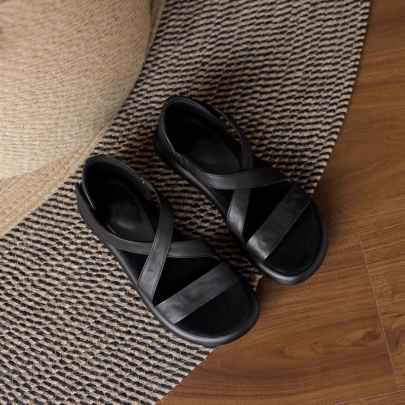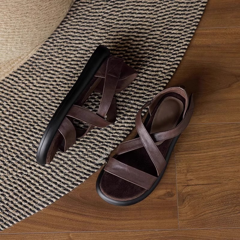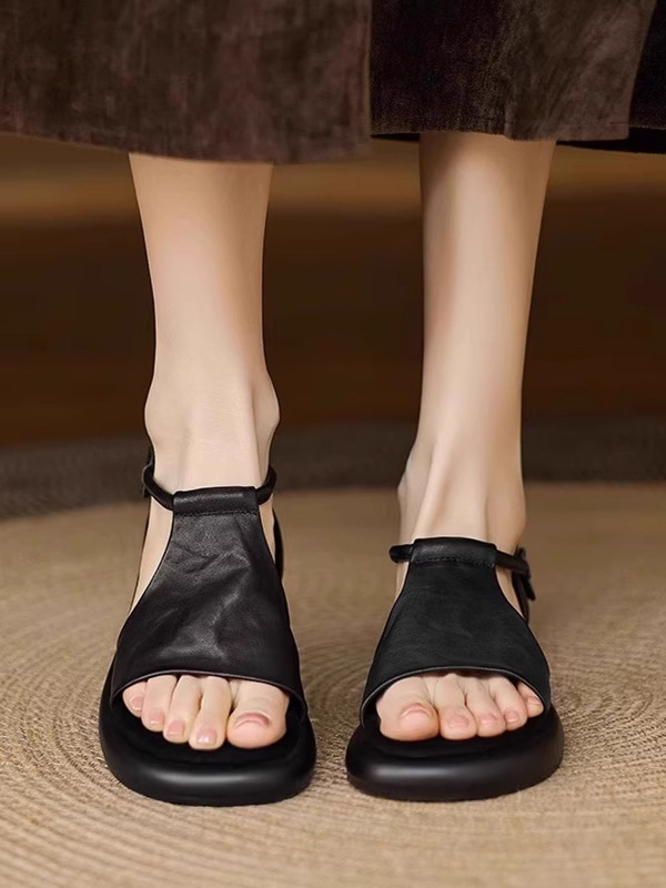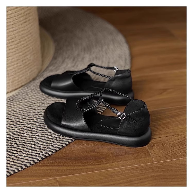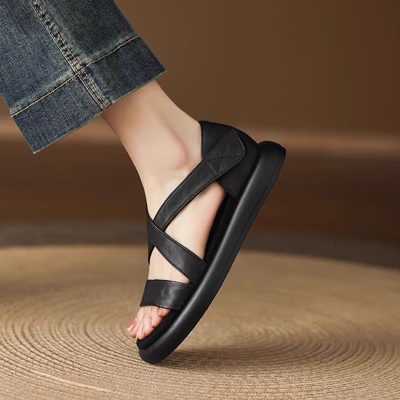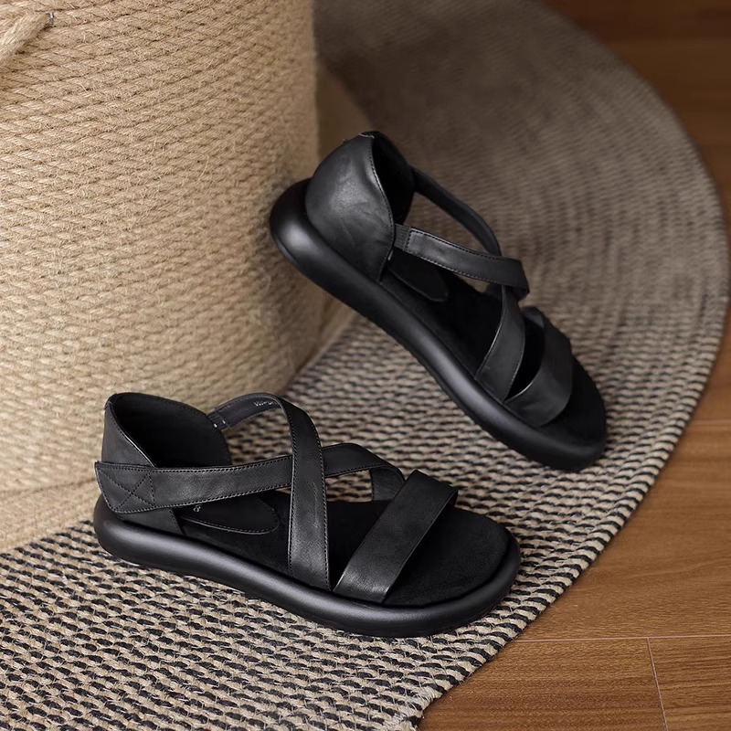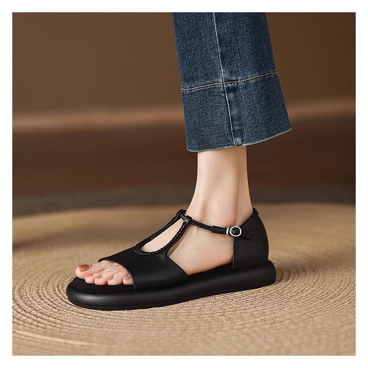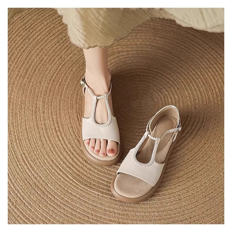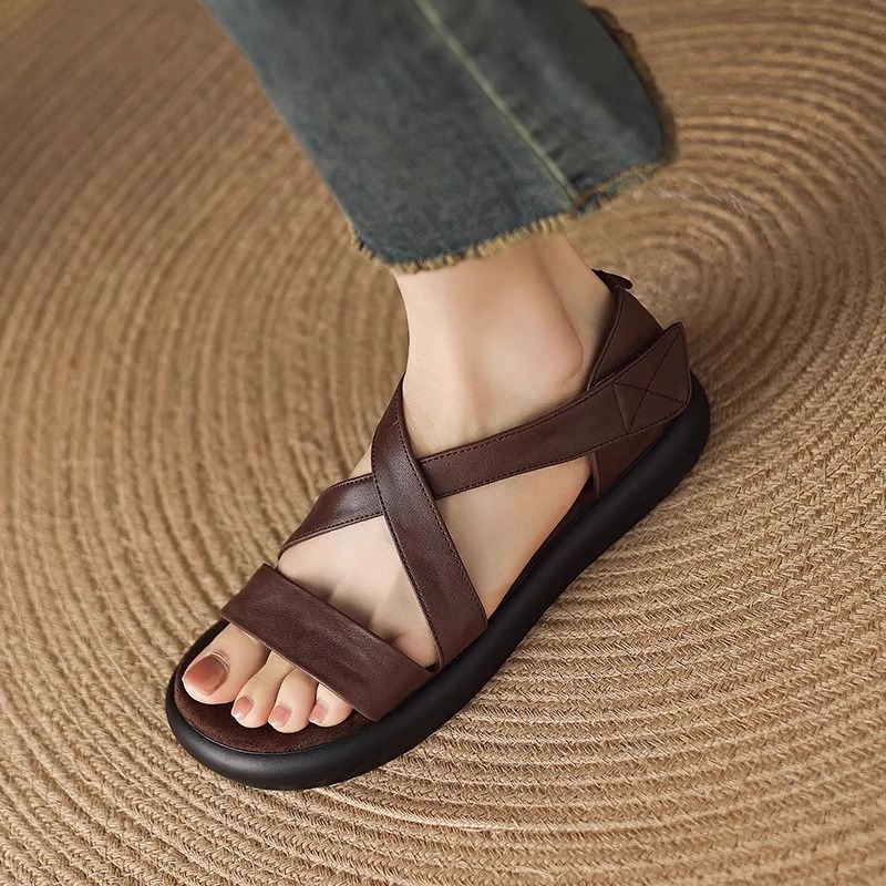 매우 부드러운 천연가죽~ 두꺼운 밑창의 여성용 샌들, 2026년 여름 신상, 스커트와 함께 입기 좋은, 다용도로 활용 가능하고, 아름답고 발이 피곤하지 않은 로마 샌들