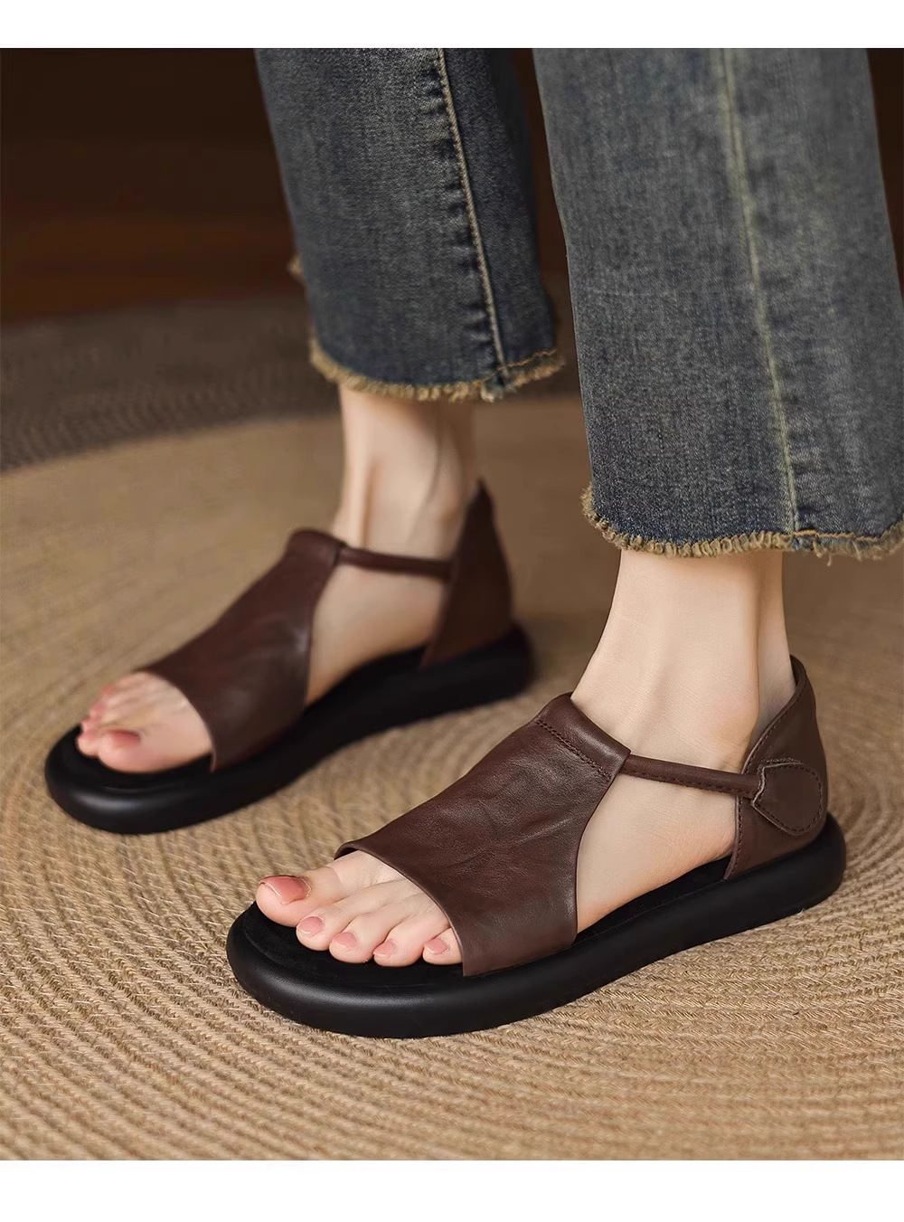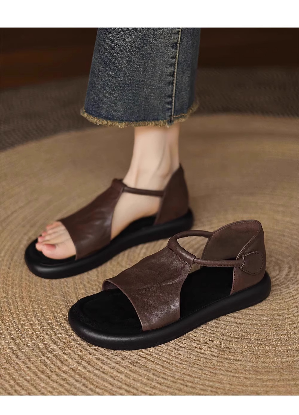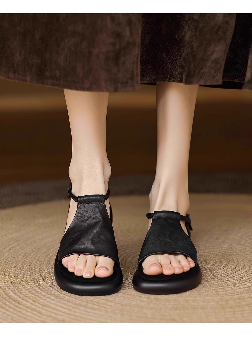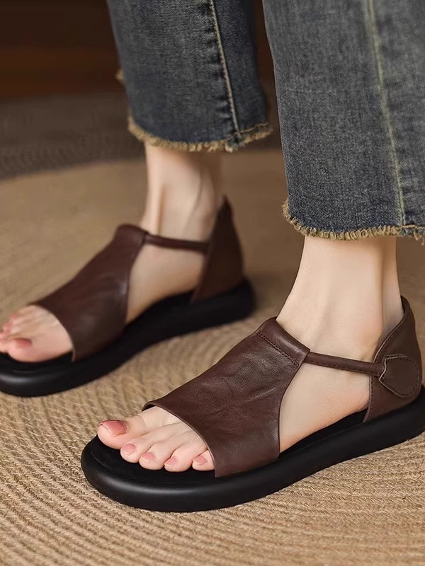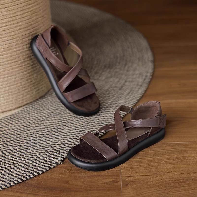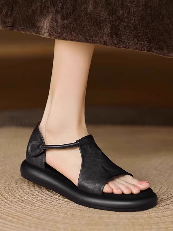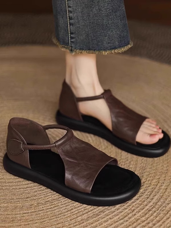 매우 부드러운 천연가죽~ 두꺼운 밑창의 여성용 샌들, 2026년 여름 신상, 스커트와 함께 입기 좋은, 다용도로 활용 가능하고, 아름답고 발이 피곤하지 않은 로마 샌들