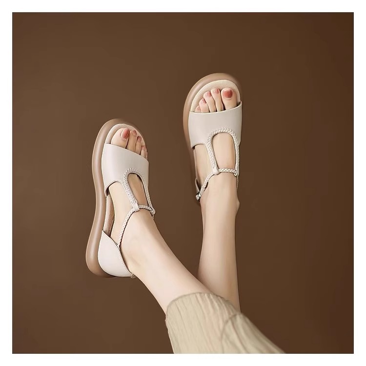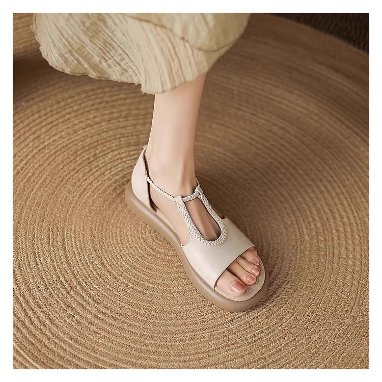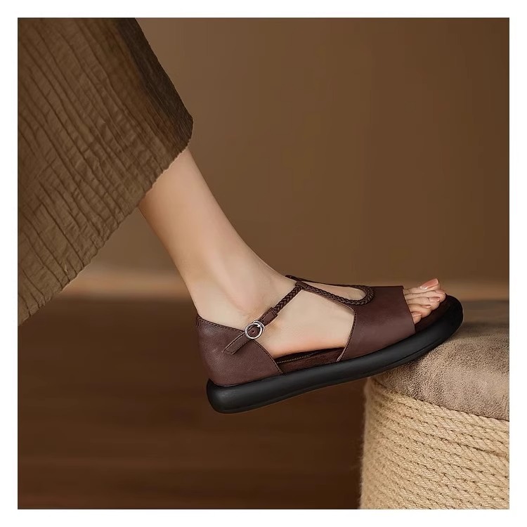 매우 부드러운 천연가죽~ 두꺼운 밑창의 여성용 샌들, 2026년 여름 신상, 스커트와 함께 입기 좋은, 다용도로 활용 가능하고, 아름답고 발이 피곤하지 않은 로마 샌들스토어 가기