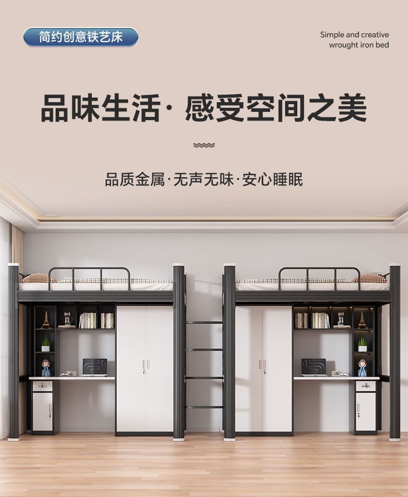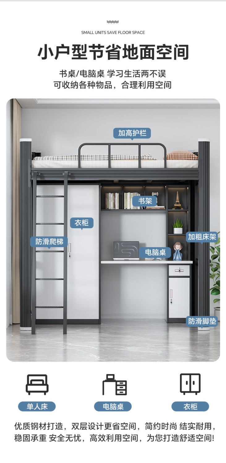 대학생 기숙사 이층침대와 테이블이 결합된 침대, 성인용 가정용 침대, 아파트 철제 침대, 소형 가정용 이층침대스토어 가기