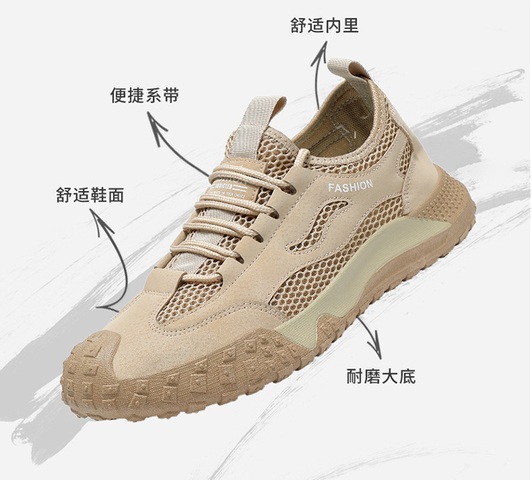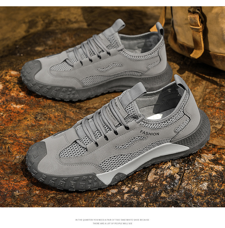 새로운 남성용 여름 싱글 메쉬 통기성 운동화, 야외용 속이 빈 운동화, 내마모성 패셔너블 캐주얼 남성화