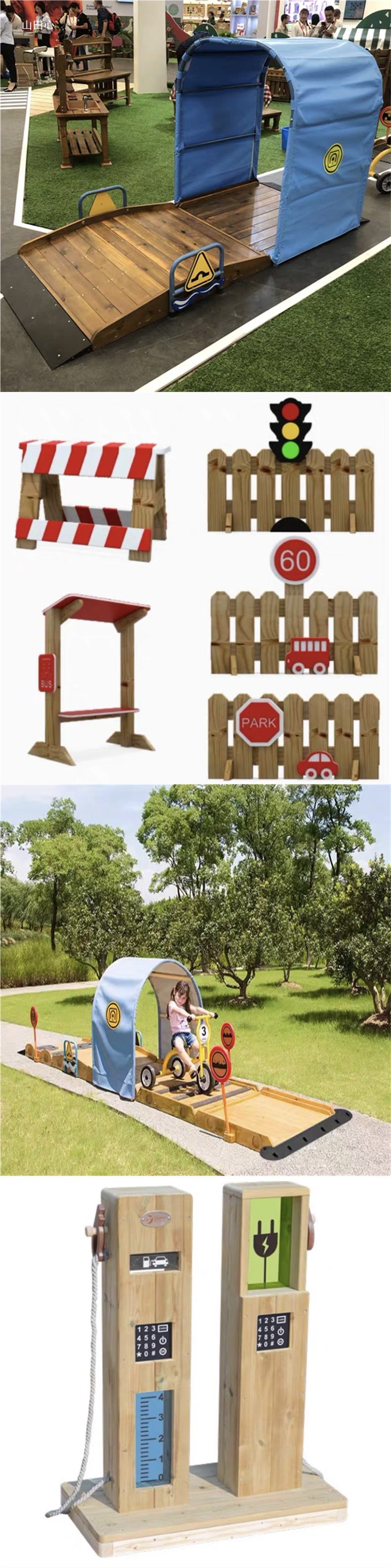 유치원 어린이 야외 교통 구역 게임 경사로 장애물 아치형 교량 승마 구역 주유소 주차장 커맨드 센터