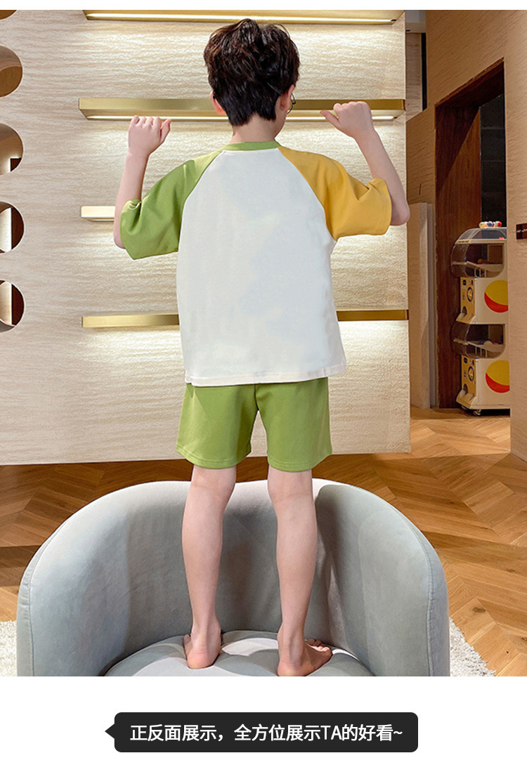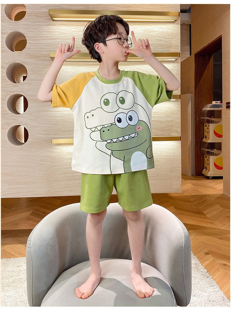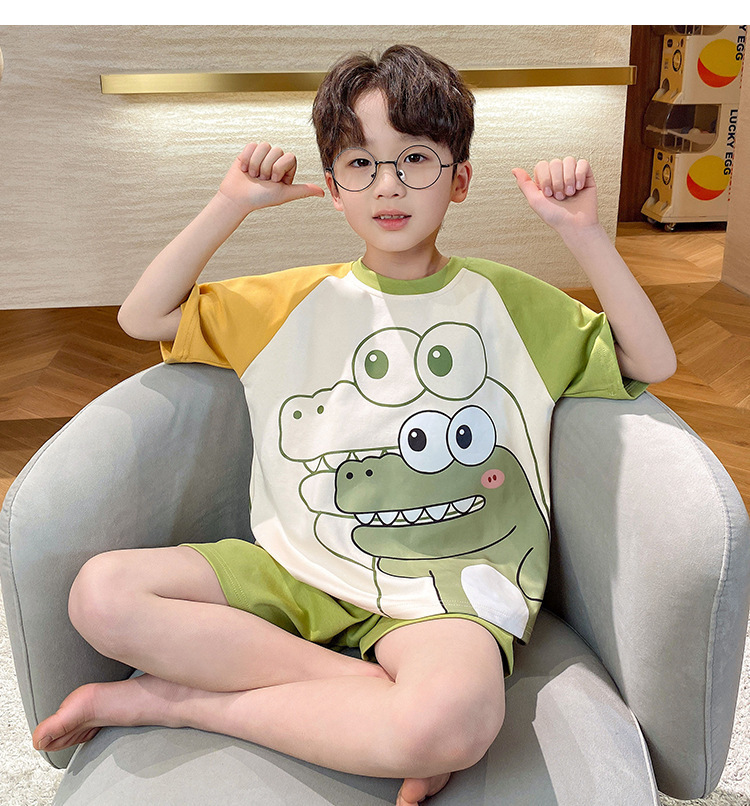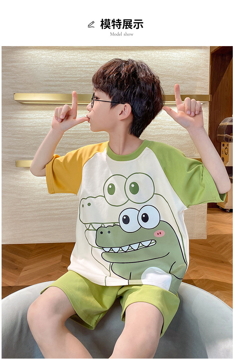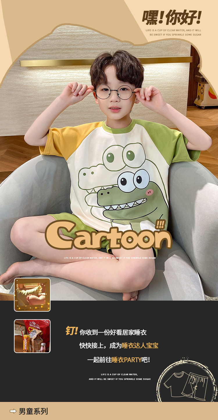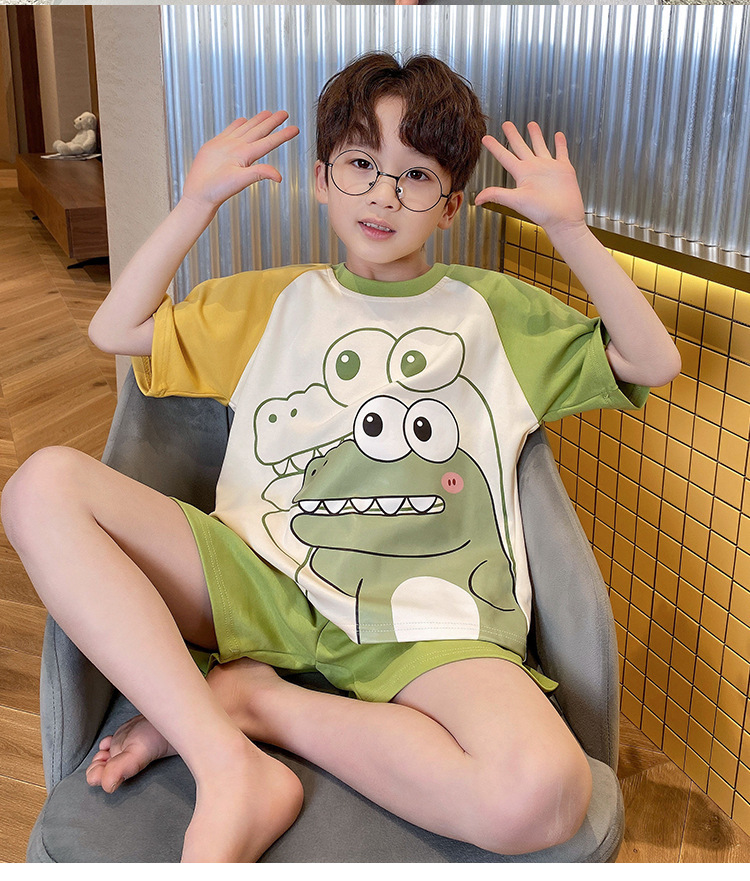 2024 새로운 소년 잠옷 여름 반팔 바지 얇은 어린이 어린 소년 청소년 큰 어린이 아기 가정 옷스토어 가기