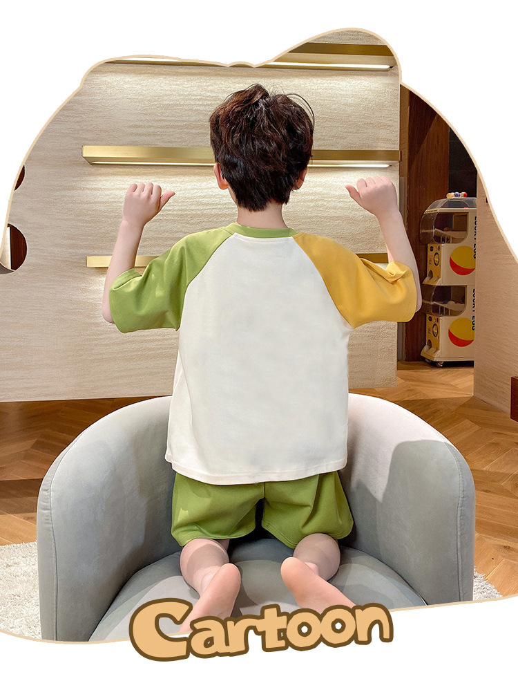 2024 새로운 소년 잠옷 여름 반팔 바지 얇은 어린이 어린 소년 청소년 큰 어린이 아기 가정 옷
