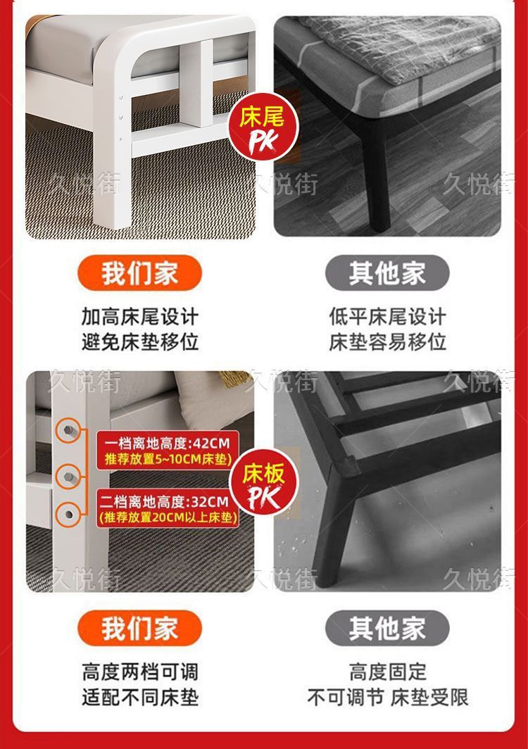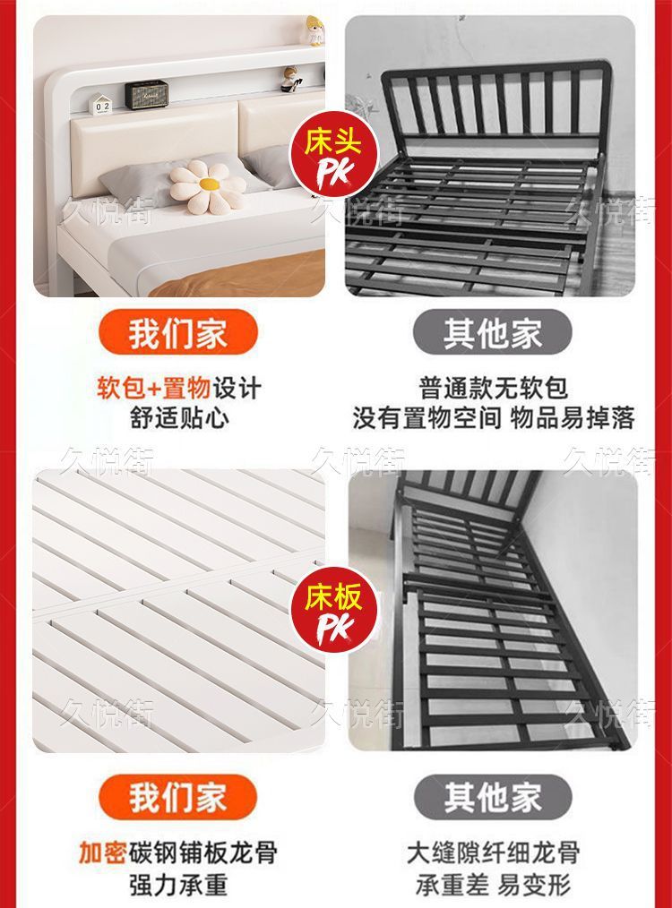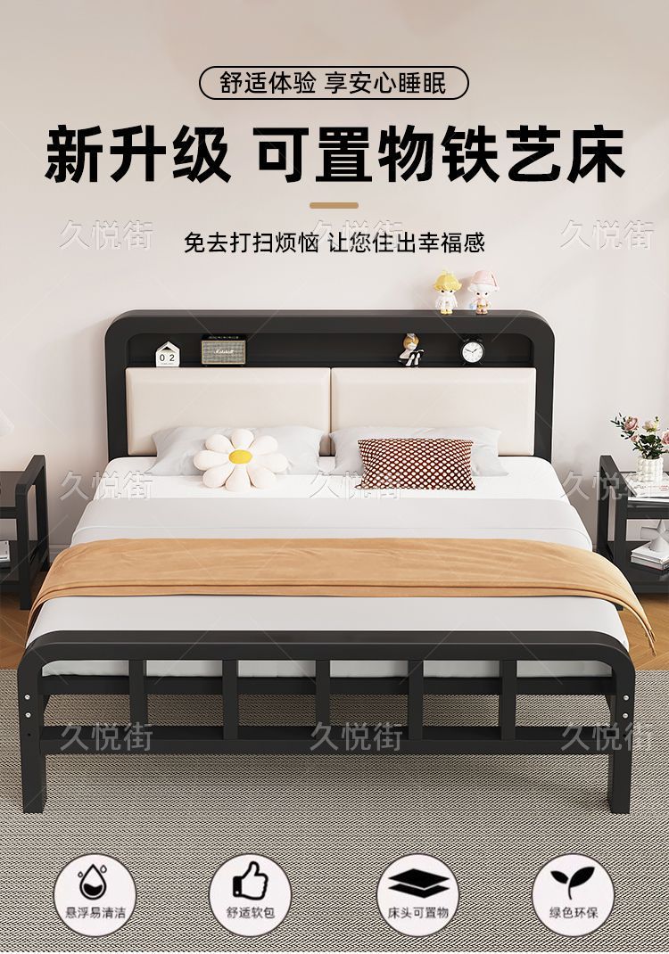단층침대를 높일 수 있는 철제 침대, 강화 철제 프레임 침대, 침실 리모델링, 심플하고 조용한 철제 침대, 점심시간 철제 프레임 침대스토어 가기