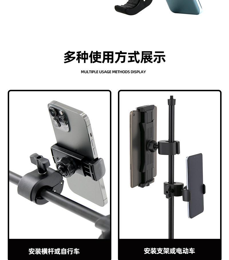 휴대폰 라이브 방송 스탠드, 추가 카메라 삼각대 확장 클립, 볼 헤드 강력 클램프, 크랩 클램프 튜브 클립, 자전거 내비게이션 스탠드