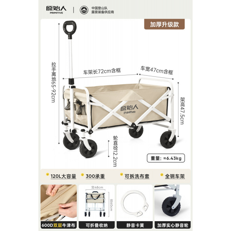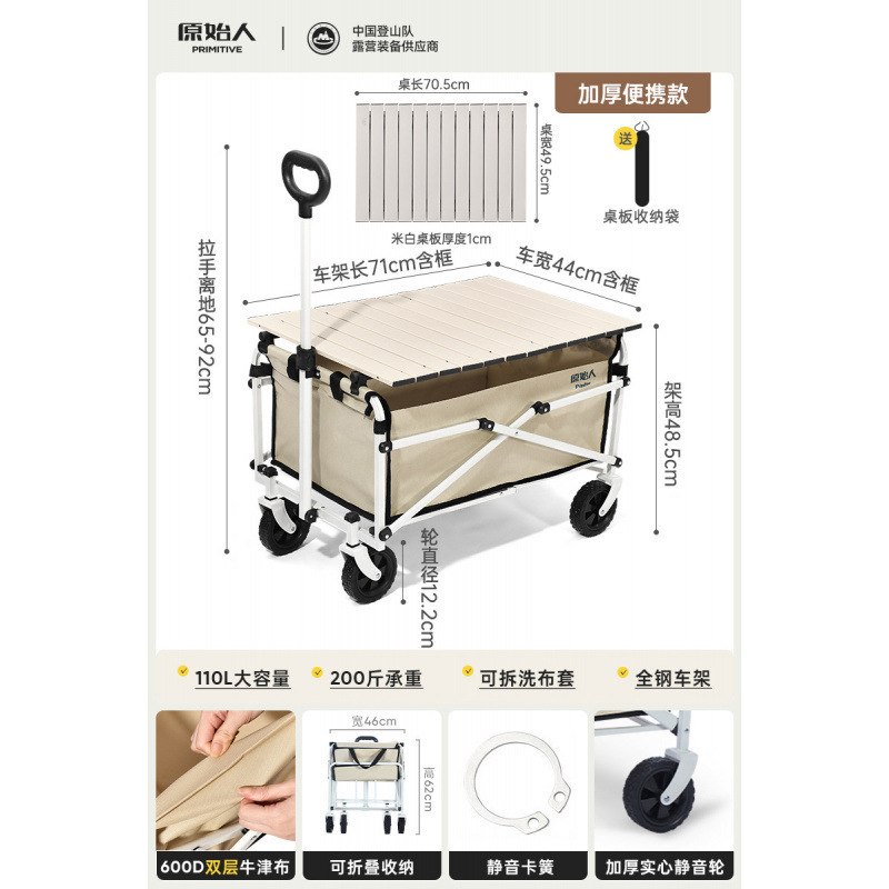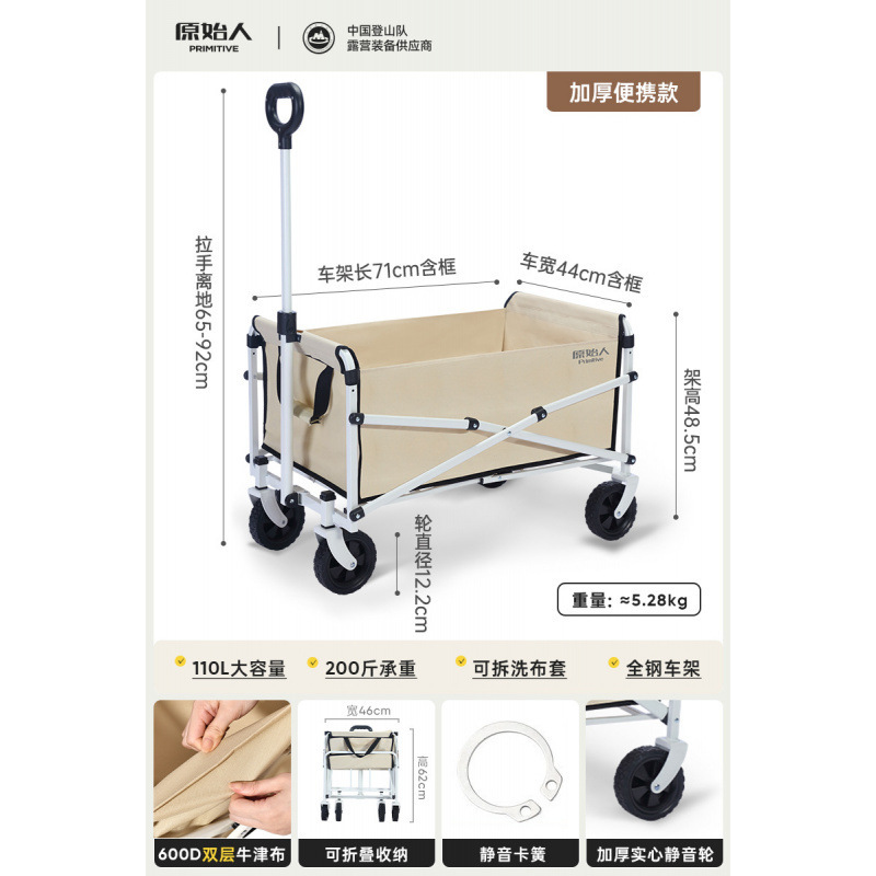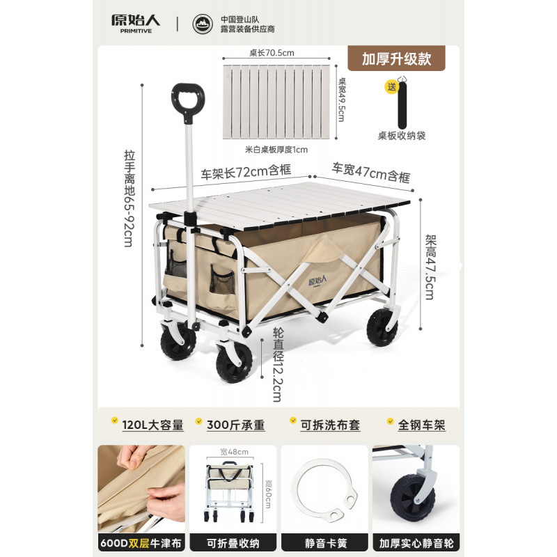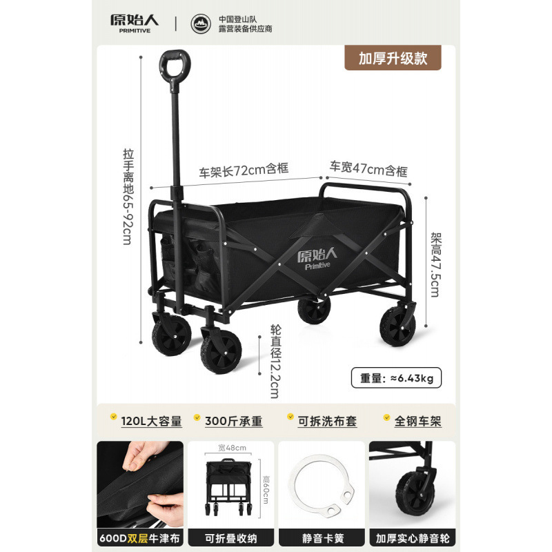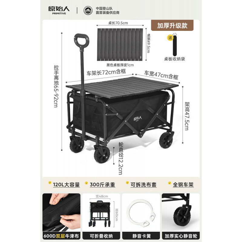 원시인 캠핑 카트 야외 캠프 캠핑 핸드 푸시 접이식 피크닉 카트 소형 트레일러 트레일러 캠핑 카트스토어 가기