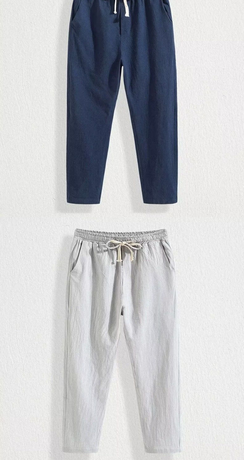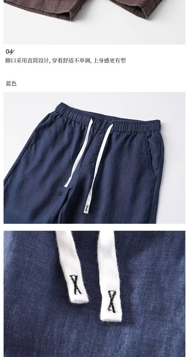 여름 남성 여름 린넨 9부 팬츠 남성 루즈 스트레이트 캐주얼 팬츠 9부 면 린넨 팬츠 아이스 실크 트렌디 팬츠스토어 가기