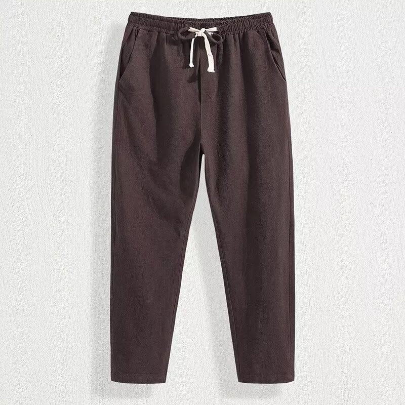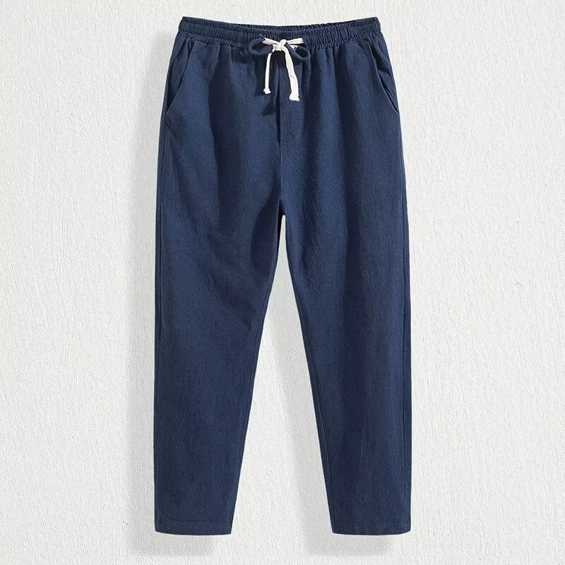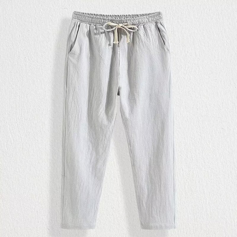 여름 남성 여름 린넨 9부 팬츠 남성 루즈 스트레이트 캐주얼 팬츠 9부 면 린넨 팬츠 아이스 실크 트렌디 팬츠