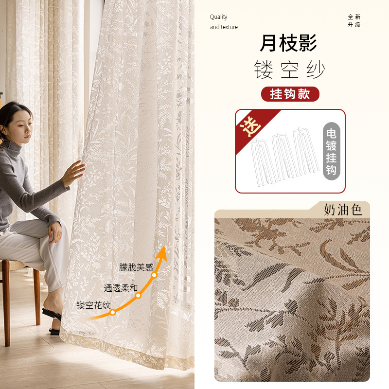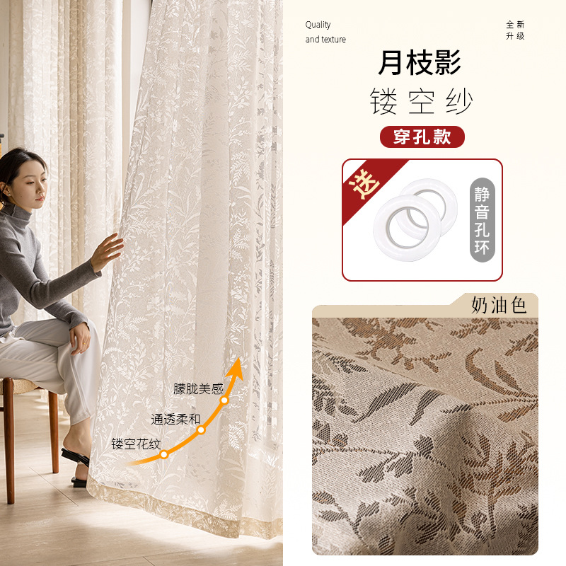 프렌치 문지 그림자 커튼, 자외선 차단제, 중공 거울 베일 커튼, 침실, 고급, 반투명, 불침투성, 거실, 몽환적스토어 가기