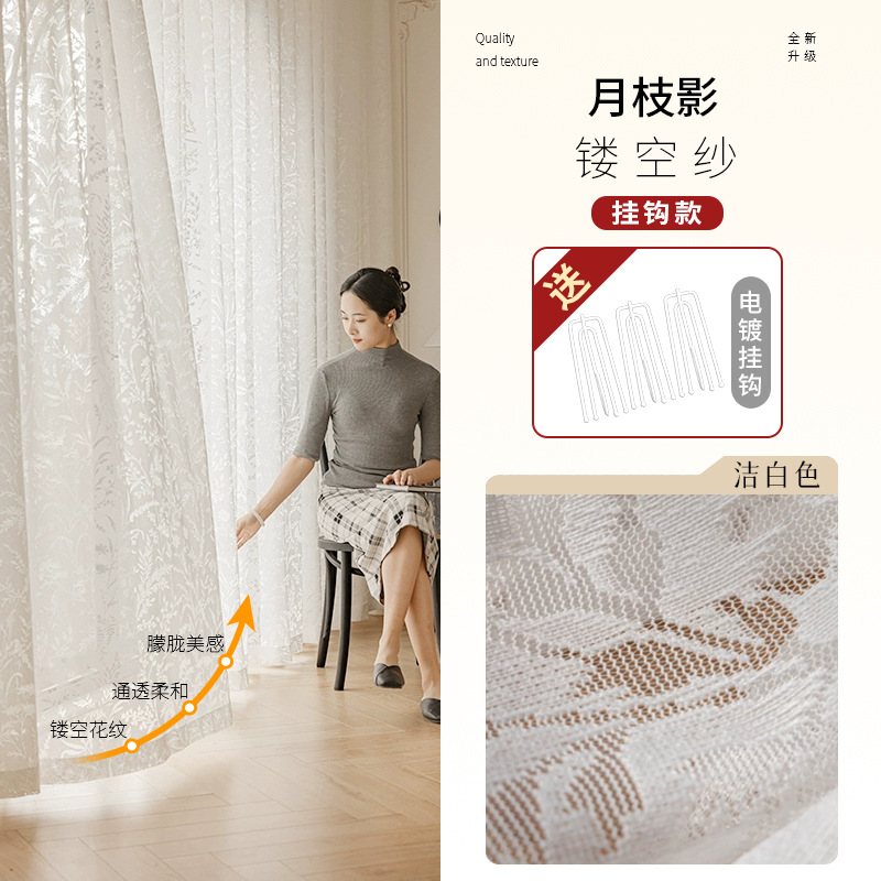 프렌치 문지 그림자 커튼, 자외선 차단제, 중공 거울 베일 커튼, 침실, 고급, 반투명, 불침투성, 거실, 몽환적