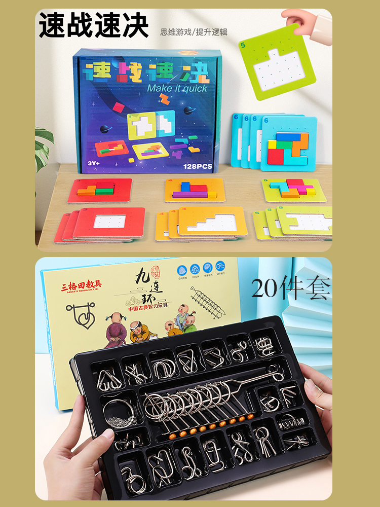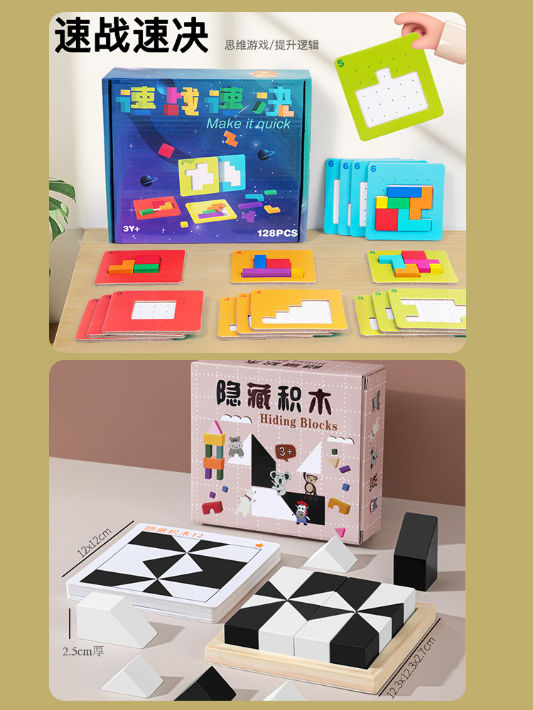 빠른 승리 퍼즐 부모-자식 2인 집중력 전투 빌딩 블록 교육적 사고 훈련 6-8-10세 장난감스토어 가기
