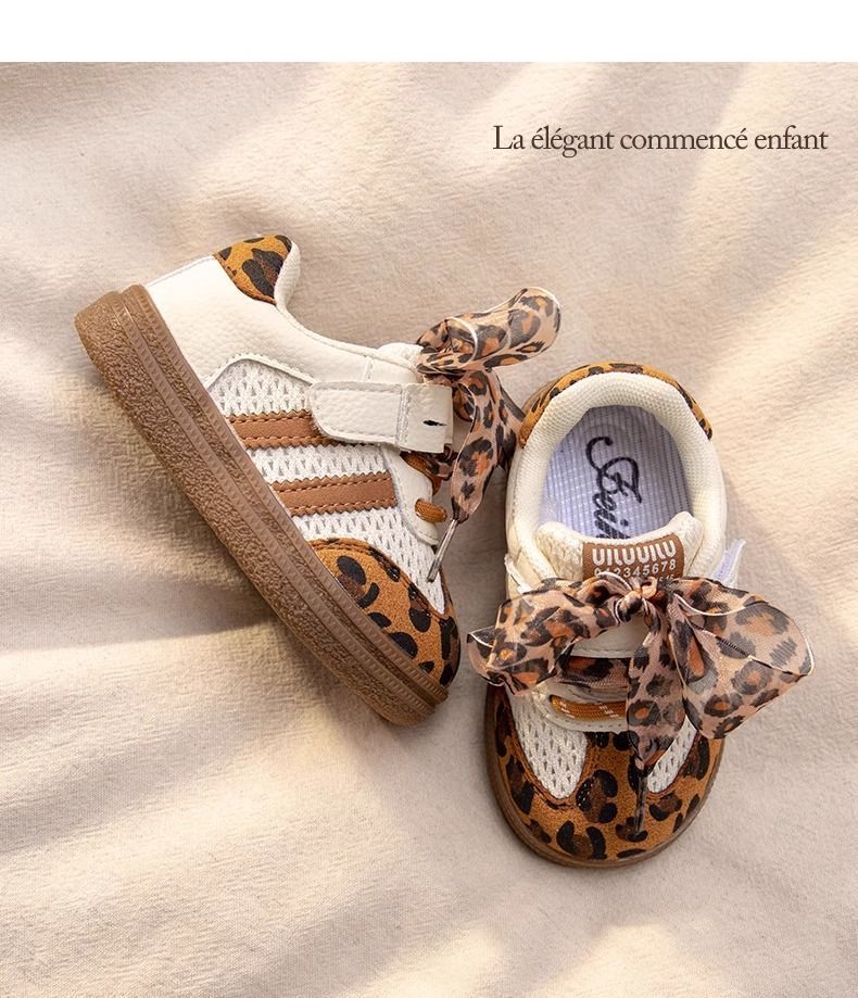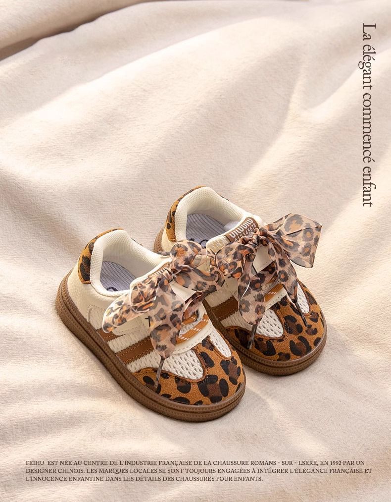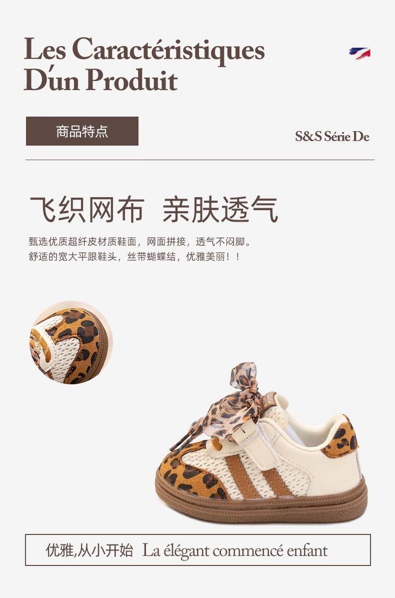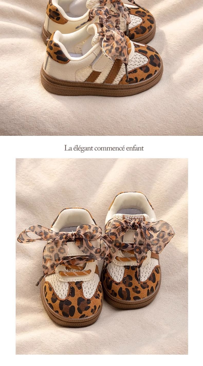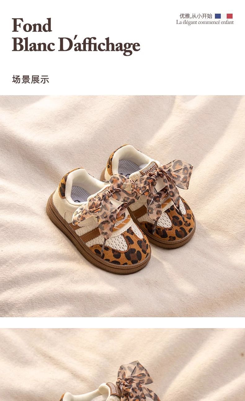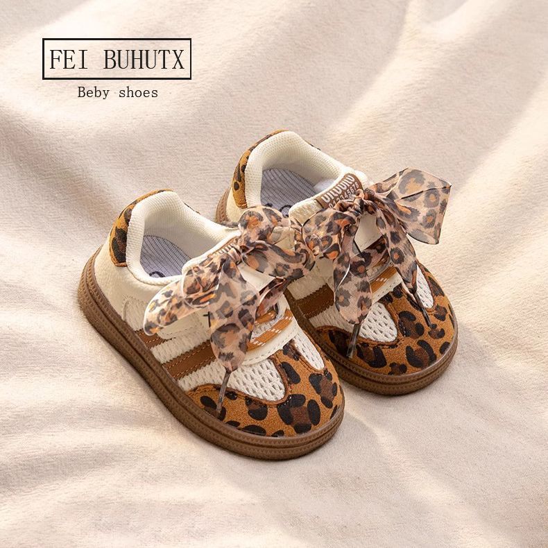 아기 소녀 신발, 부드러운 밑창 어린이 운동화, 소녀 표범 무늬 캐주얼 신발, 봄과 가을 어린이 메쉬 통기성 도덕 훈련 신발