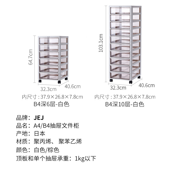 • Made in Japan - A4 깊이 3겹 흰색, 바퀴 없음, 라벨 스티커 포함