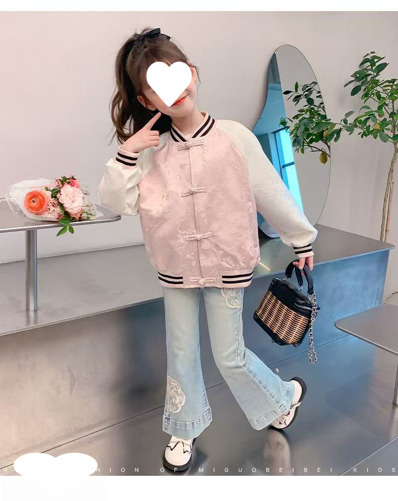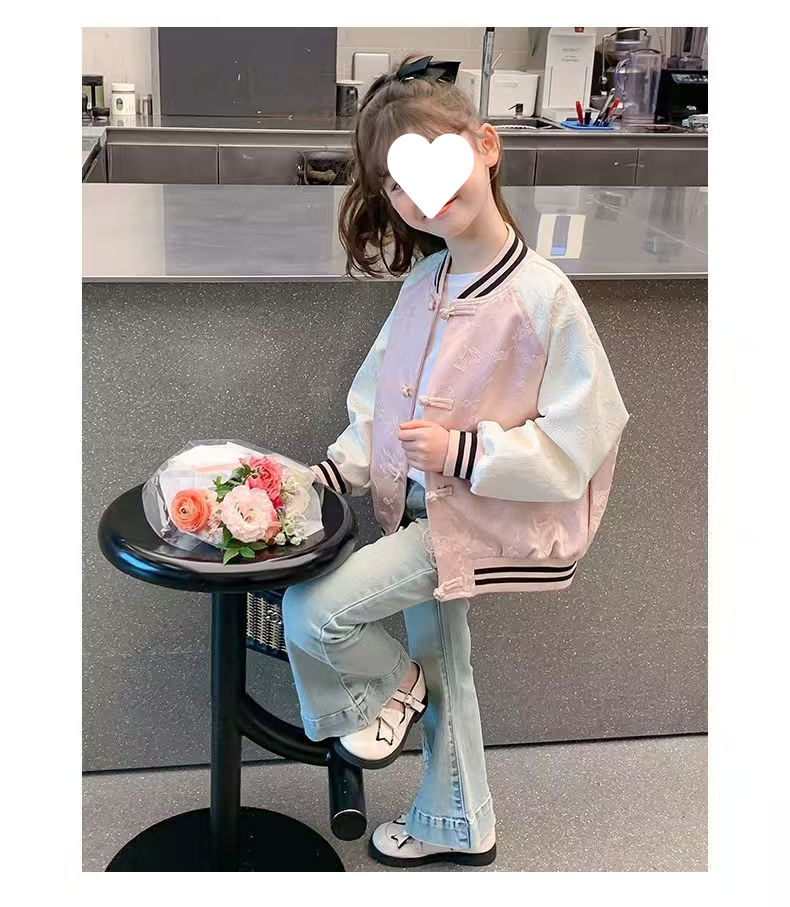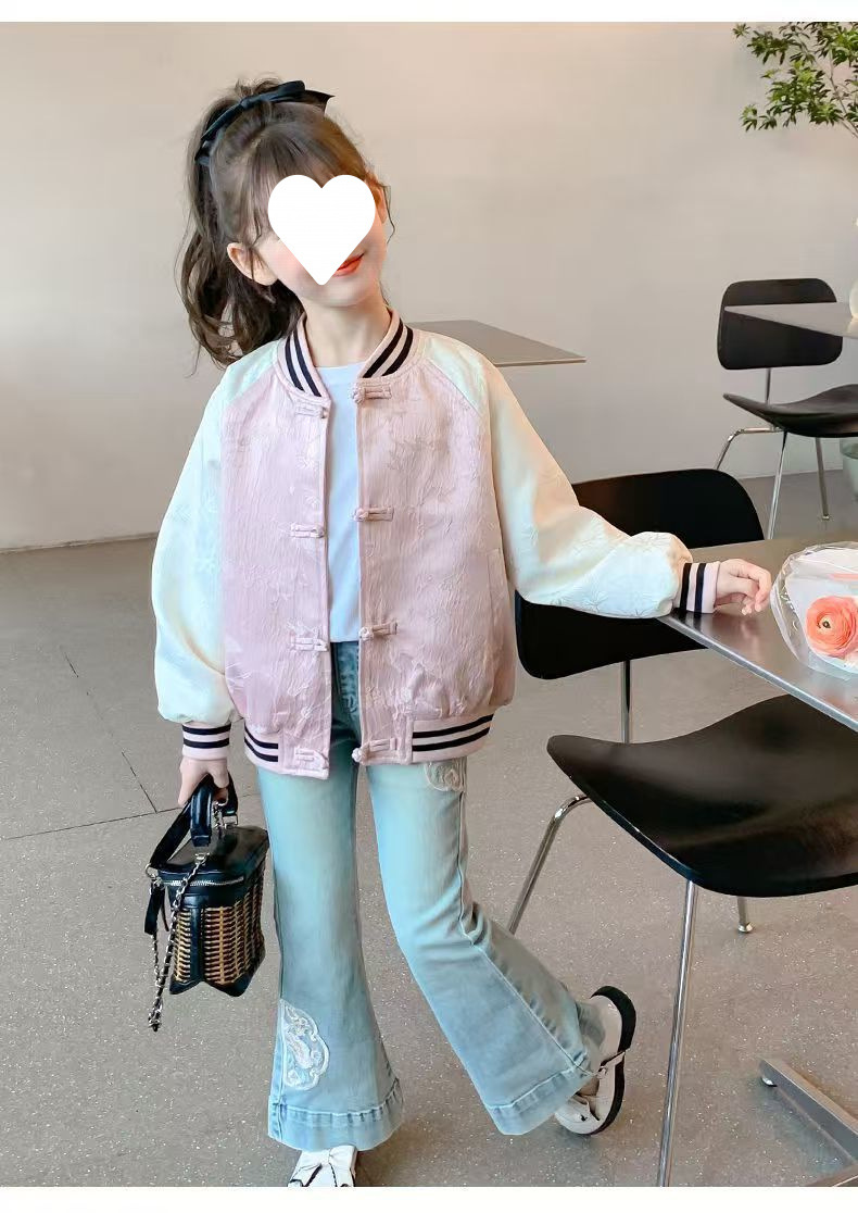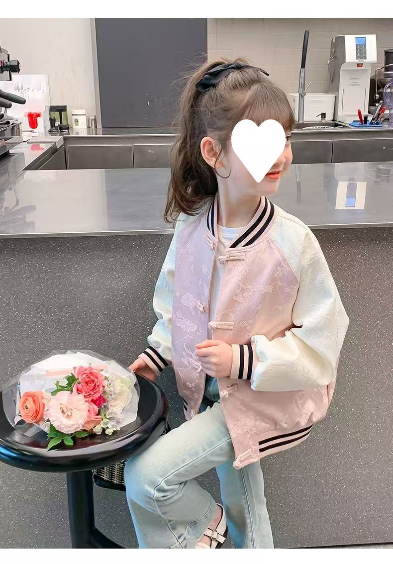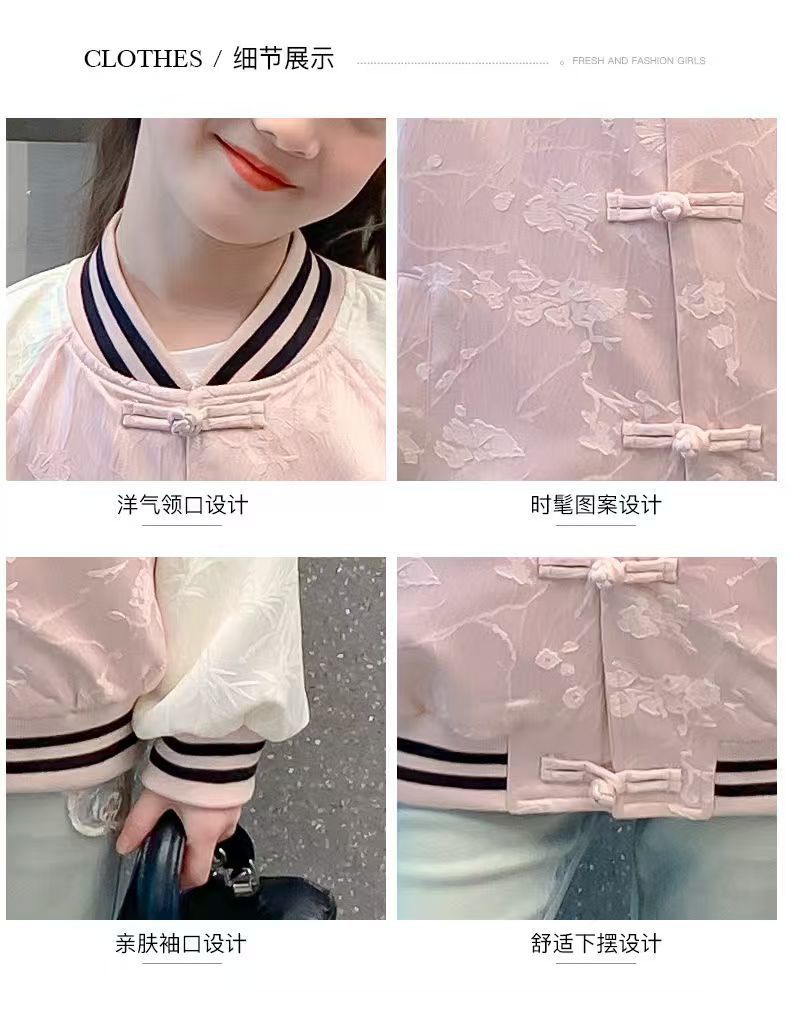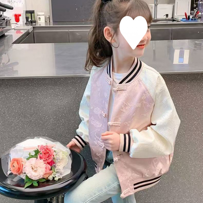 중대형 아동용 새로운 중국 스타일 봄, 가을 야구 유니폼 여아 재킷 여아 재킷 여름 얇은 봄 탑 겉옷