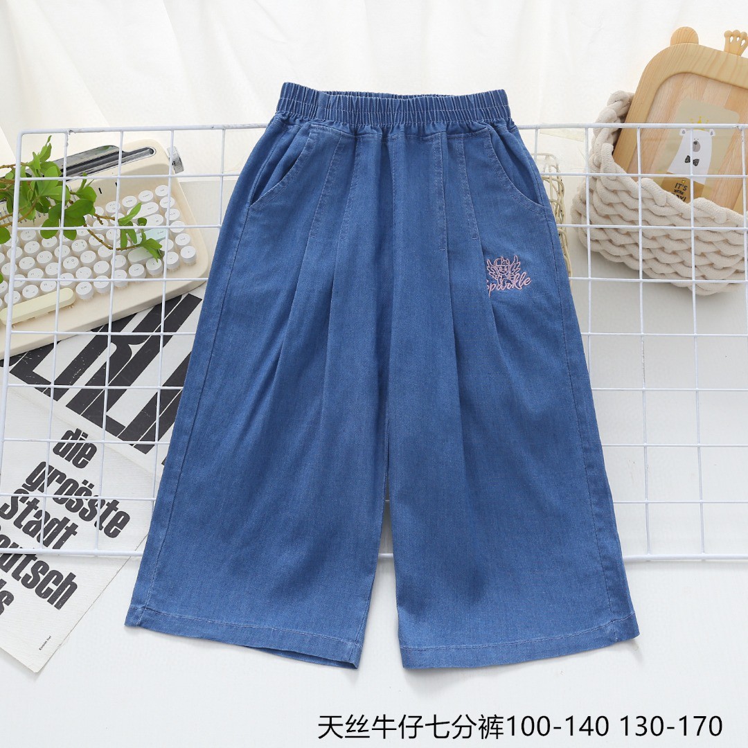 2025 신상 여름 여아 텐셀 데님 와이드 팬츠 주름 얇은 와이드 팬츠 여아 여름 크롭 팬츠스토어 가기