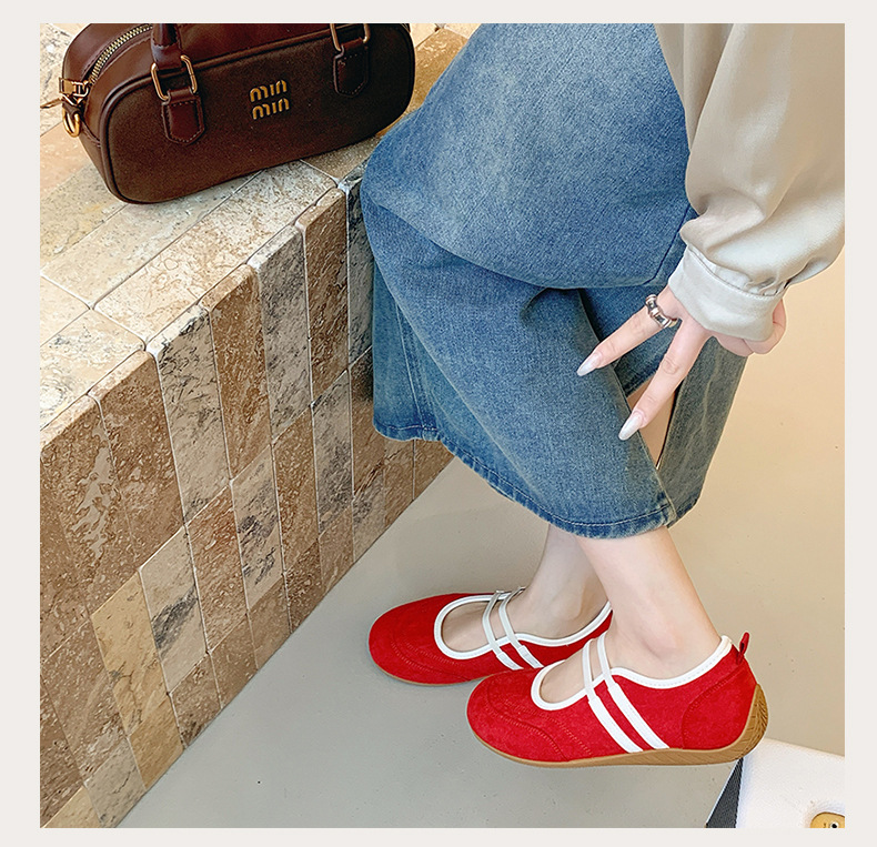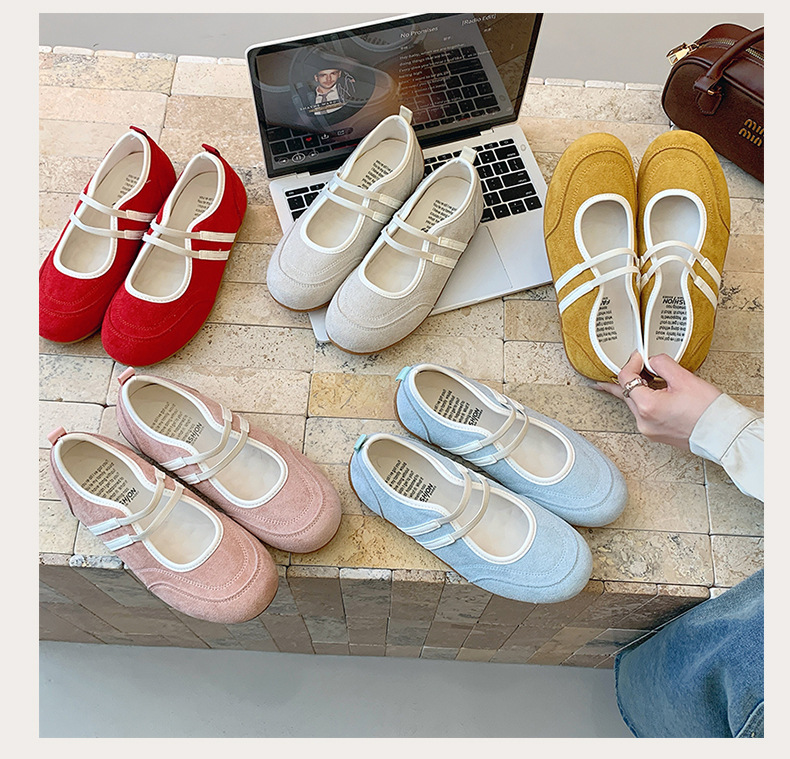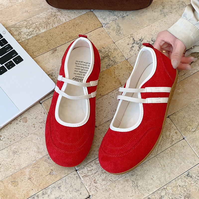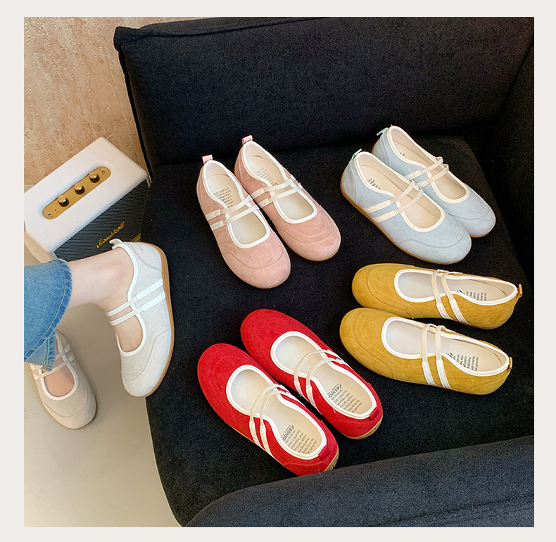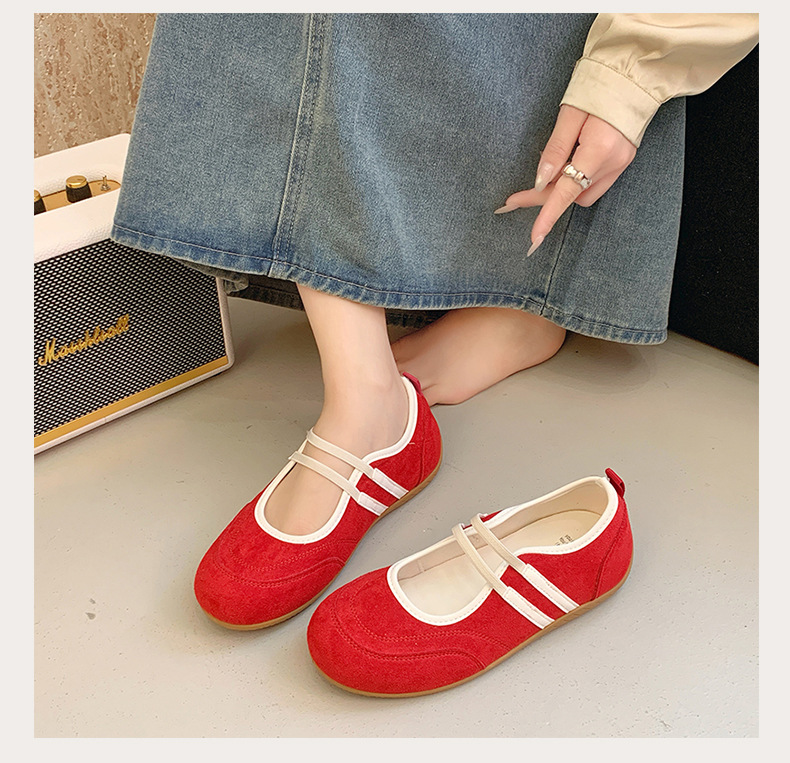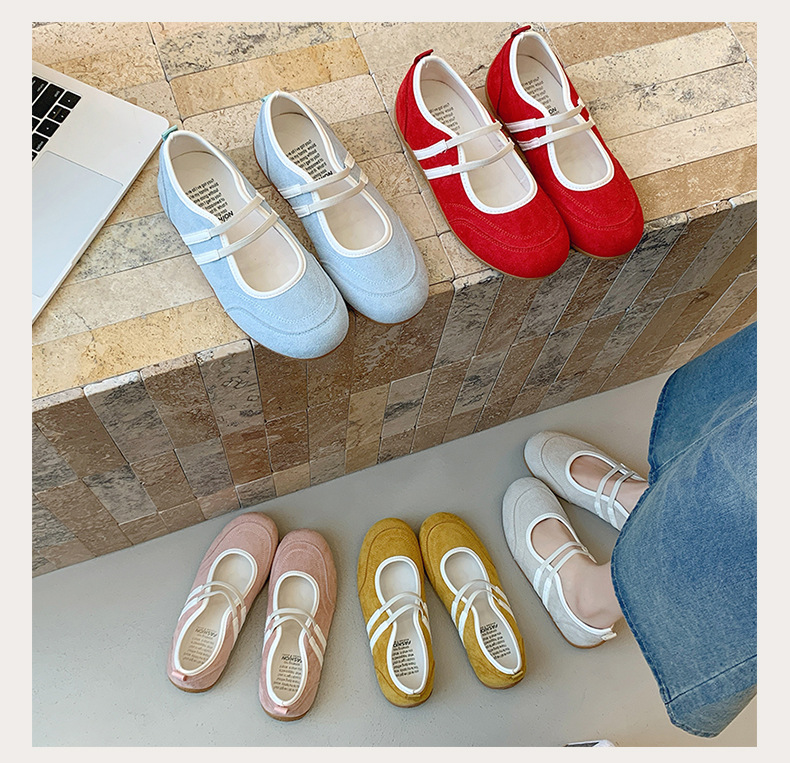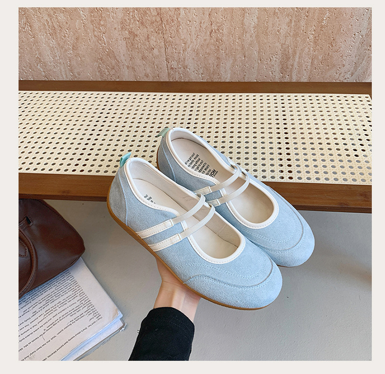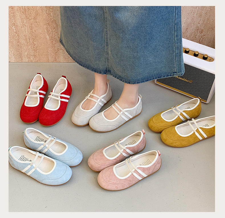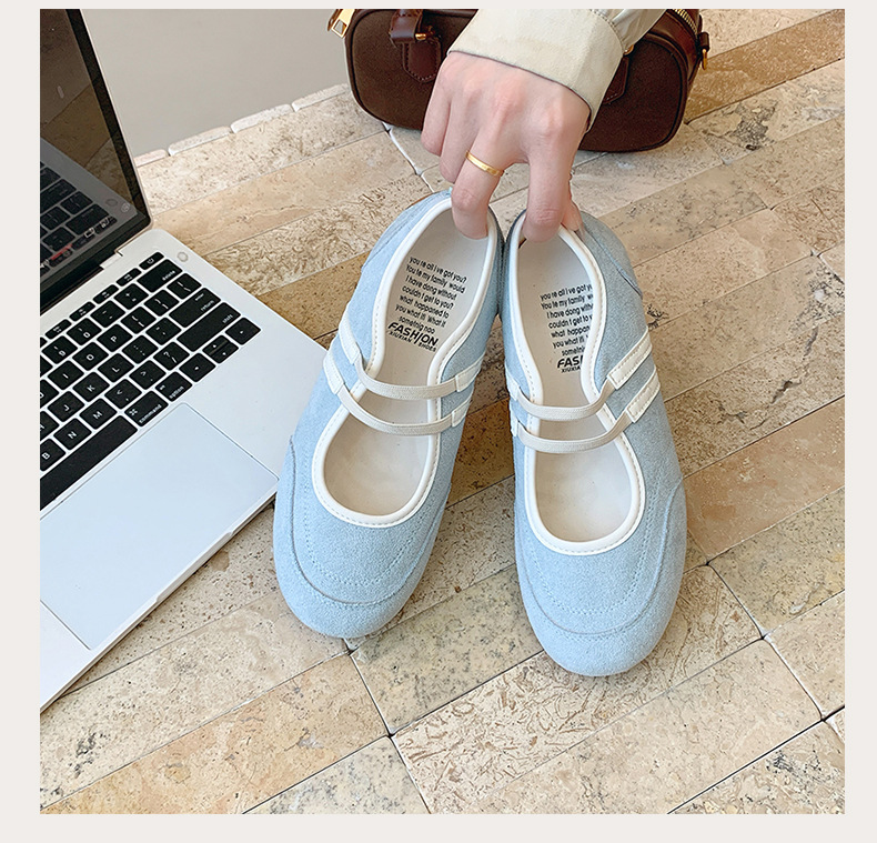 2025년 신상 한국식 귀여운 복고 컬러 블록 더블 스트랩 다용도 캐주얼 메리제인 슈즈 플랫 펌프스 슈즈스토어 가기