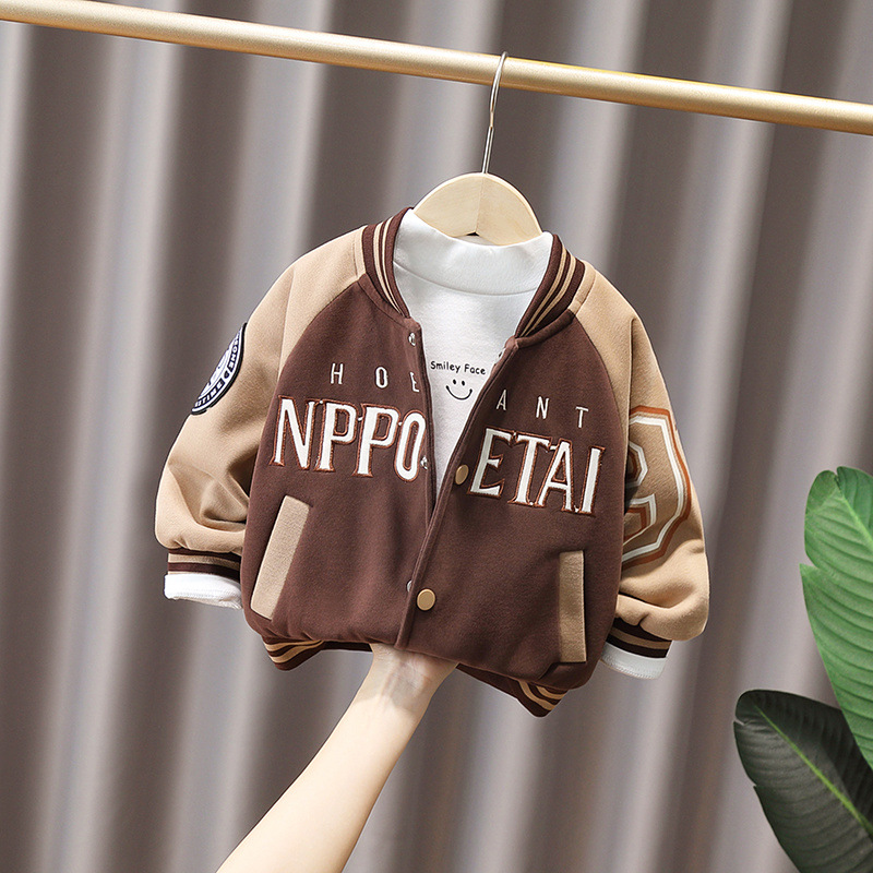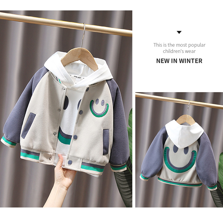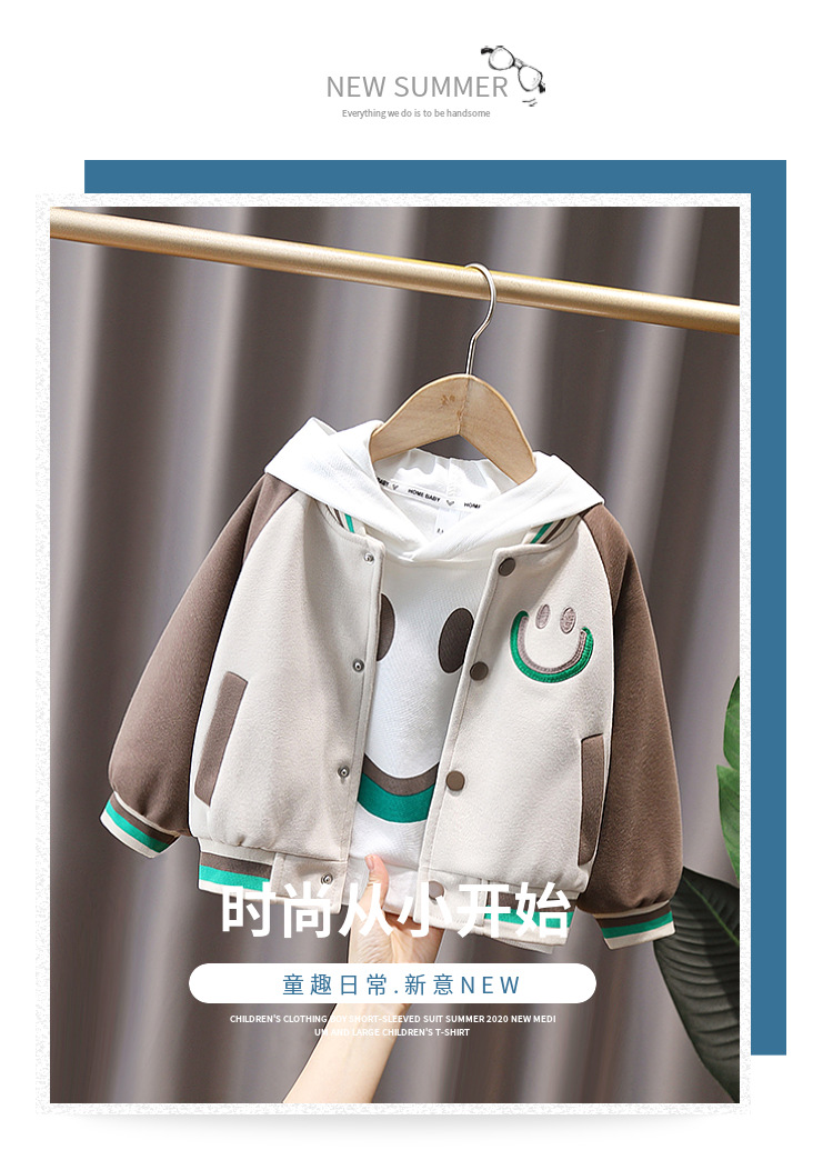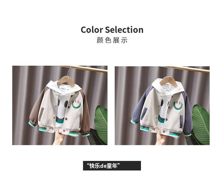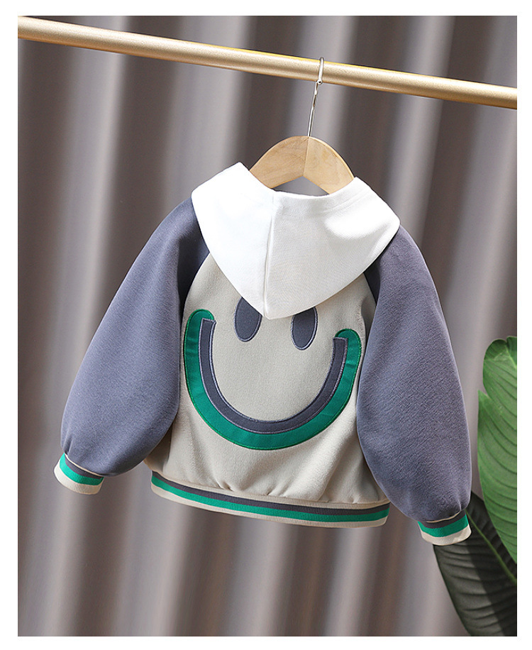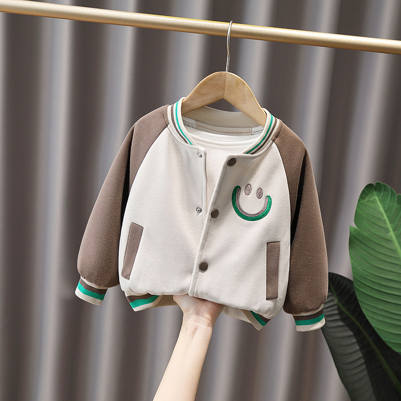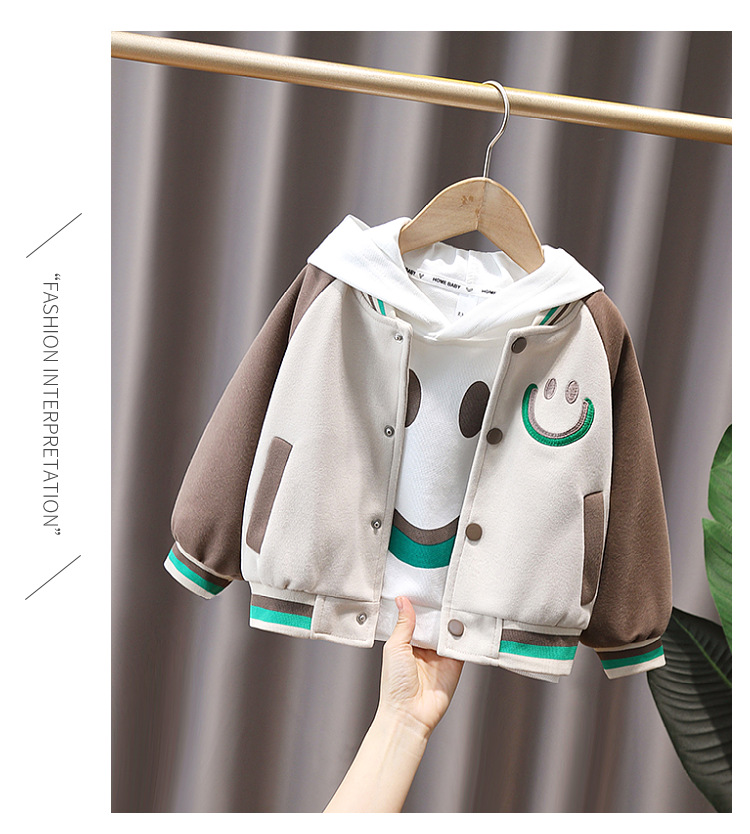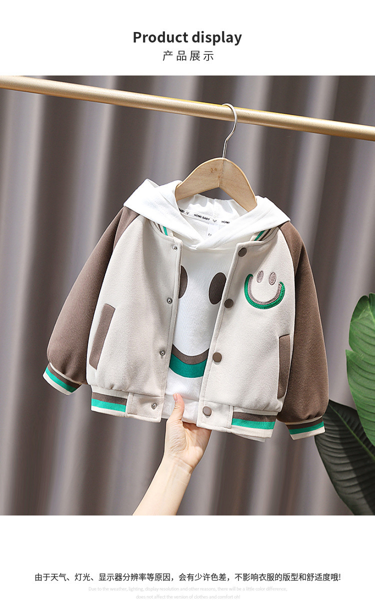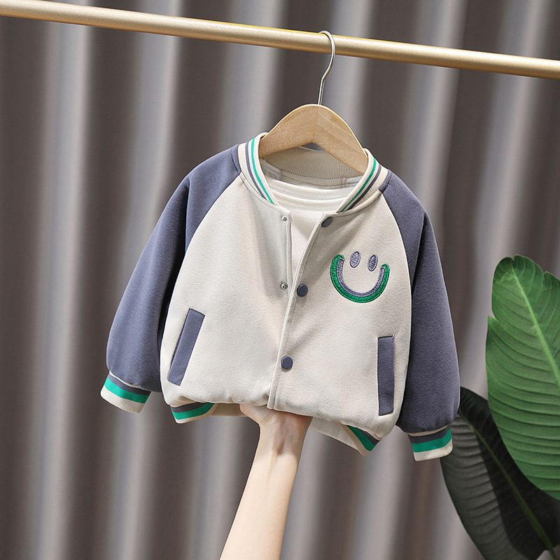 소년 봄, 가을 야구 재킷 2025 새로운 한국어 버전 어린이 아기 스타일 자수 웃는 얼굴 재킷 탑스토어 가기
