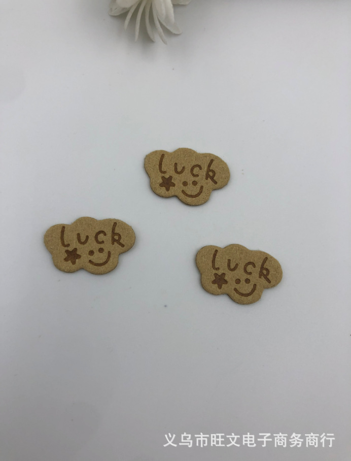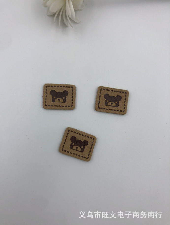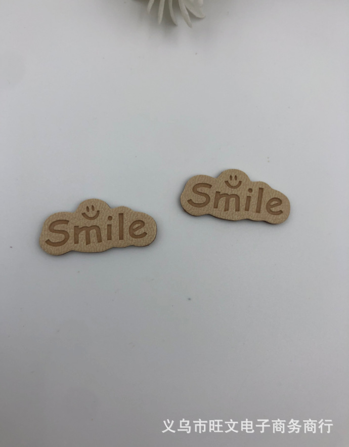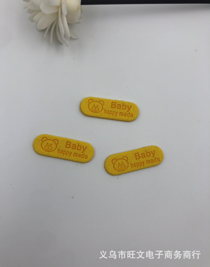 공장 직접 판매 만화 미소 마이크로 화이버 상표 귀여운 어린이 모자 헤어 액세서리 머리핀 모자 장갑 가죽 라벨 마이크로 화이버