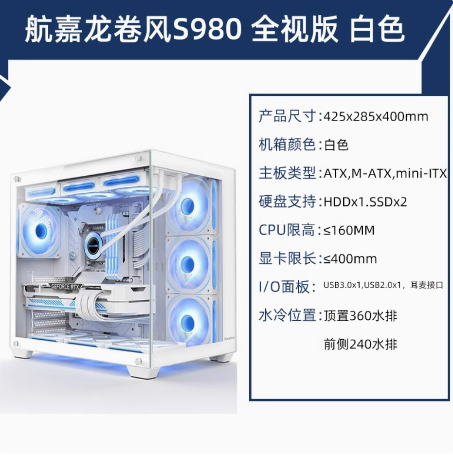 Hang/Jia Long Tornado S980 풀 뷰 버전 바다 전망 룸 ATX 게임 케이스 화이트스토어 가기