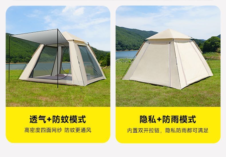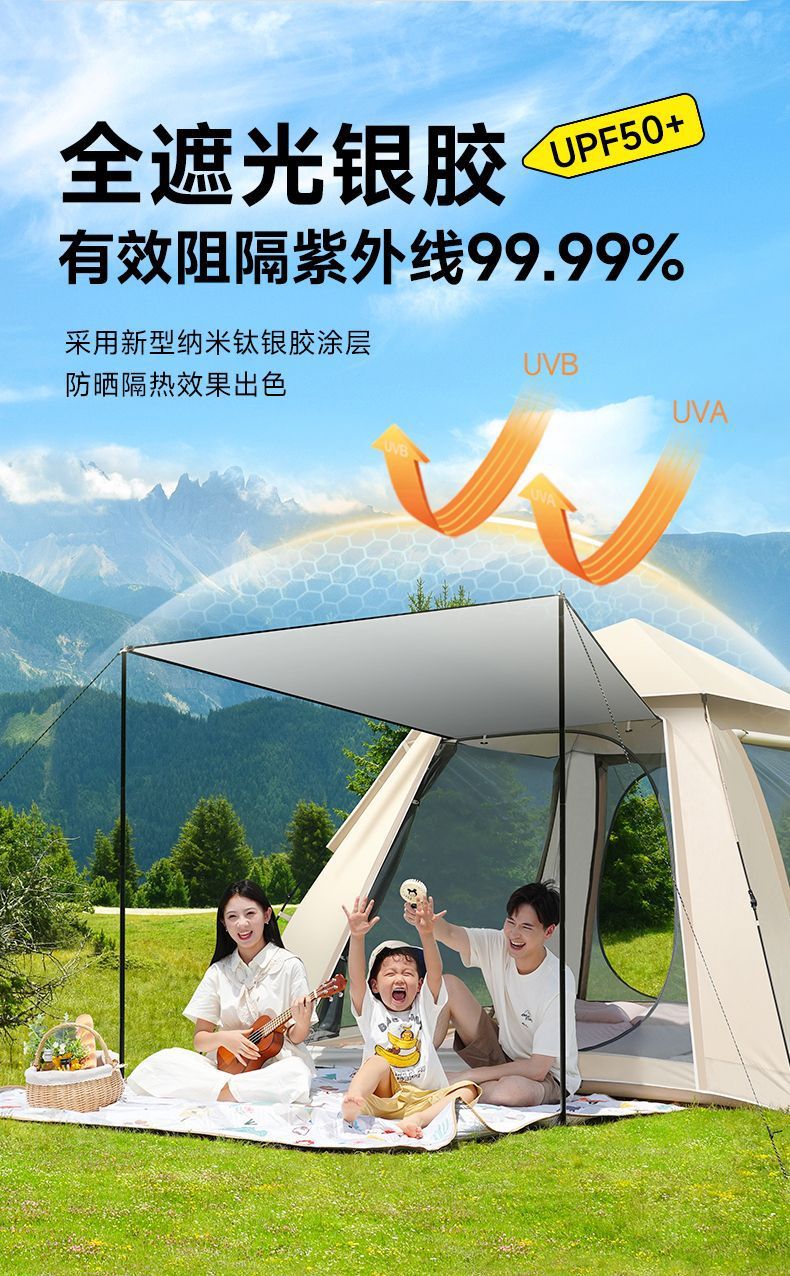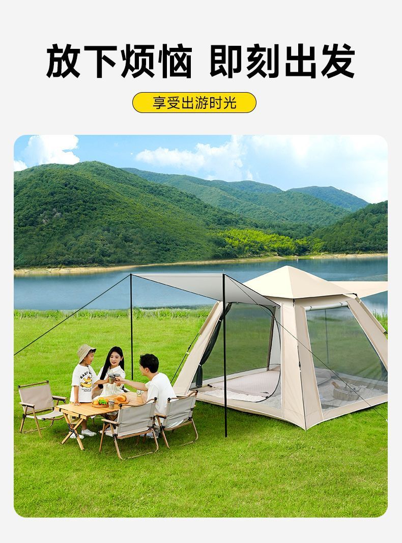 Yuyangshujia 야외 텐트 캠핑 장비 가족 버전은 1초 만에 빠르게 열리며 설치가 필요 없으며 편리한 피크닉 및 밤새도록 비로부터 보호됩니다.