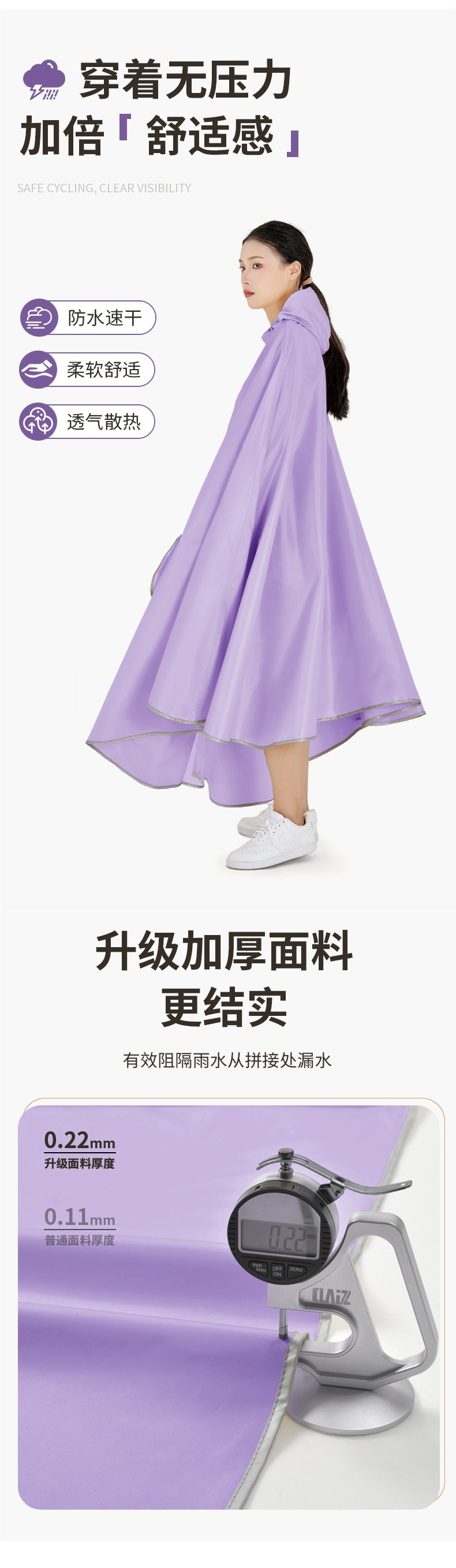 여성용 전기 자동차용 비옷, 새로운 스타일, 전신 긴 스타일, 방수, 더블 오토바이 배터리 자동차 비옷스토어 가기