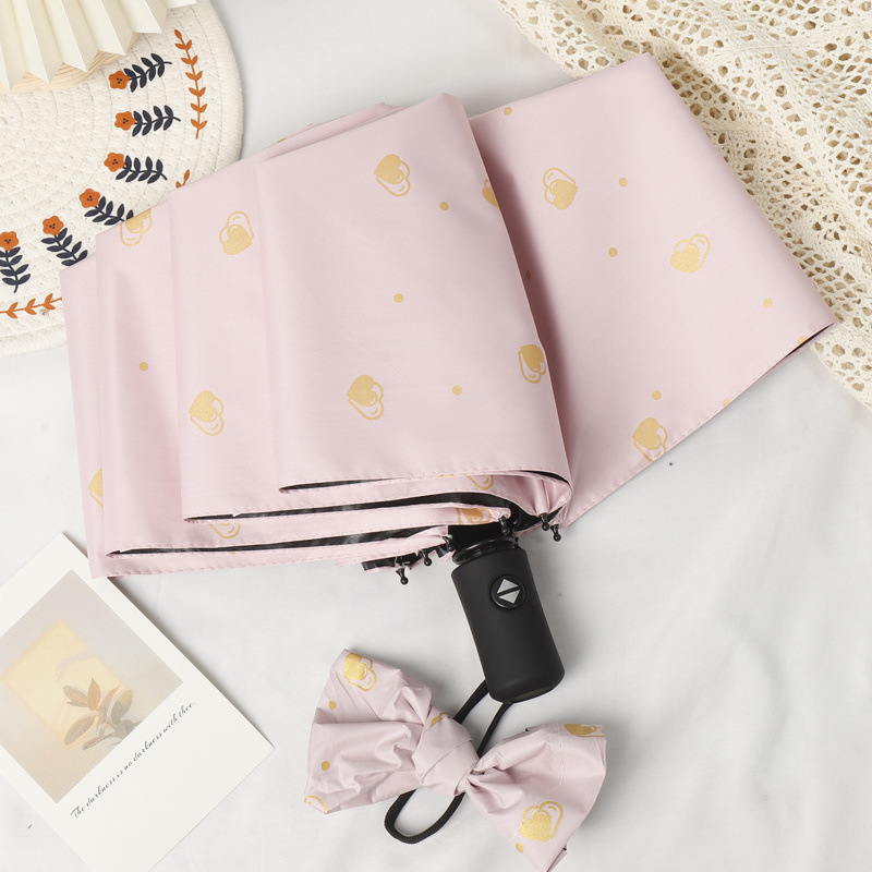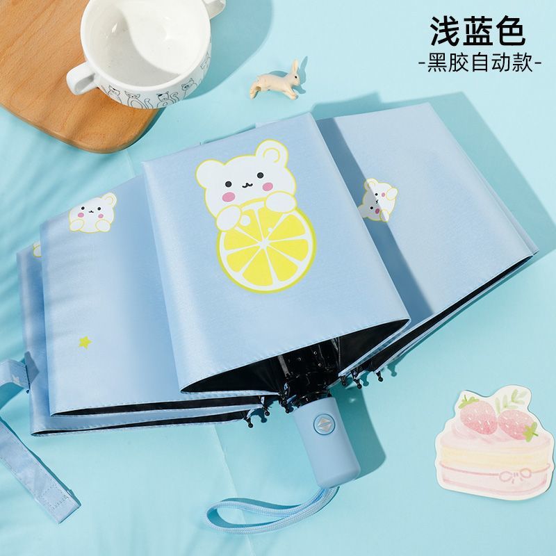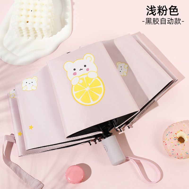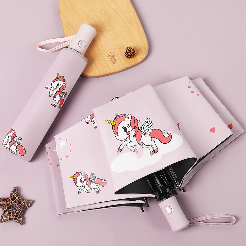 어린이 자동 접는 우산, 여자 경량 초등학생 학교 자외선 차단제 두꺼운 파라솔, 비가 오나 눈이 오나