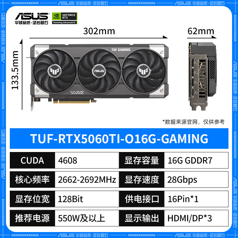 ASUS 데스크탑 컴퓨터 디저트 등급 게임용 그래픽 카드 TUF-RTX5060TI-O16G에 적합스토어 가기