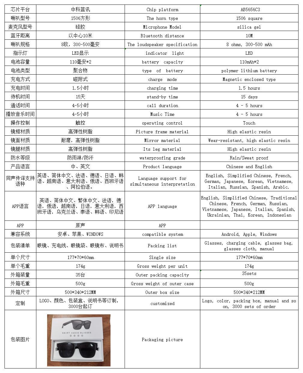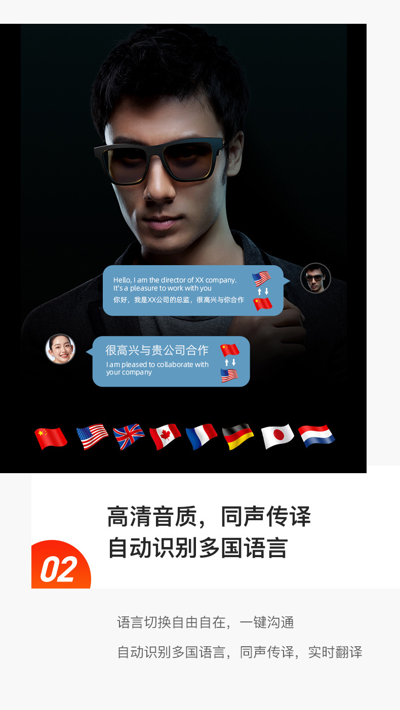 국경 간 새로운 E10pro 스마트 오디오 안경 AI 번역 Bluetooth 통화 및 음악 듣기 야외 운전 및 사이클링 장비스토어 가기