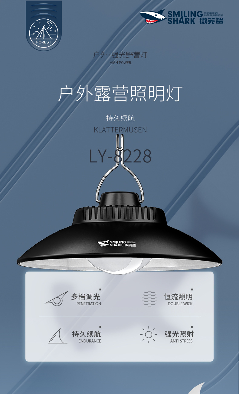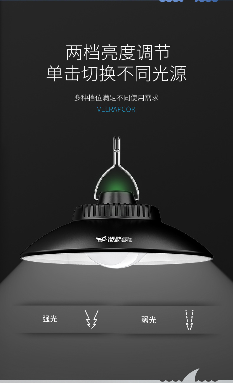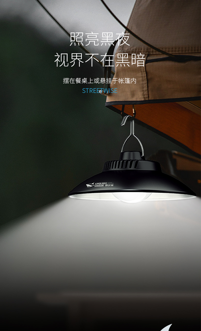 스마일 샤크 야외 조명 샹들리에 캠핑 램프 충전식 비상 조명 분위기 램프 야시장 스톨 램프 오래 지속되는 배터리 수명