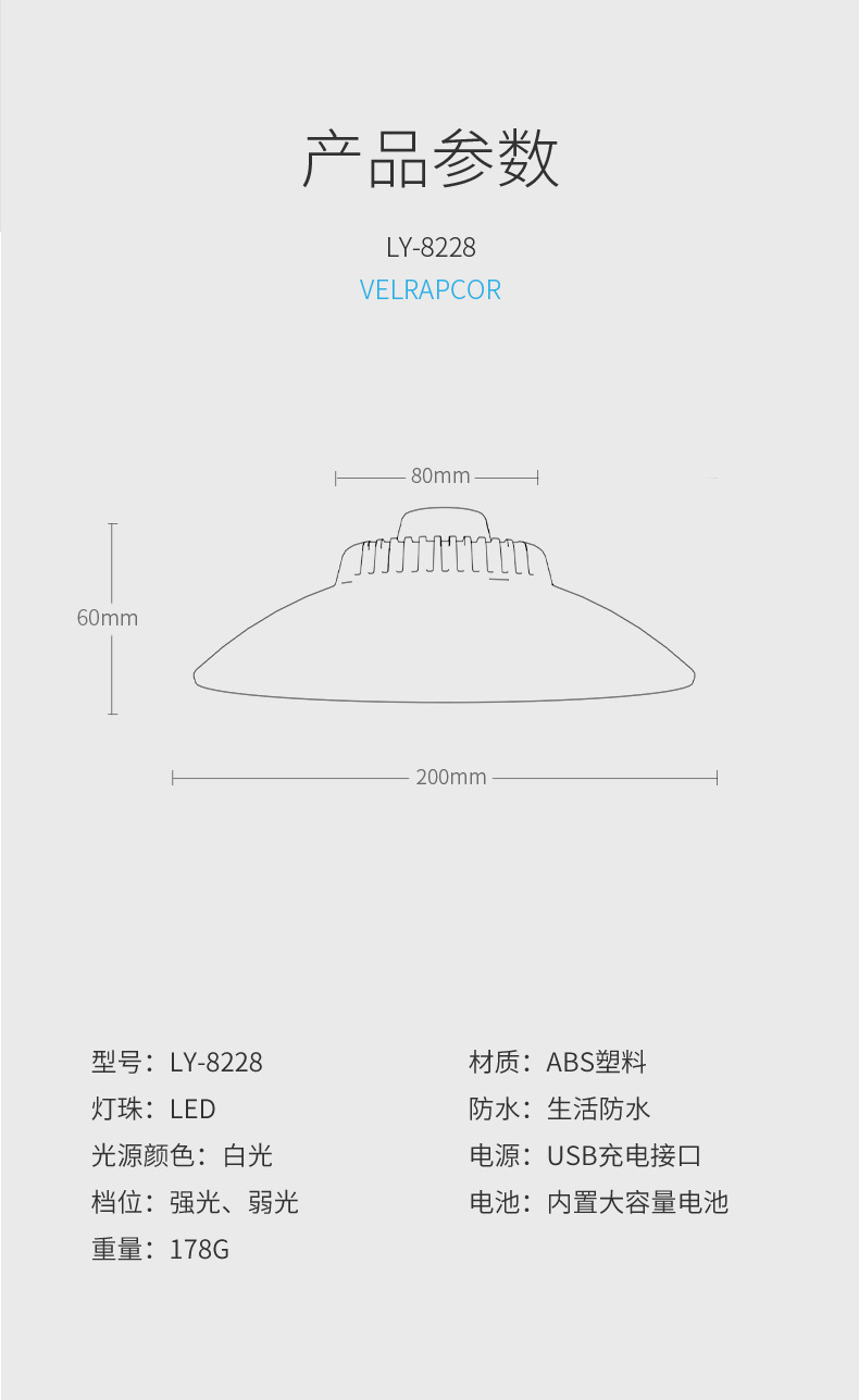 • LY-8228A 블랙 [따뜻한 빛/1200MAH/2단계 조명]