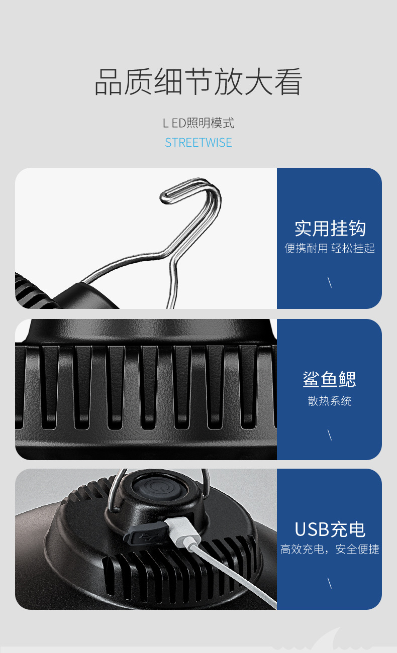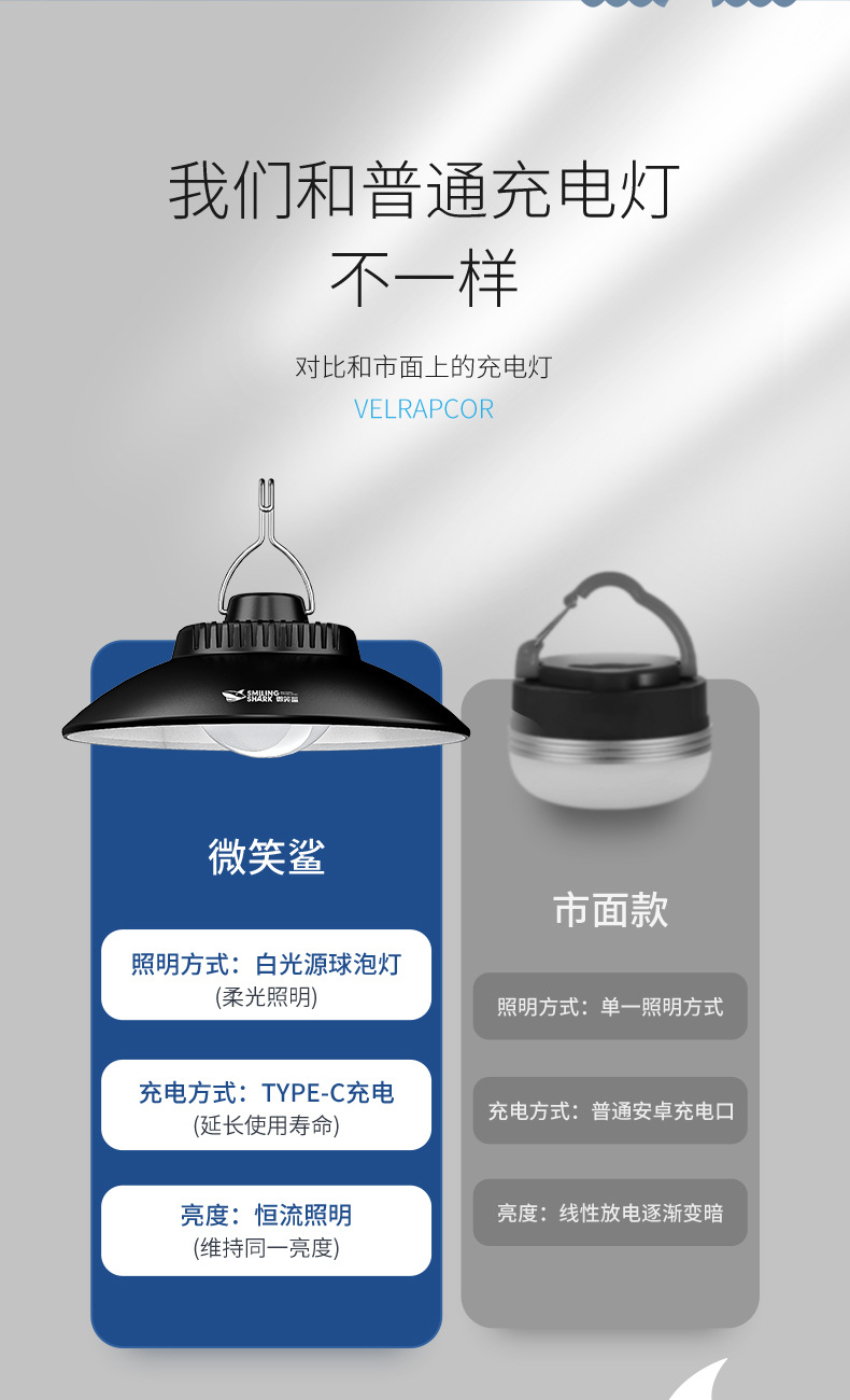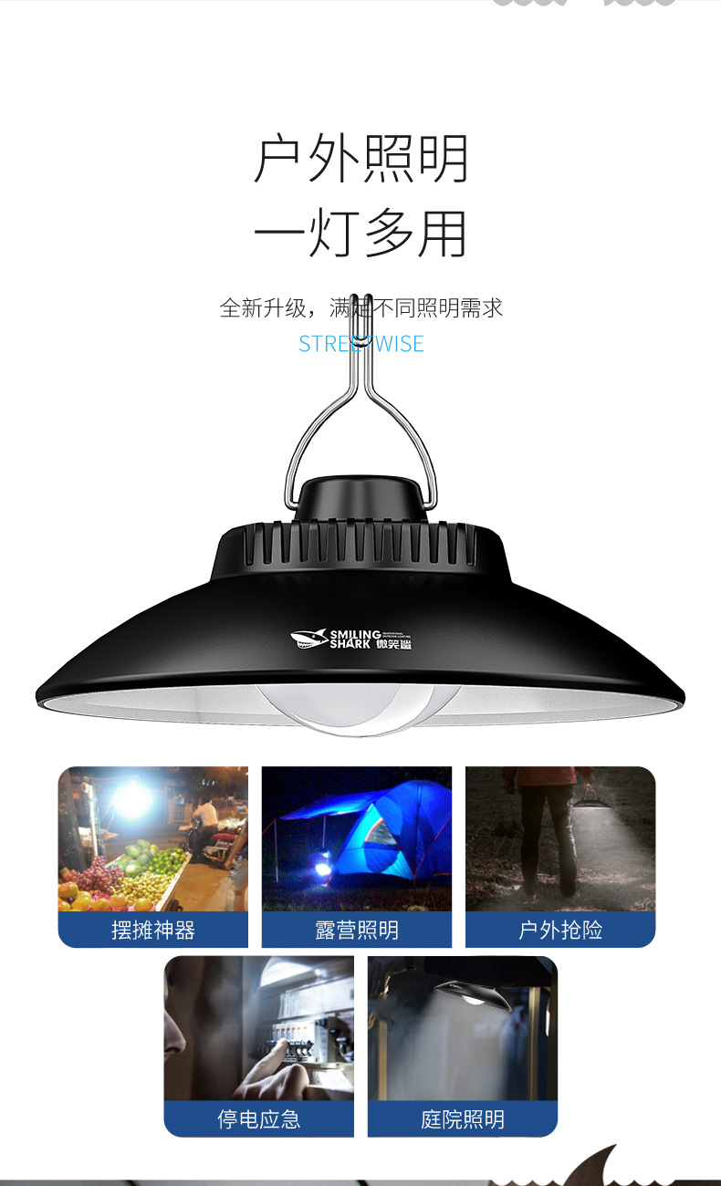 스마일 샤크 야외 조명 샹들리에 캠핑 램프 충전식 비상 조명 분위기 램프 야시장 스톨 램프 오래 지속되는 배터리 수명스토어 가기