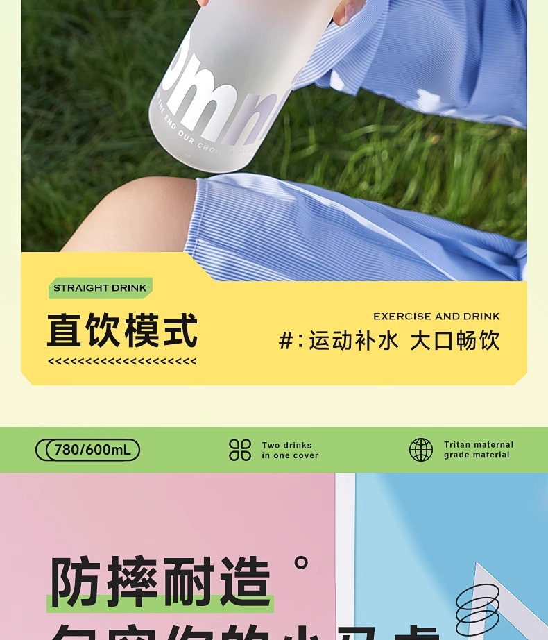 여성용 물컵 새로운 스타일 2025 고급스러운 여름 스포츠 물병 학생 어린이 컵 휴대용 내열성 PC 외출용스토어 가기