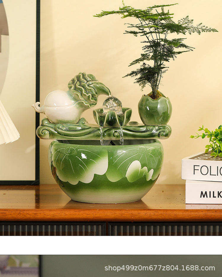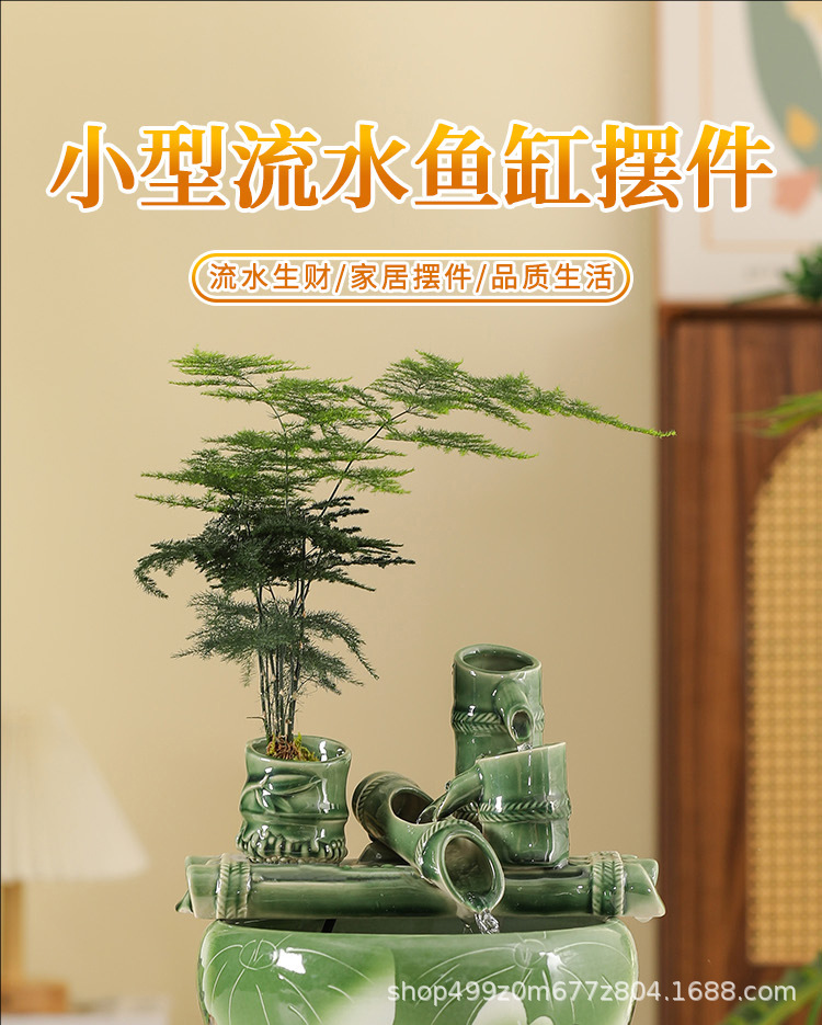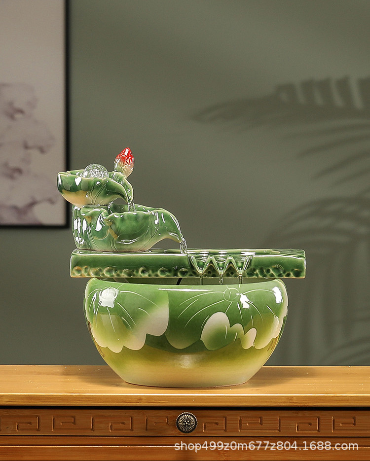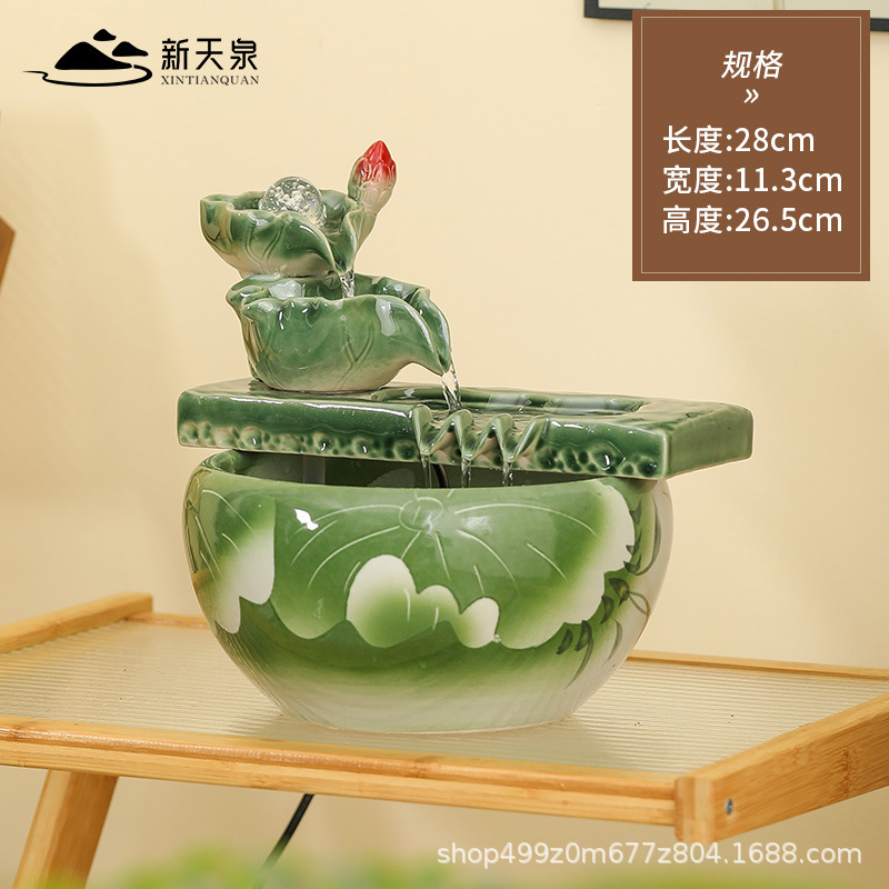 데스크탑 세라믹 흐르는 물 수조 조경 작은 가정용 순환 풍수 공 부를 끌어들이는 거실 물고기 산소 공급 물 장치스토어 가기
