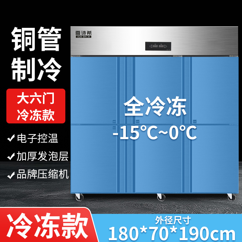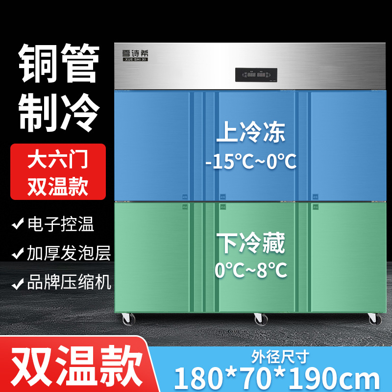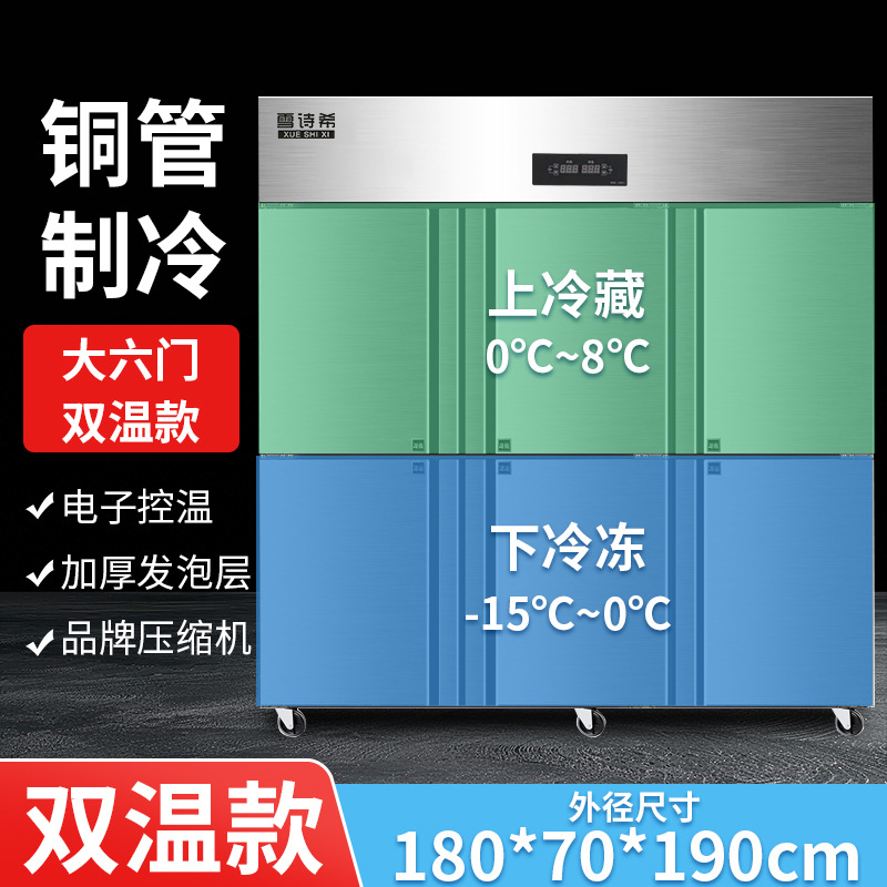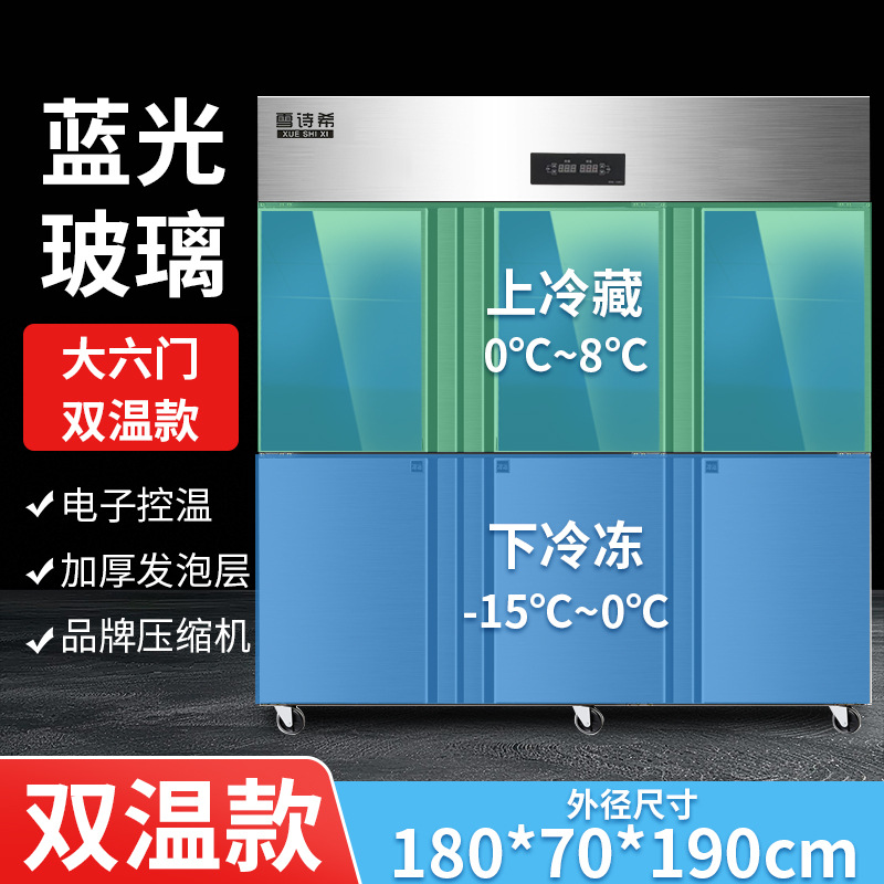 상업용 대형 6도어 완전 냉장 및 완전 냉동 이중 온도 캐비닛 냉동고 전시 호텔 냉동고 대용량 주방 특수 캐비닛