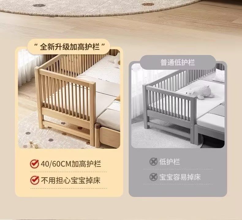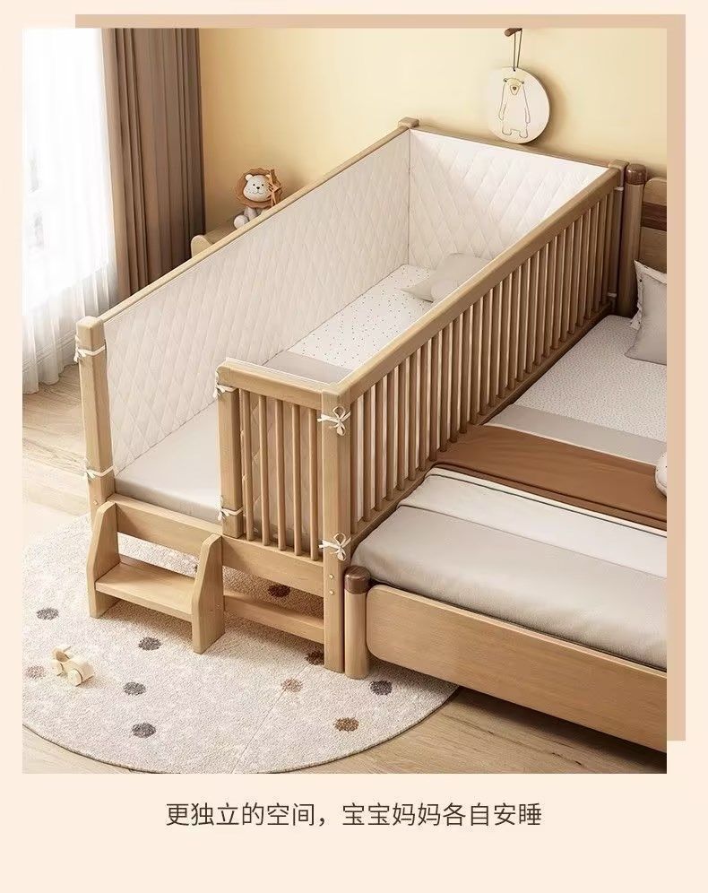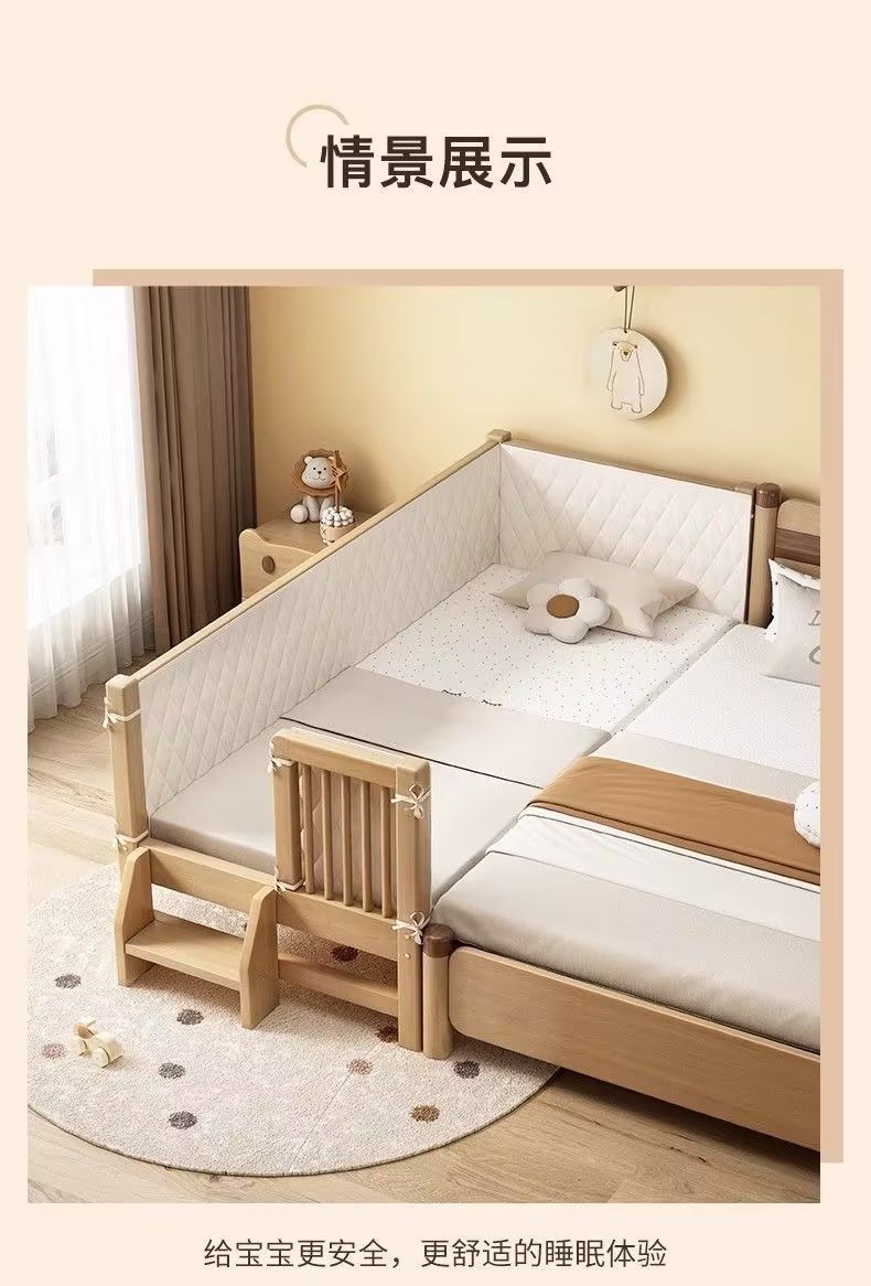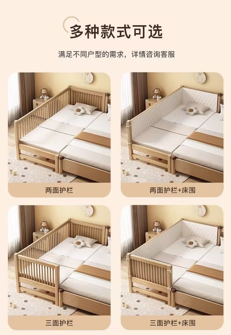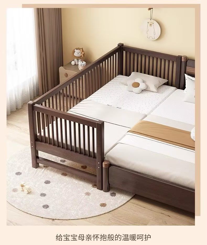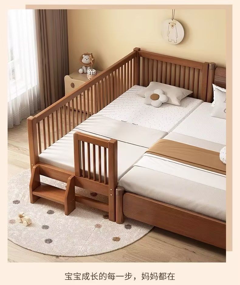원목 아기 접합 침대, 호두나무 어린이 침대, 유아용 침대, 확장 접합 대형 침대, 가드레일이 있는 어린이용 사이드 침대 공장스토어 가기