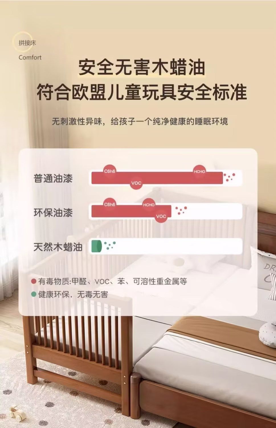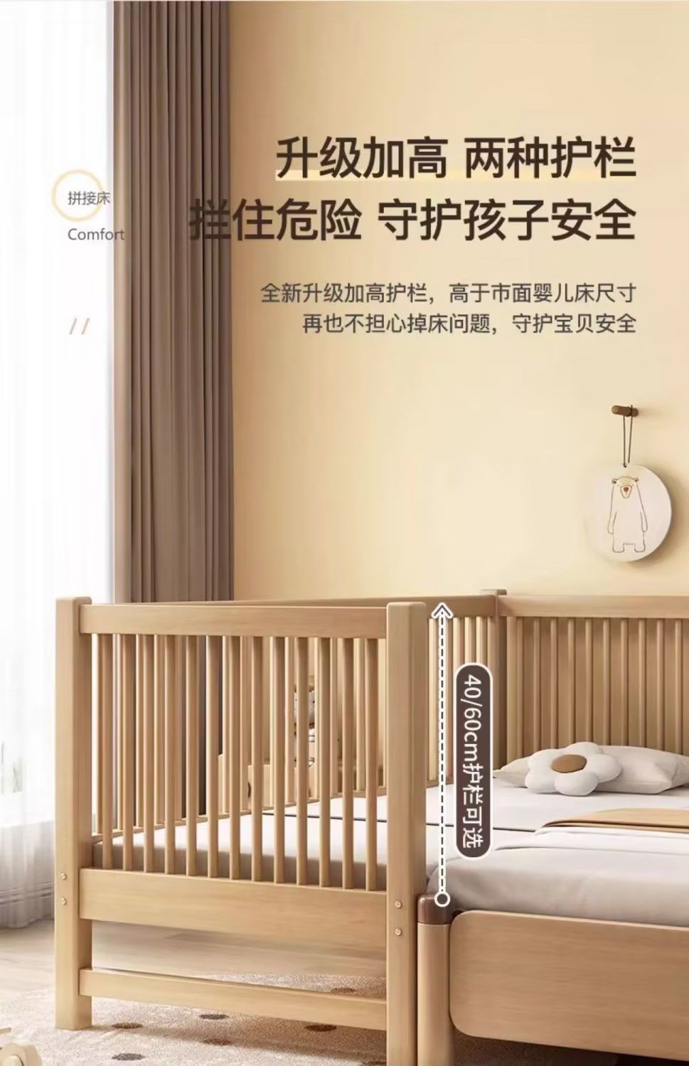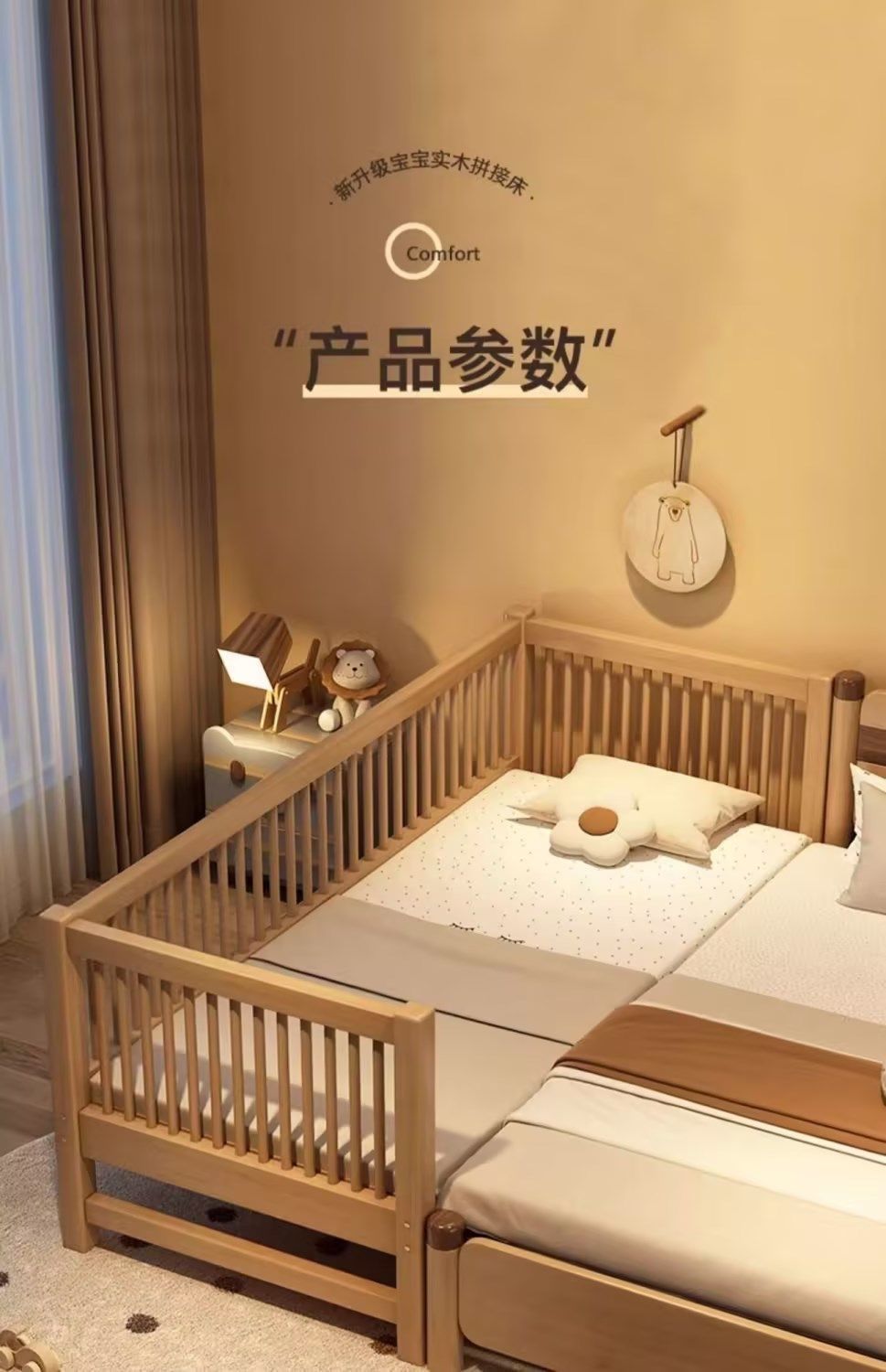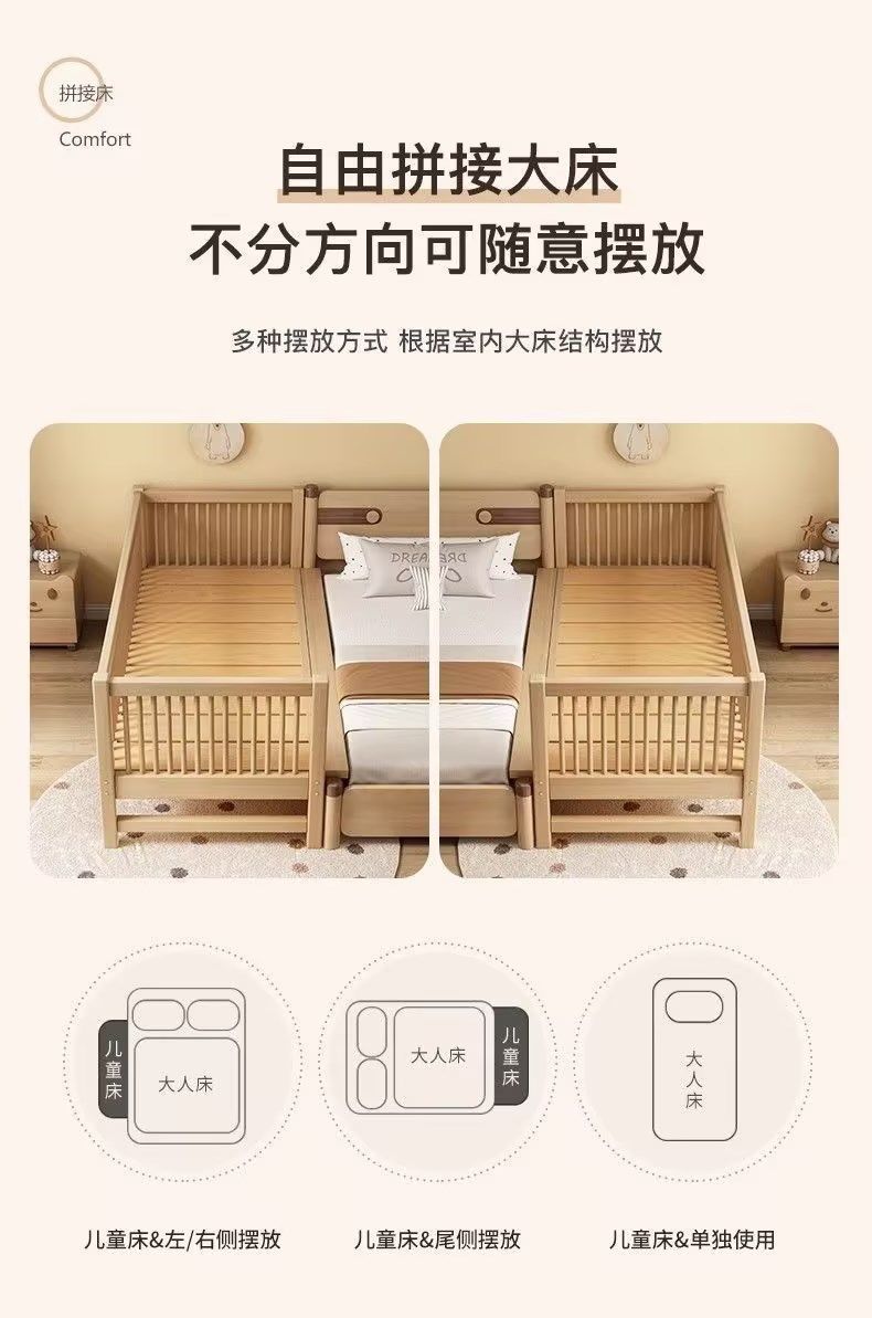 원목 아기 접합 침대, 호두나무 어린이 침대, 유아용 침대, 확장 접합 대형 침대, 가드레일이 있는 어린이용 사이드 침대 공장스토어 가기