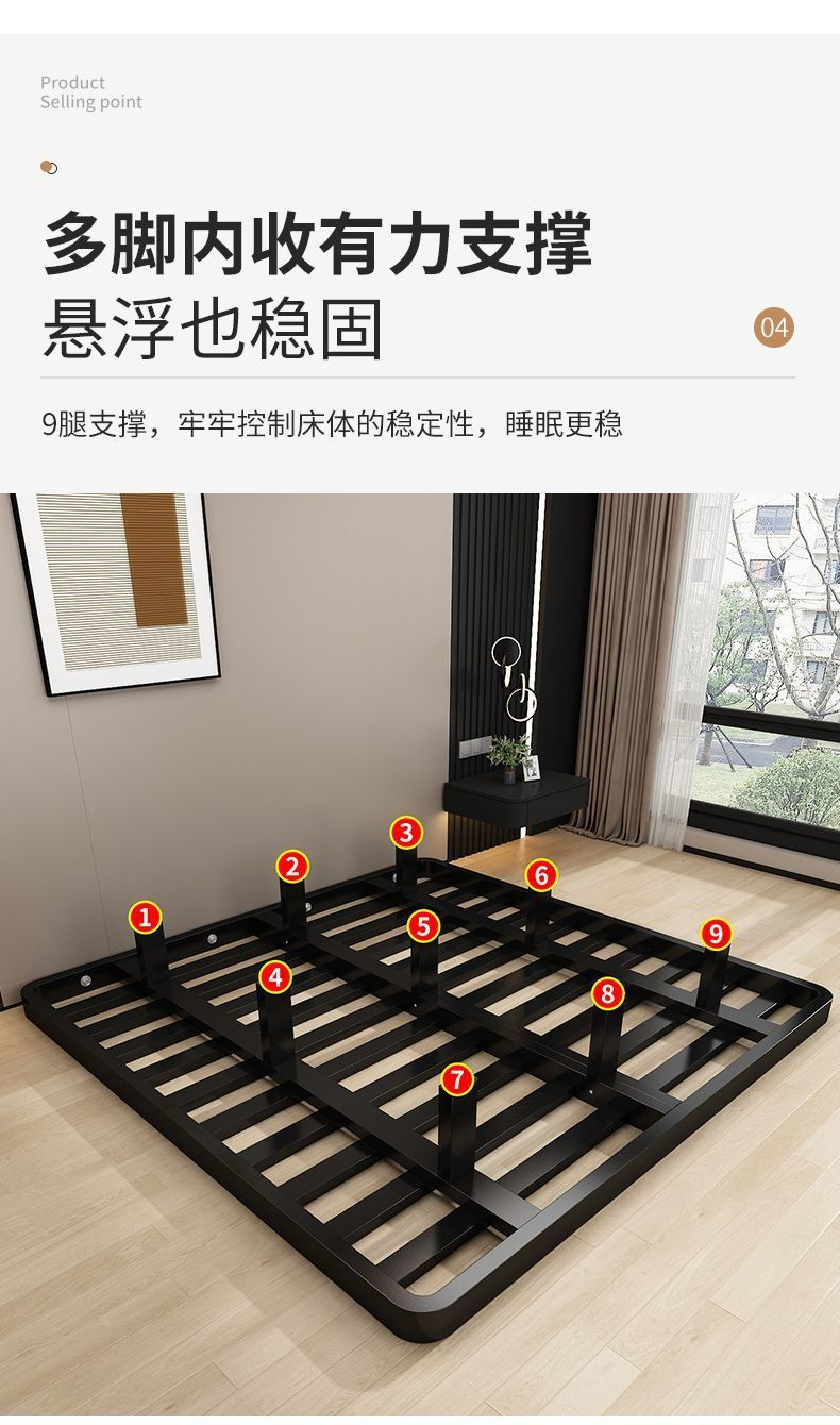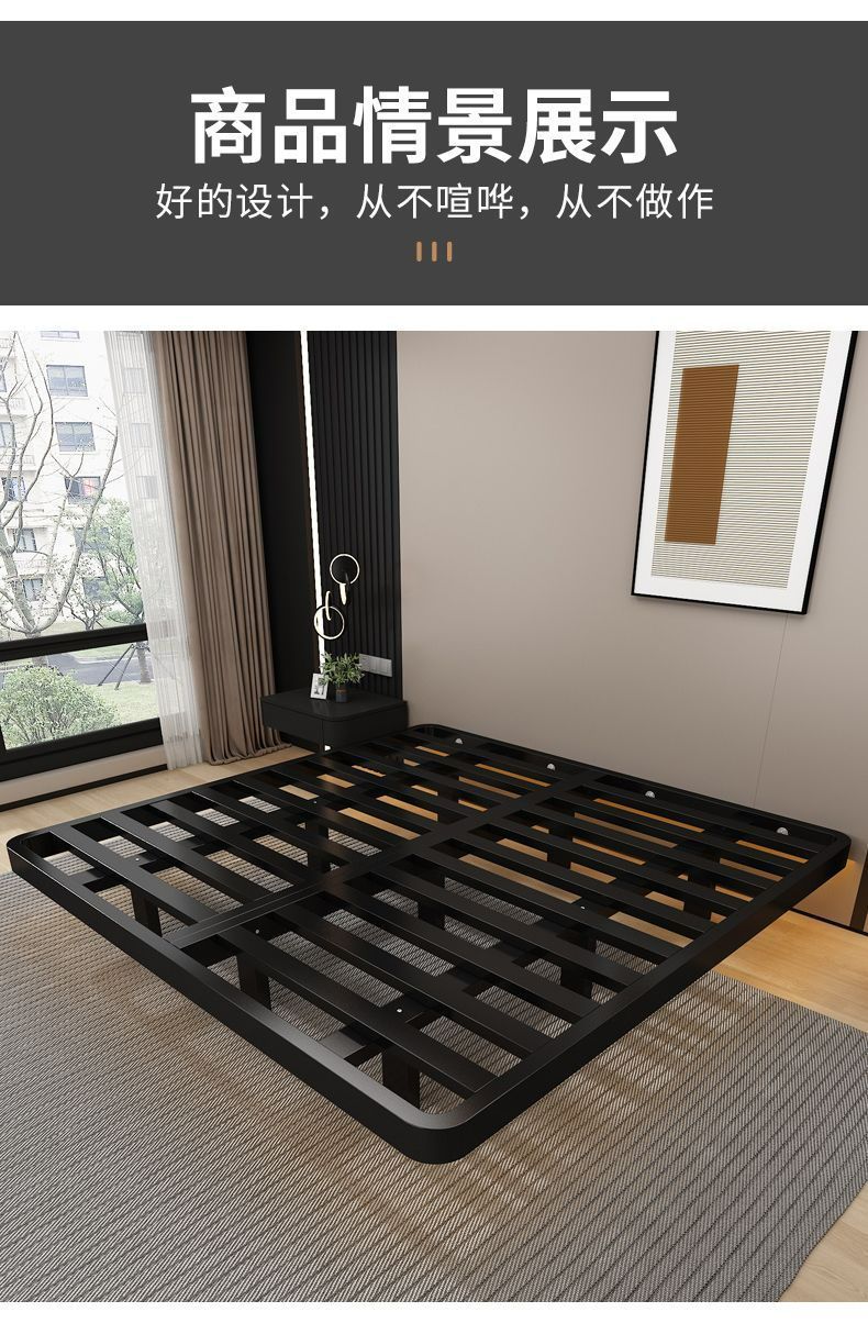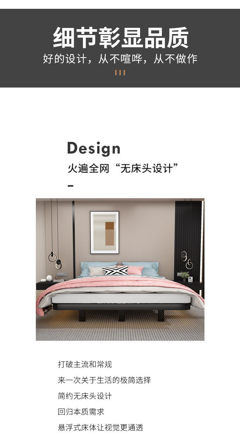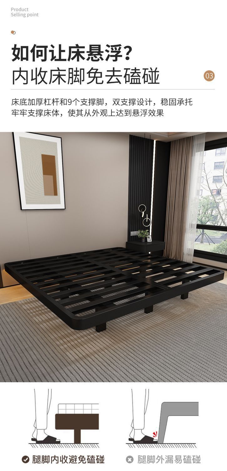 공중부양 침대 프레임, 전체 철제, 간단한 마스터 침실, 침대 옆이 없는 철제 침대 프레임, 더블 침대, 성인 아파트 임대 주택 철제 프레임 침대스토어 가기
